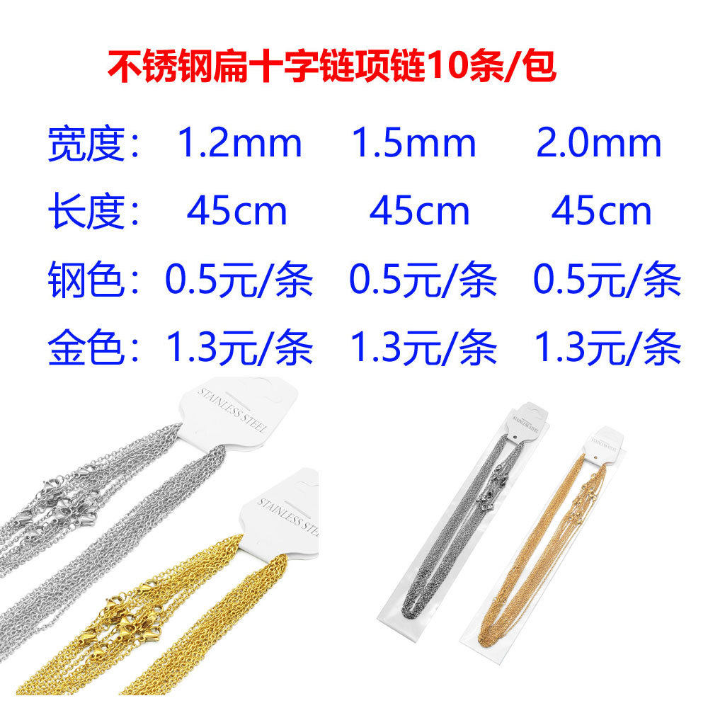 | Color | Flat cross silver 10 1.5 mm-45cm,Flat cross silver 10 2.0 mm-45cm,Flat cross gold 10 1.2 mm-45cm,Flat cross gold 10 1.5 mm-45cm,Flat cross gold 10 2.0 mm-45cm,Flat cross silver 10 1.5 mm-40 5cm,Flat cross gold 10 1.2 mm-40 5cm,Flat cross gold 10 1.5 mm-40 5cm,Flat cross silver 10 1.5 mm-50 5cm,Flat cross silver 10 2.0 mm-50 5cm,Flat cross gold 10 1.5 mm-50 5cm,Flat cross gold 10 2.0 mm-50 5cm |