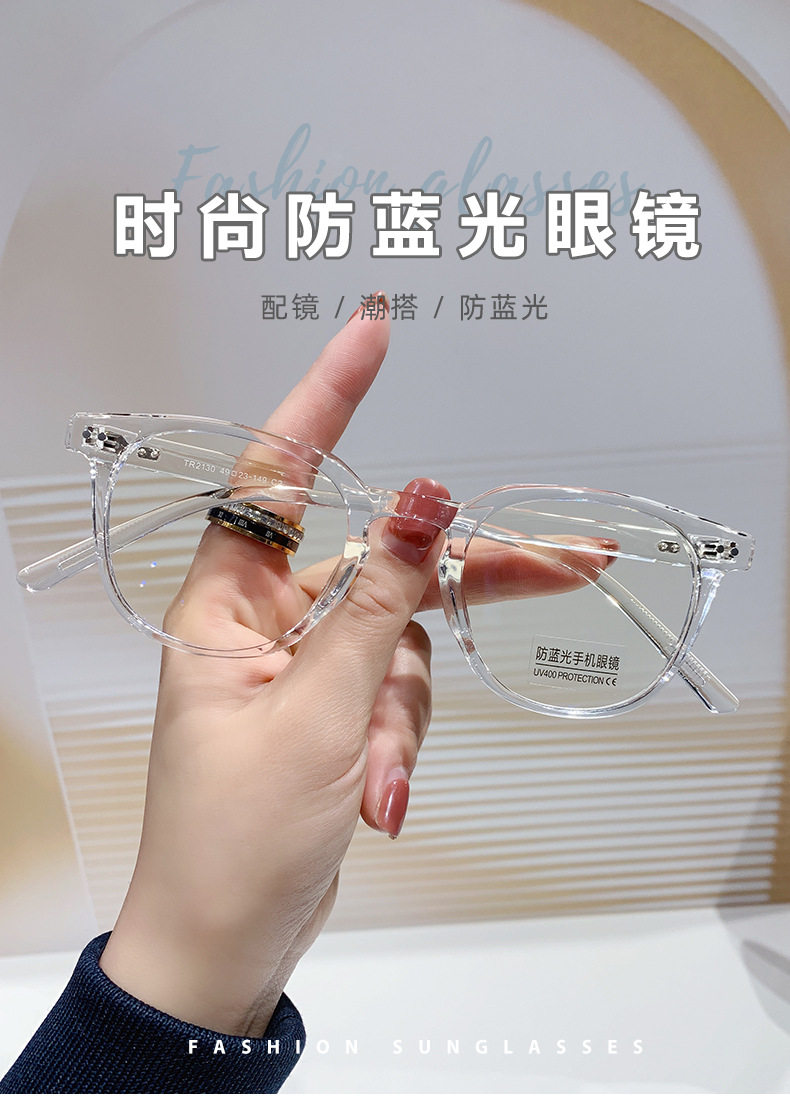 New Retro TR90 Small Frame Glasses Frame Red Riding Book Same Style Women's Trendy Plain-made Fashion Anti-blue Glasses 2130