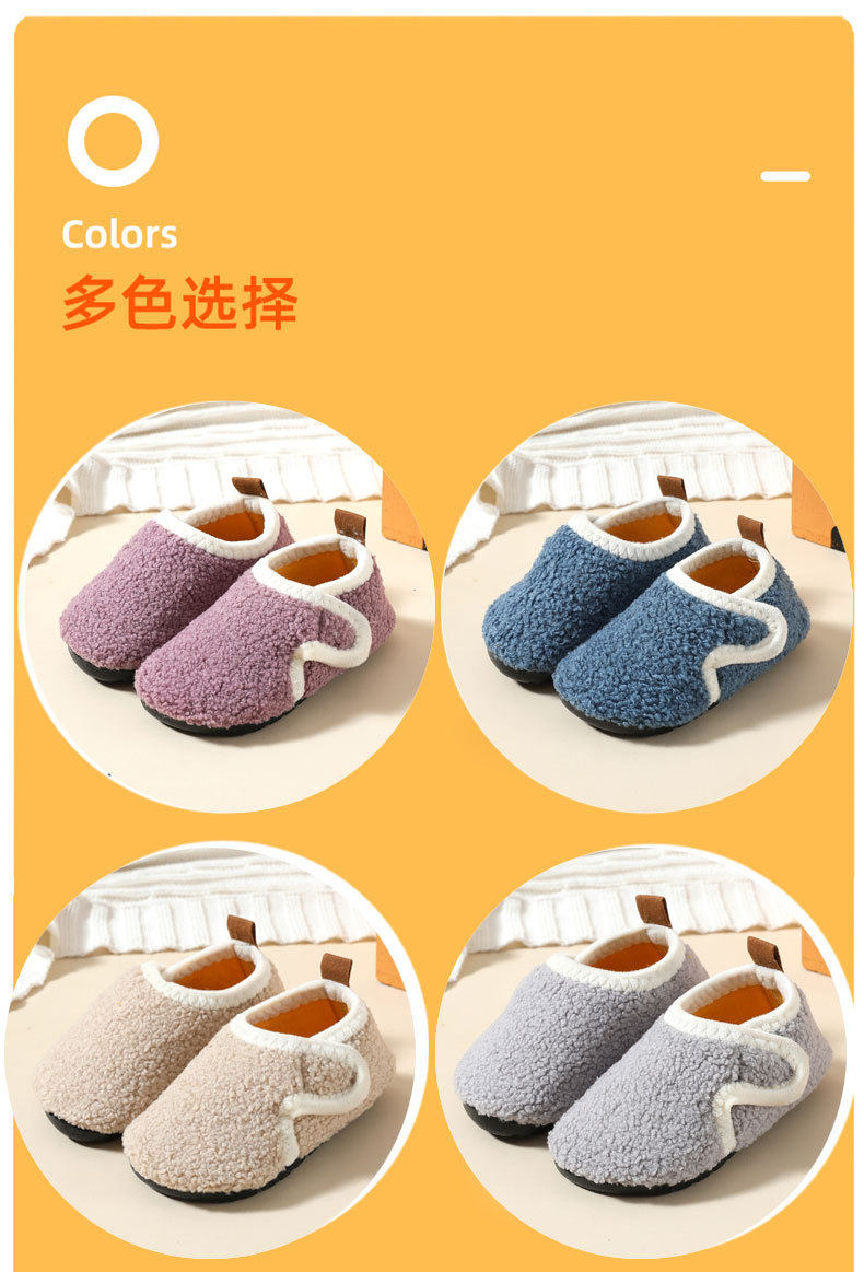 Autumn and Winter Kidsren's Cotton Slippers Fleece-Lined Non-Slip Soft Bottom Male and Female Baby Toddler Cotton Shoes Indoor Early Education Socks Soft