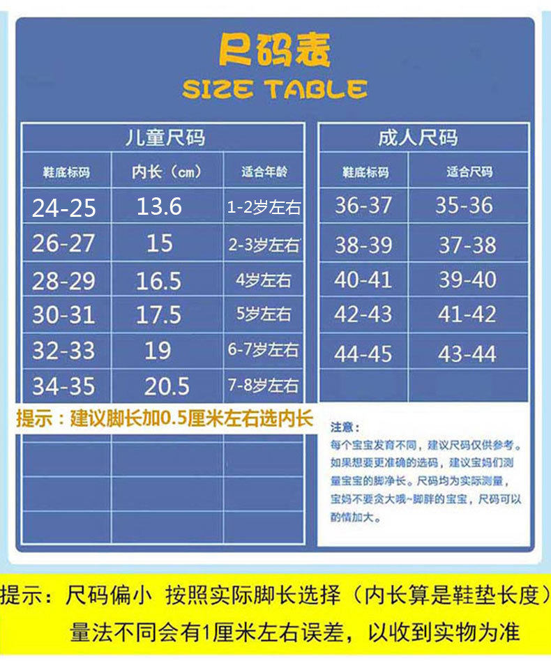 | Size | 24-25 yards inside length 13.6cm,26-27 yards within the length of 15cm,28-29 yards within the length of 16.5cm,30-31 yards within the length of 17.5cm,32-33 yards inside length 19cm,34-35 yards inner length 20.5cm |