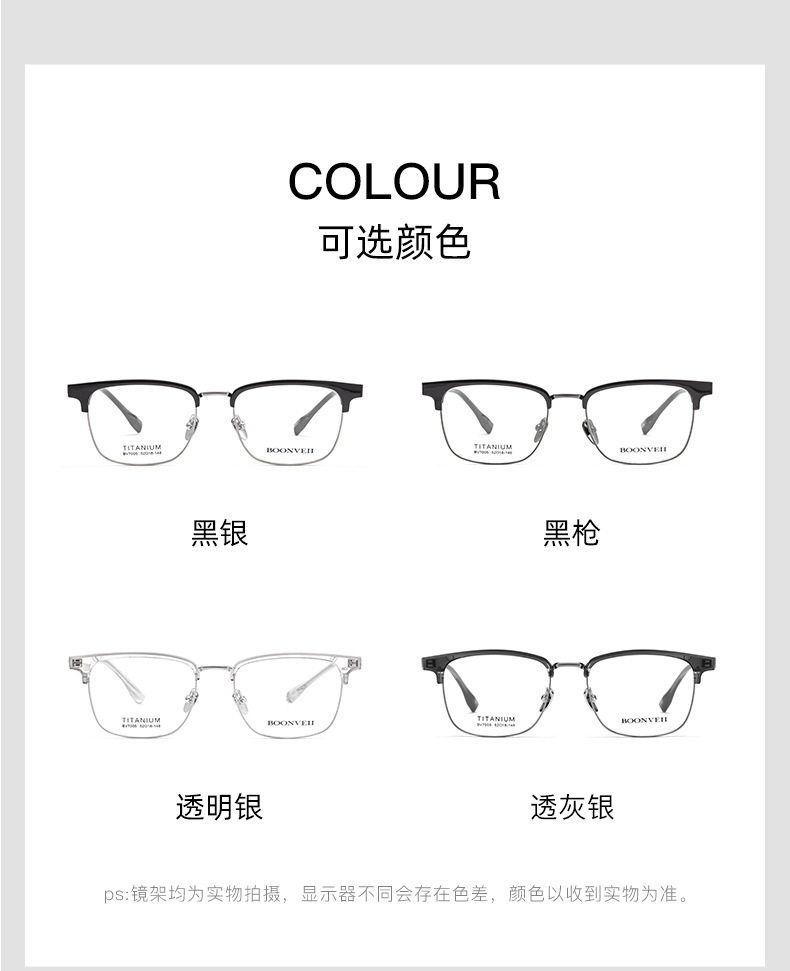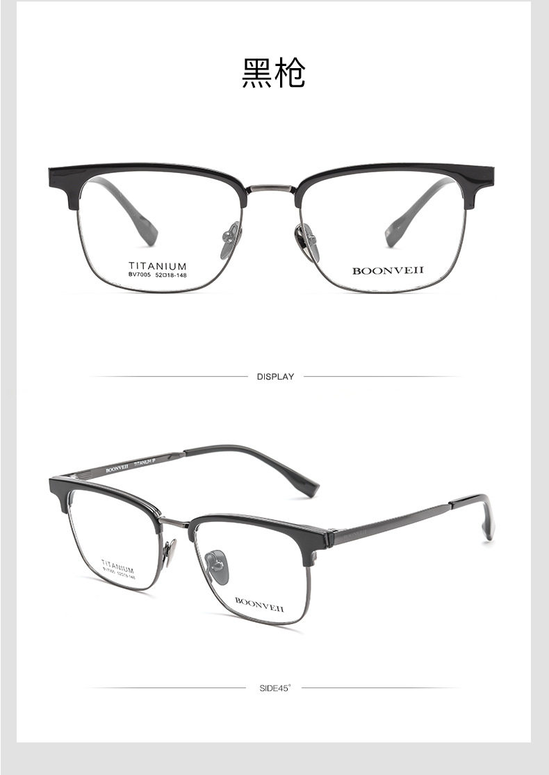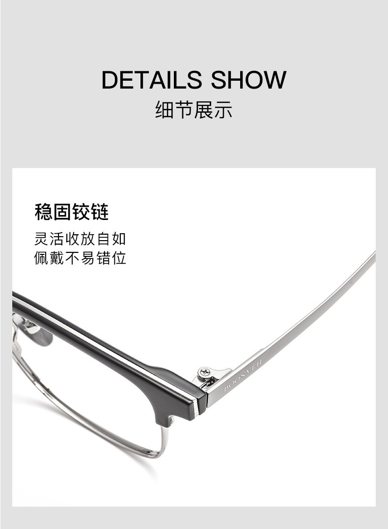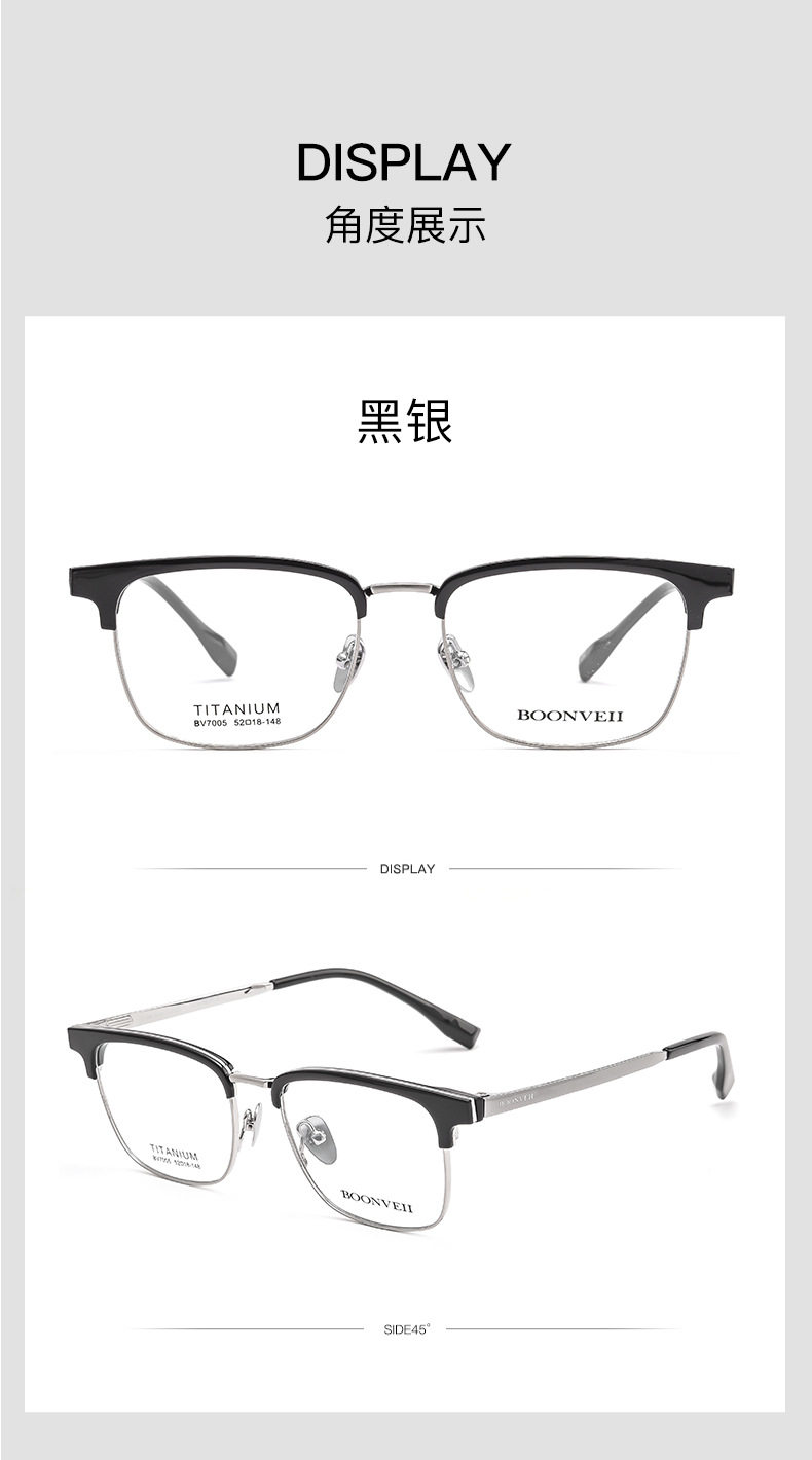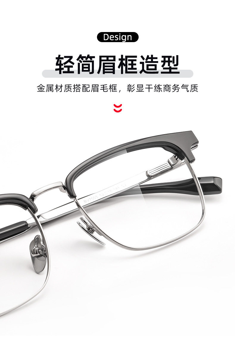 Baishifen's New Bw7005V Pure Titanium Glasses Frame Business Versatile Eyebrow Frame Can Be Equipped with Prescription Large Frame Anti-Blue Light