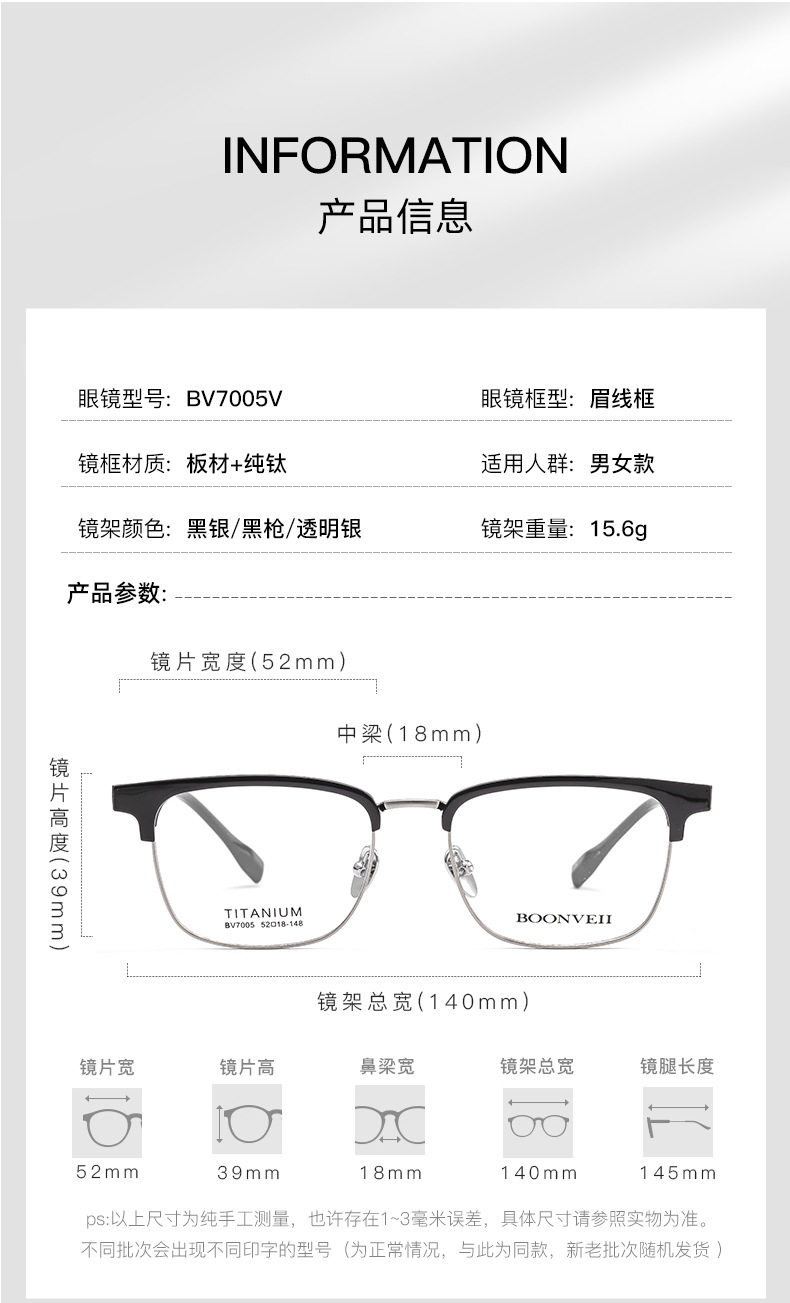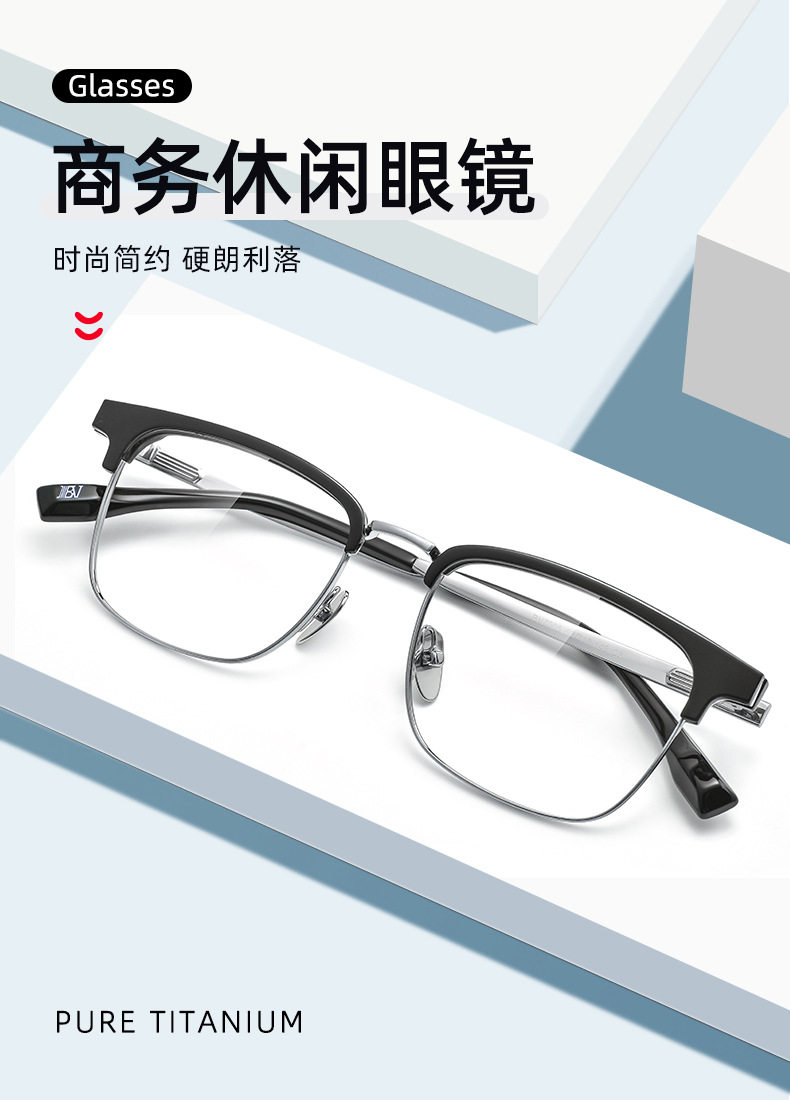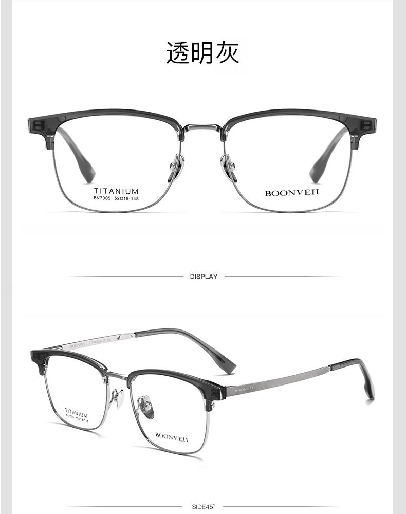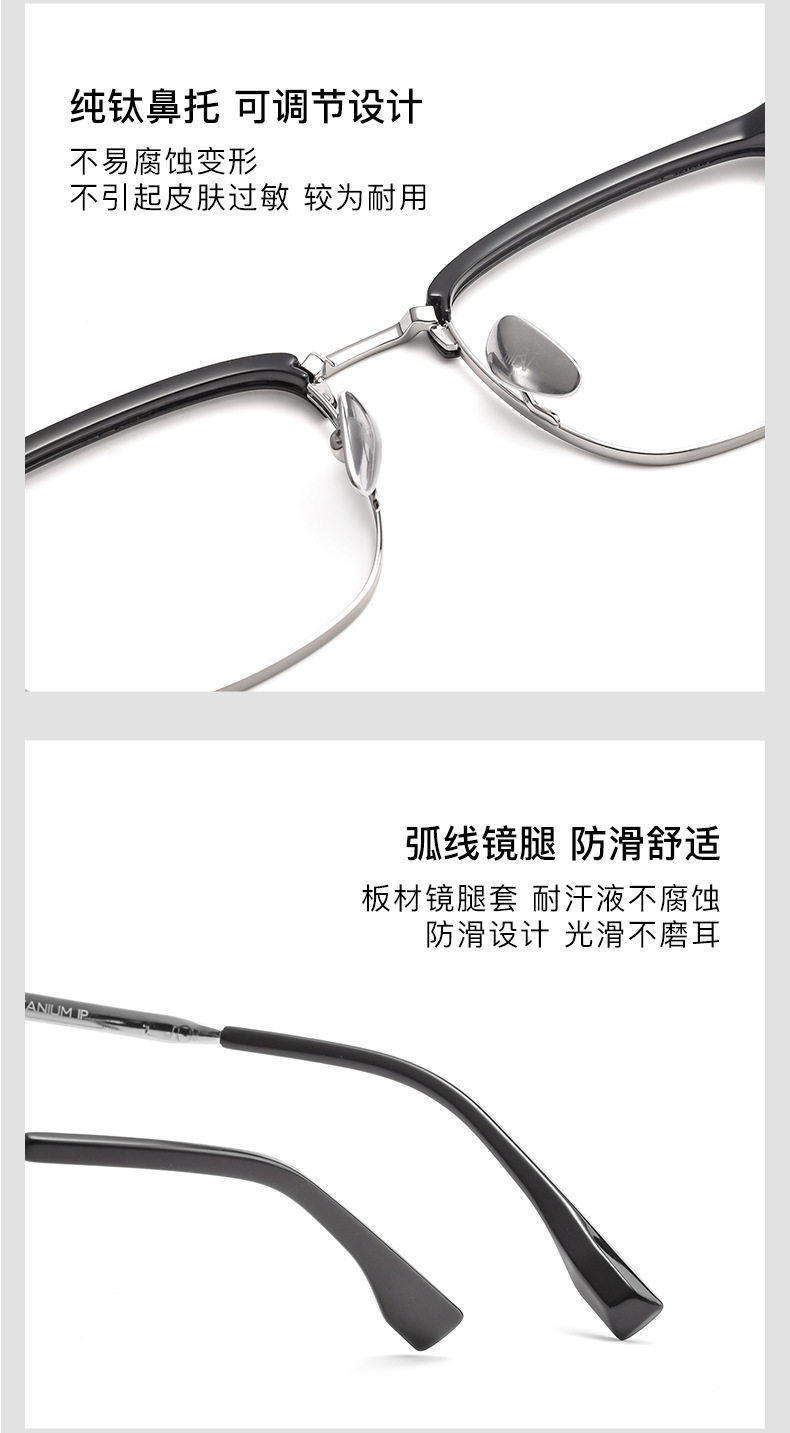 Baishifen's New Bw7005V Pure Titanium Glasses Frame Business Versatile Eyebrow Frame Can Be Equipped with Prescription Large Frame Anti-Blue Light