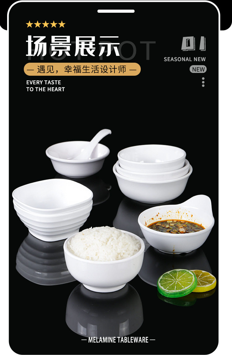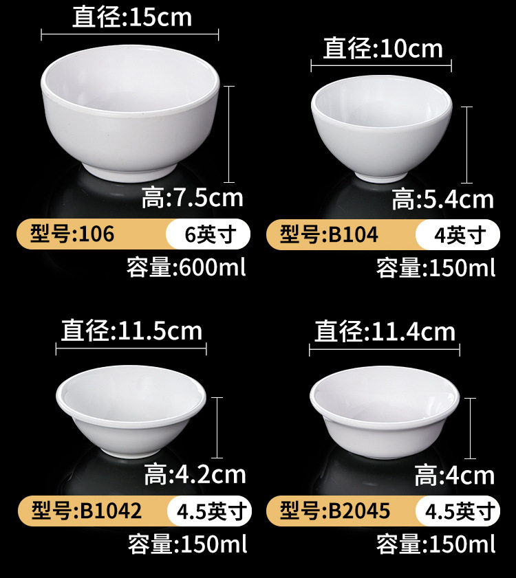 White anti-fall melamine small Bowl restaurant small soup bowl plastic imitation ceramic resin rice hot pot restaurant seasoning Bowl