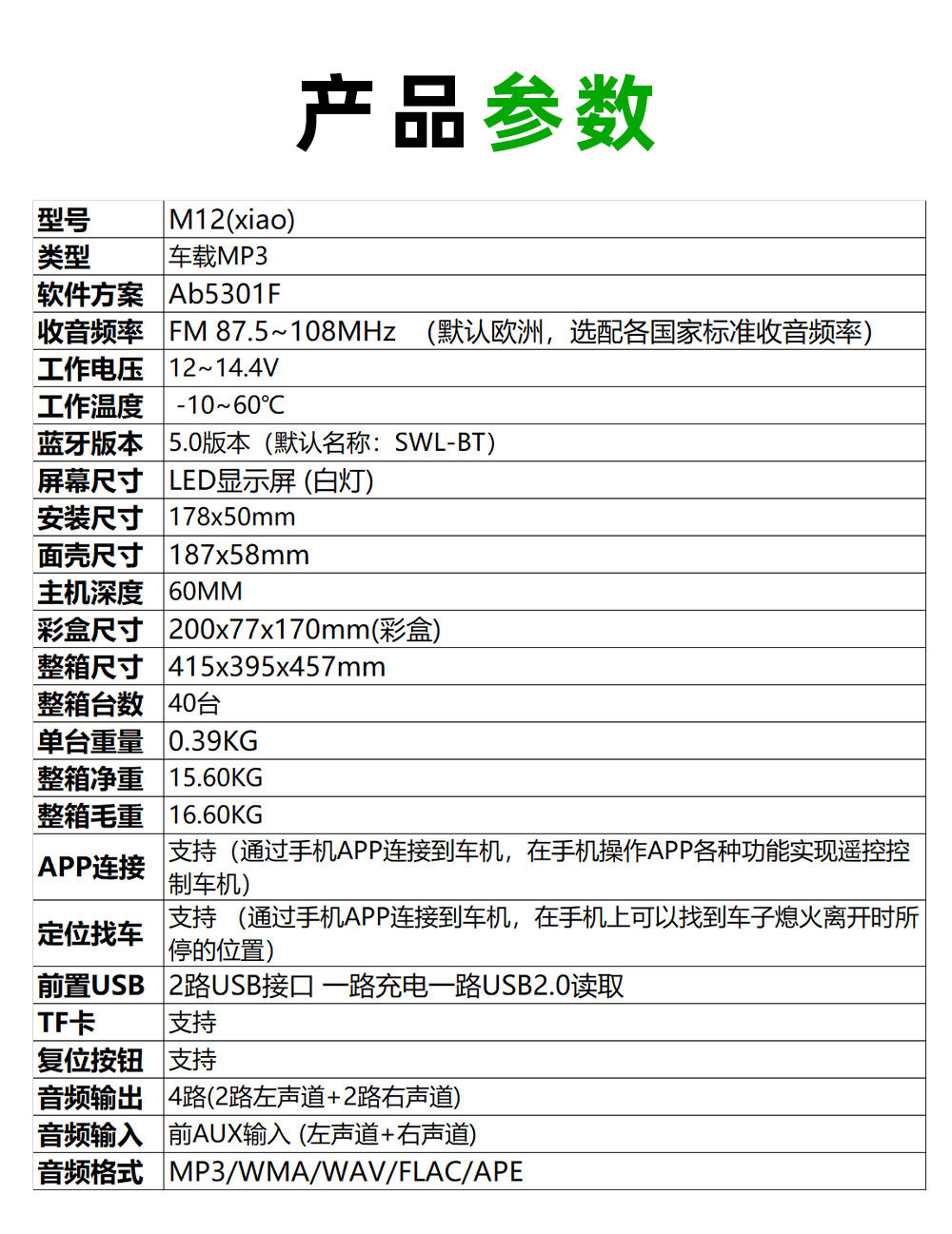 | Source of sound source | Car integrated mp3 player |