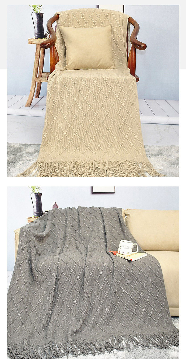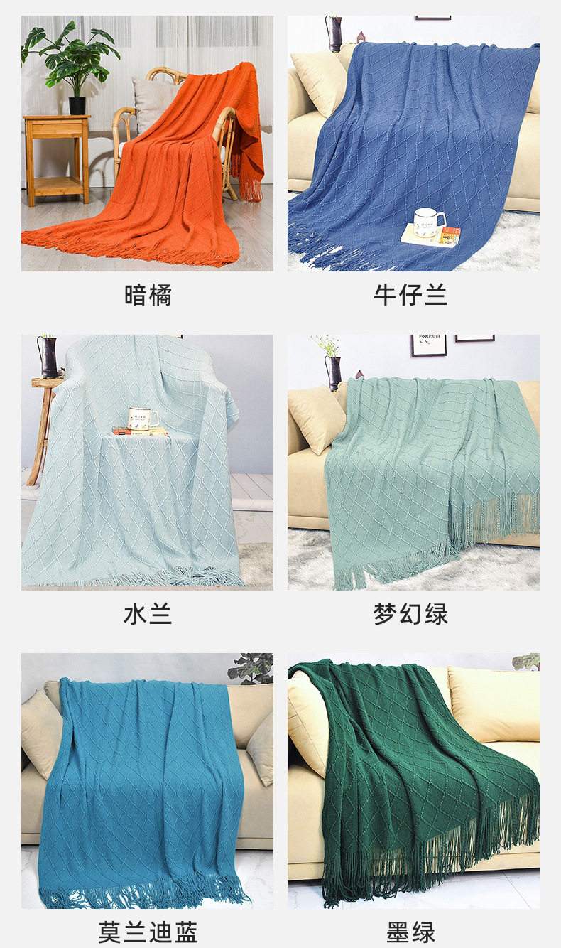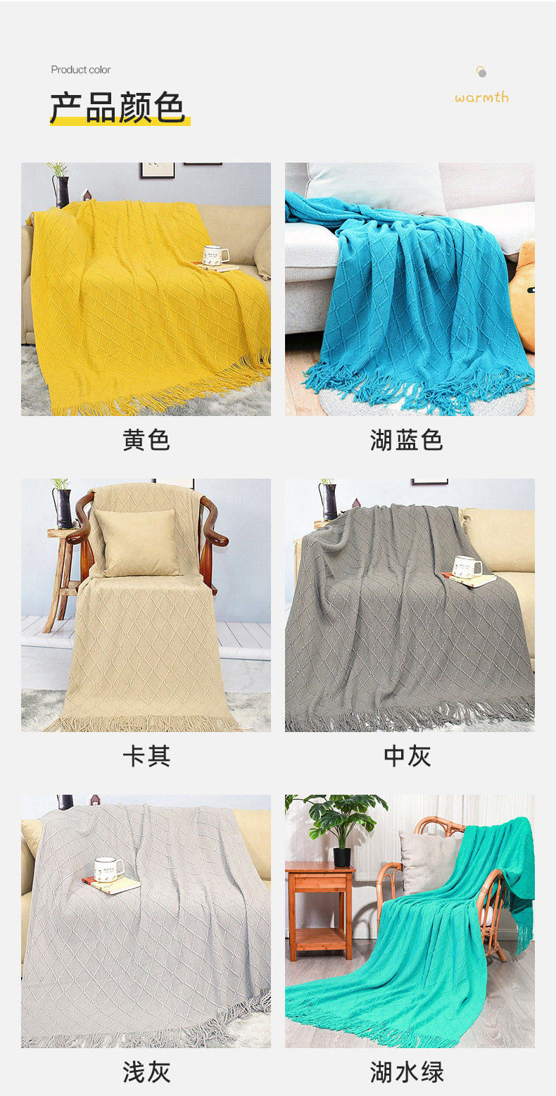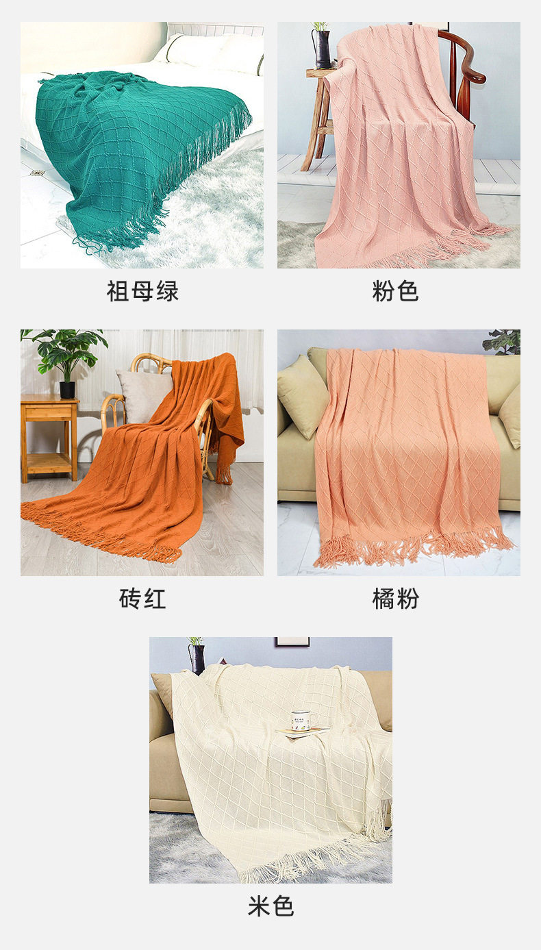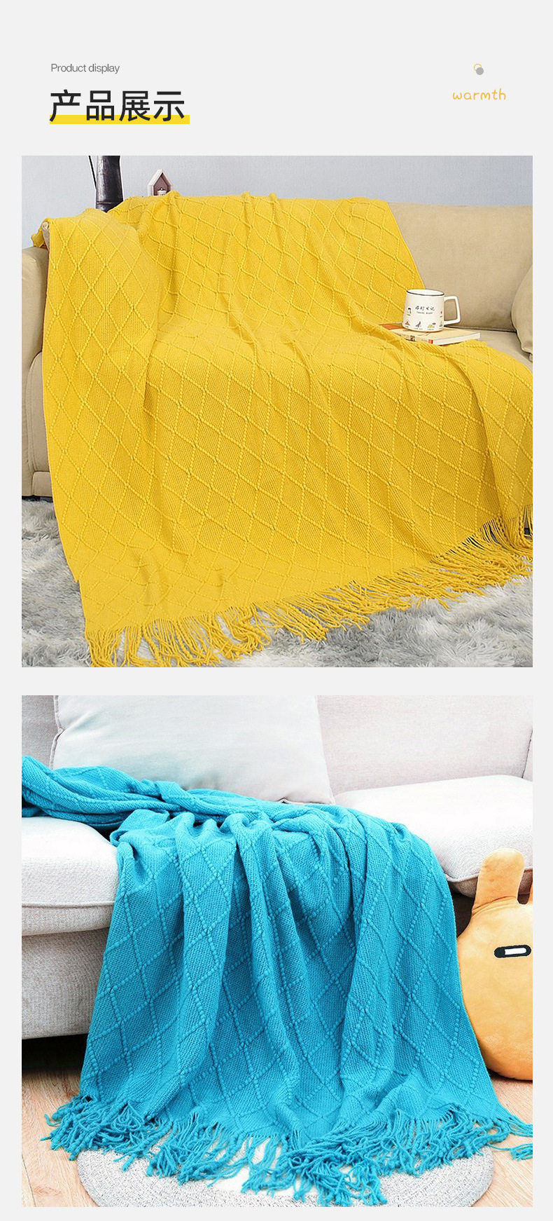 Knitted Thread Blanket New Scandinavian Autumn and Winter Tassel Blanket Office Bed Thickeneded Blanket High-End Sofa Blanket