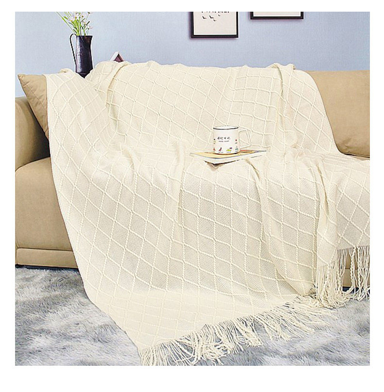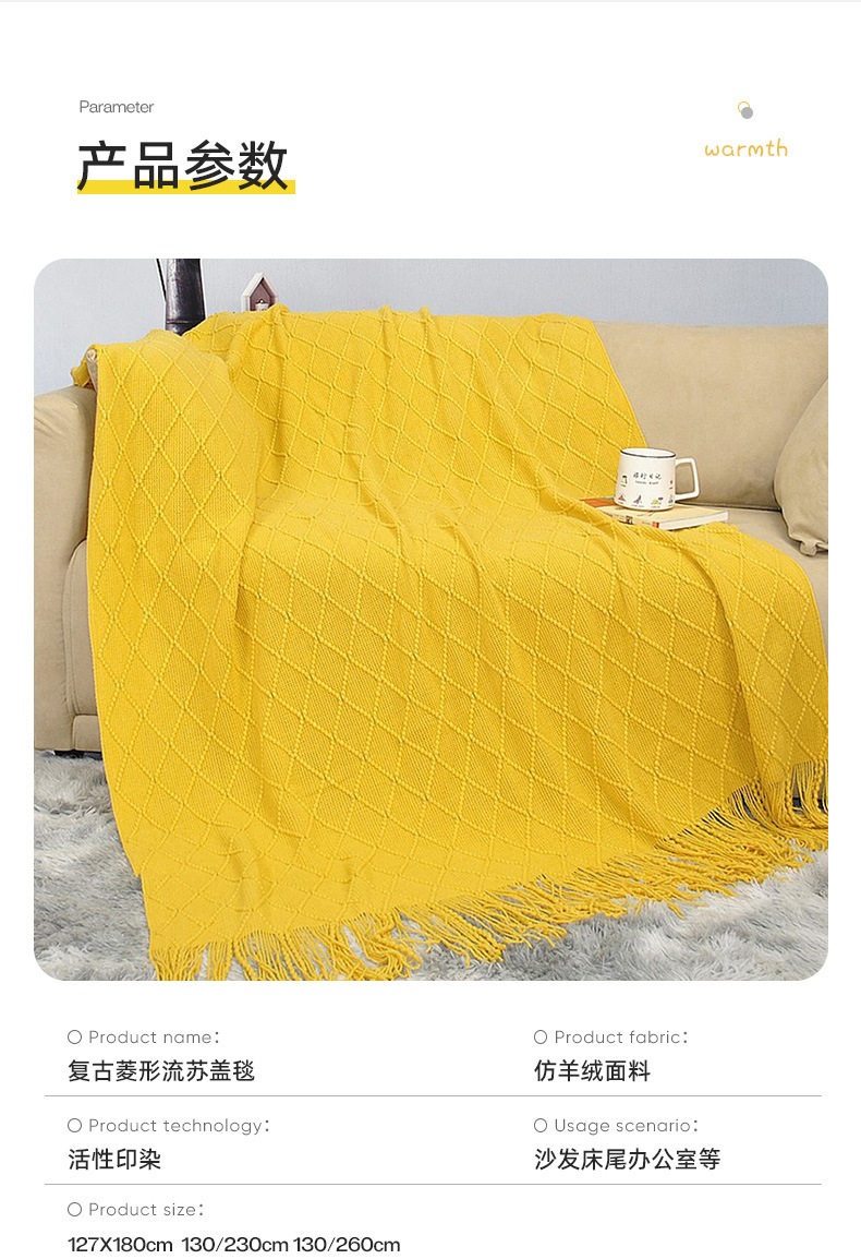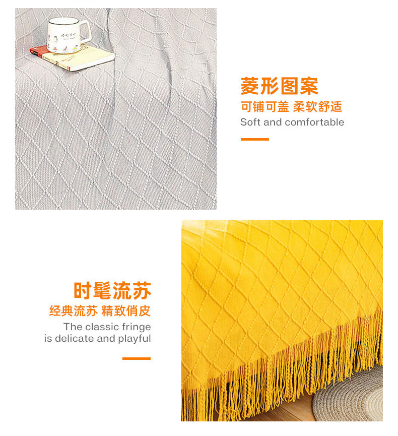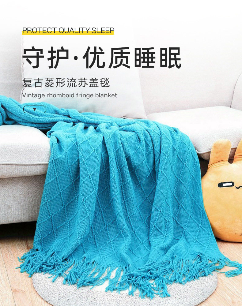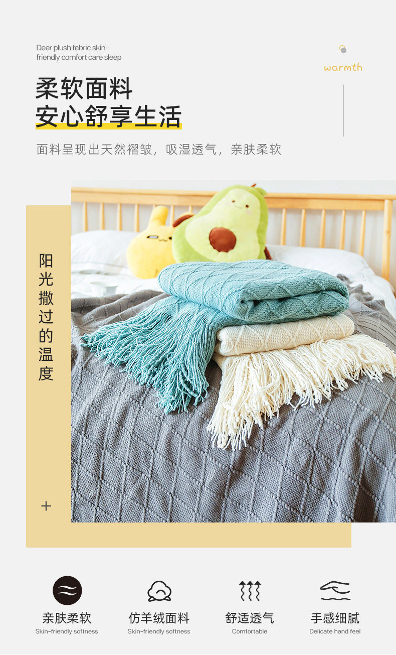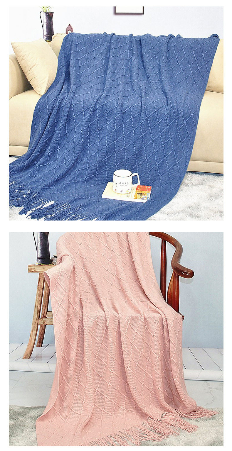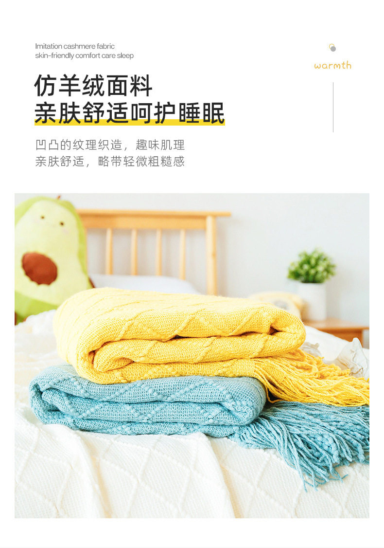 Knitted Thread Blanket New Scandinavian Autumn and Winter Tassel Blanket Office Bed Thickeneded Blanket High-End Sofa Blanket