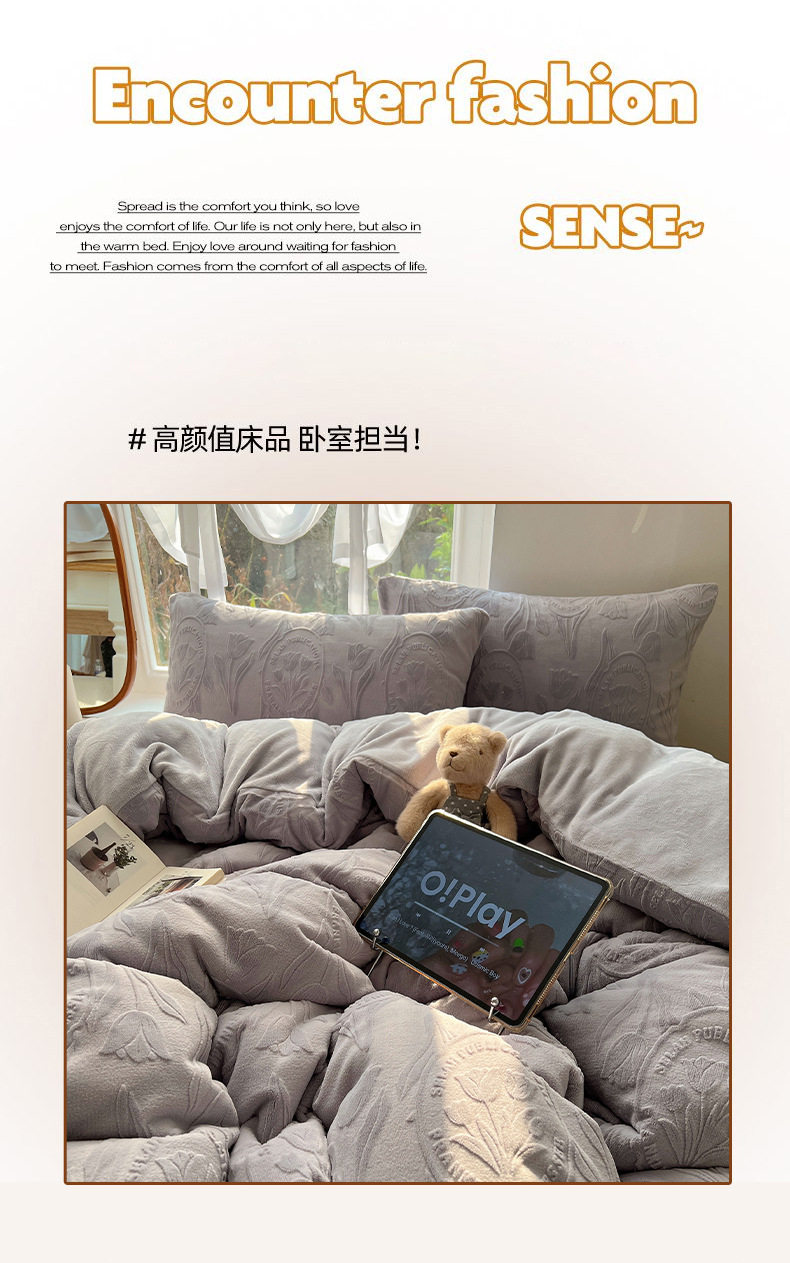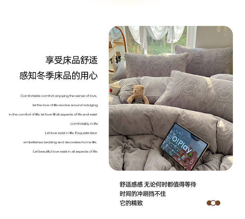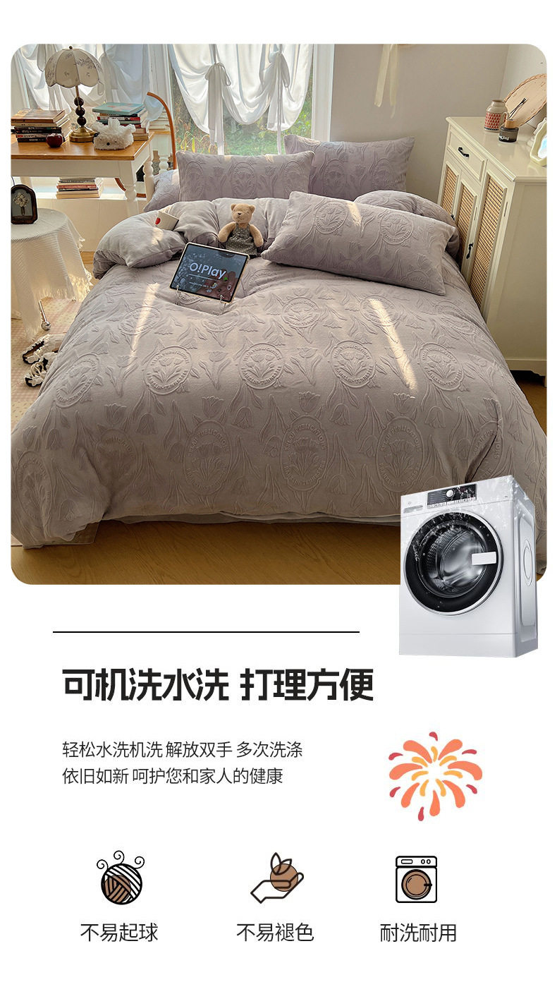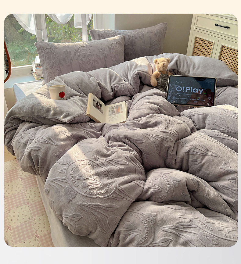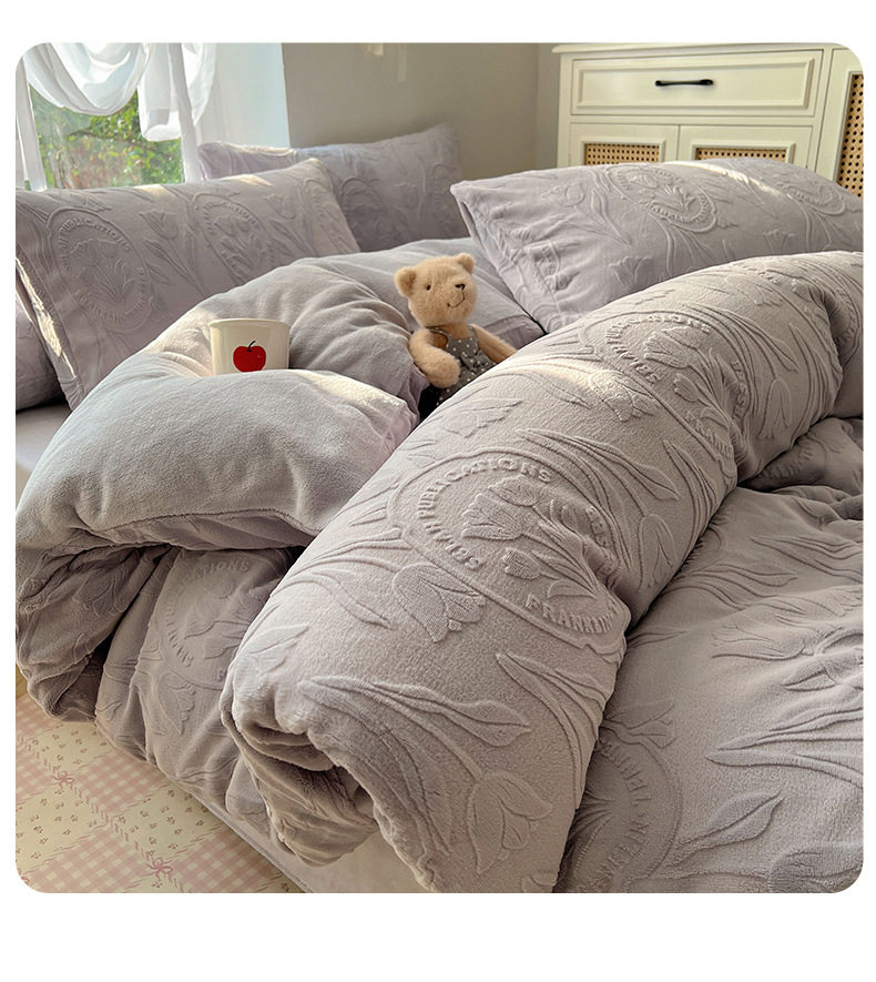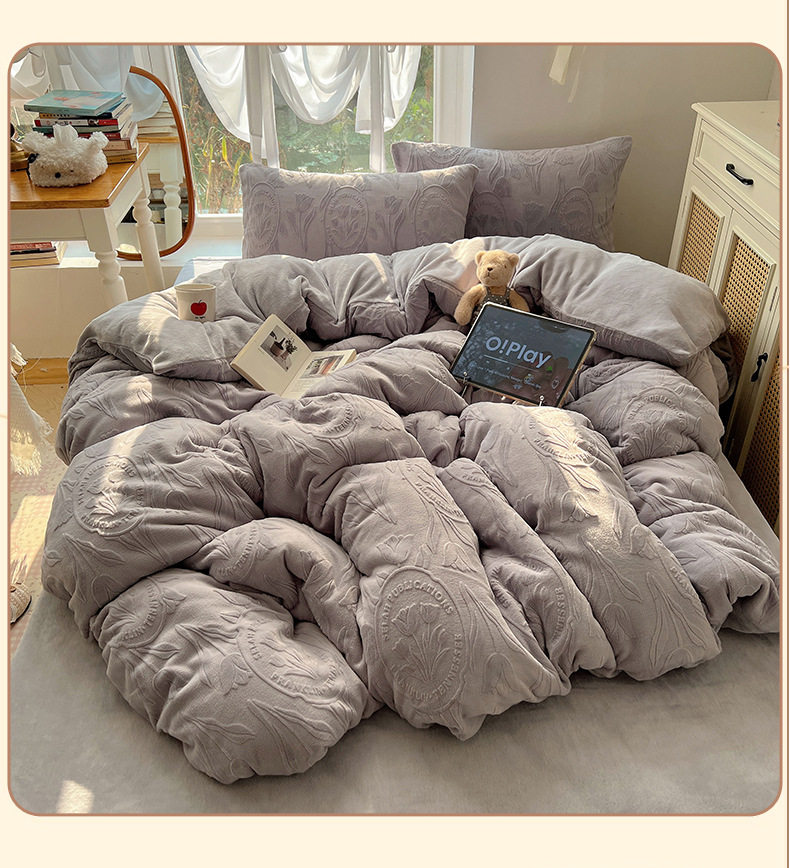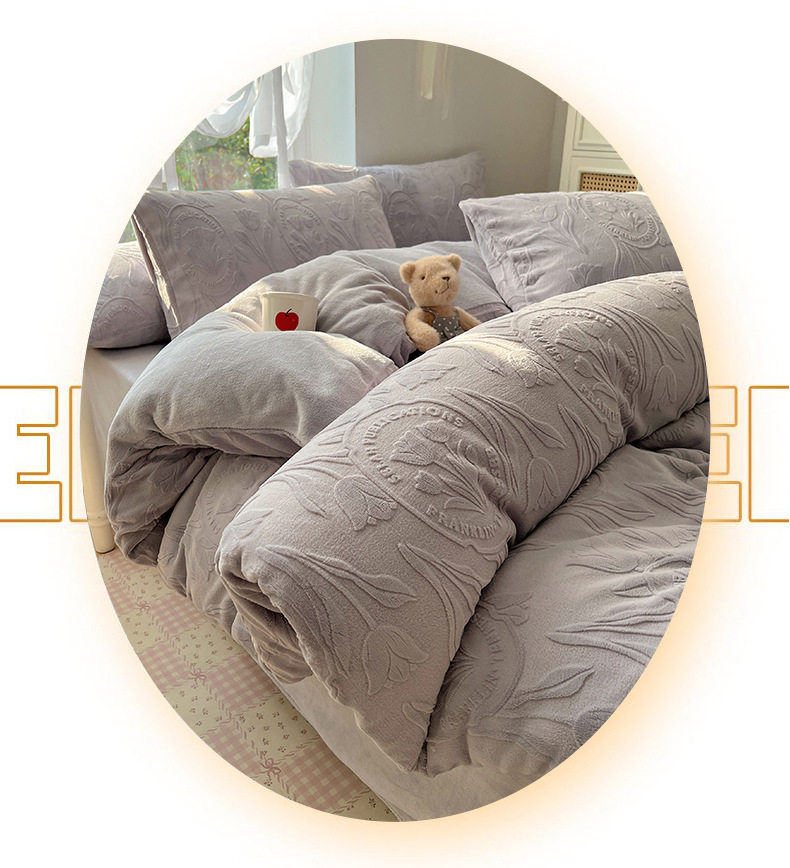 Milk Velvet Four-Piece Set, Wabi-Sabi Ins Style, Solid Color, Chanel-Style Four-Piece Set, Girls' Dormitory Home Textiles, Warm Winter Style, Wholesale