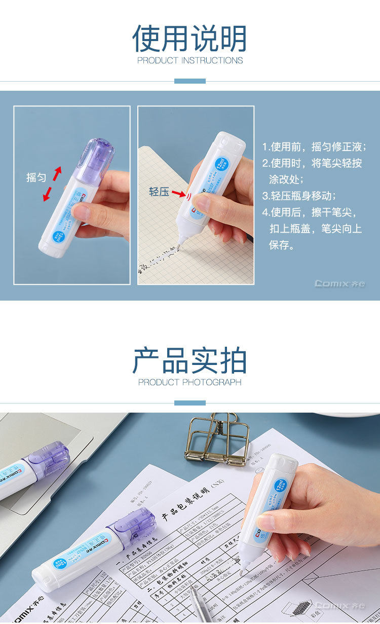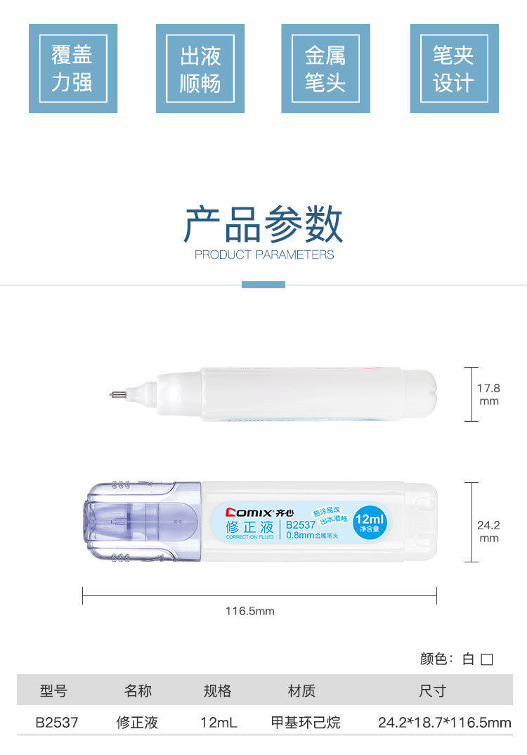 Qixin Student Correction Fluid Quick-Drying Traceless Correction Fluid Environmentally Friendly Large Capacity