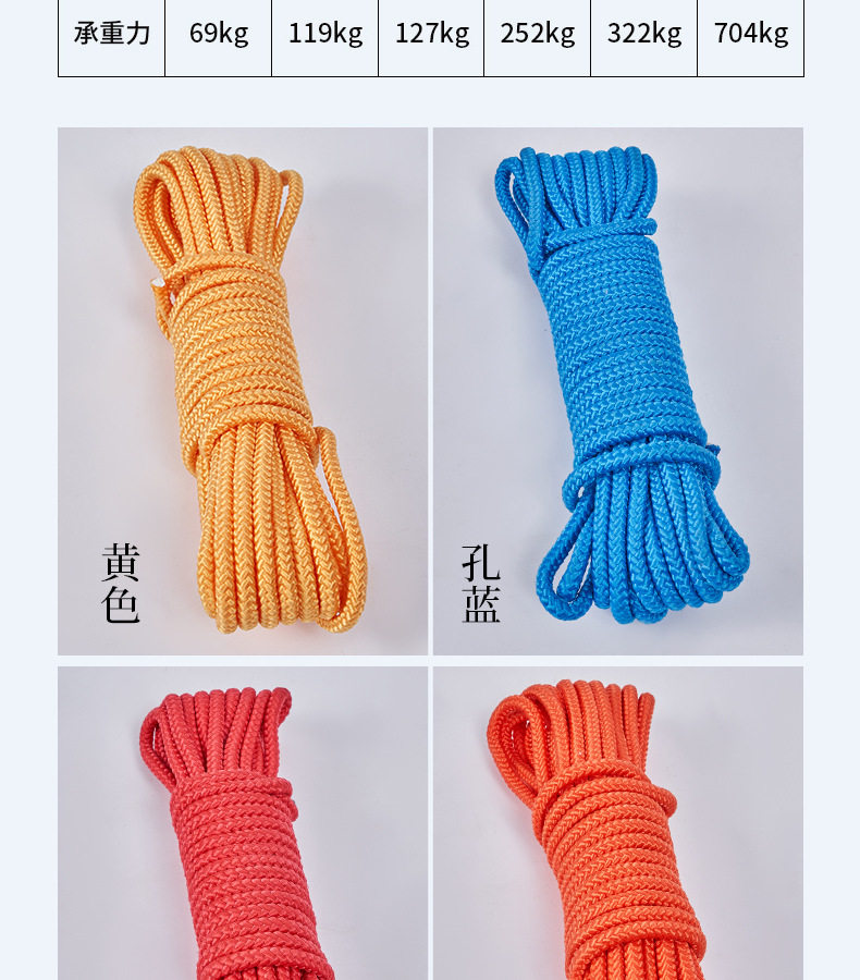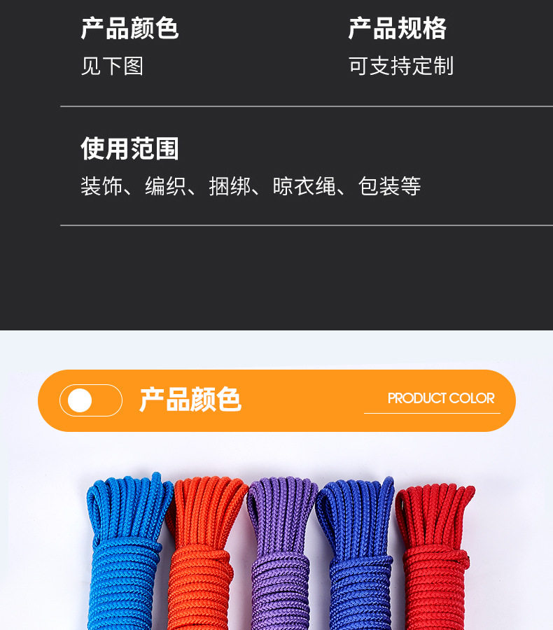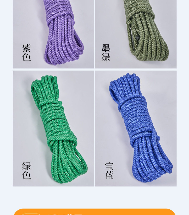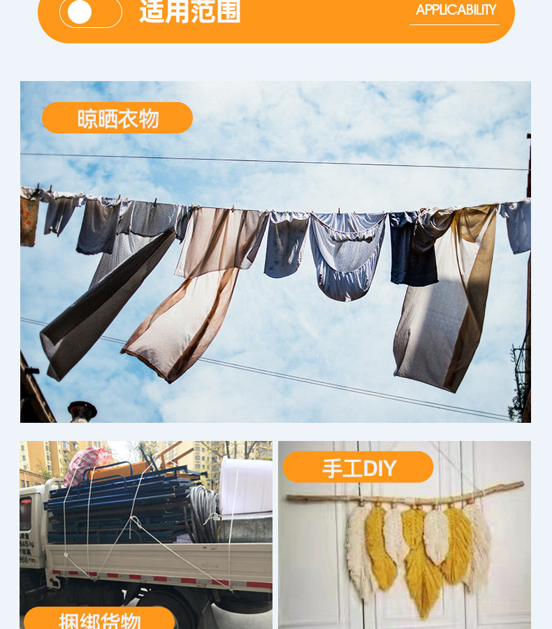 | Scope of Application | Sweater,Outdoor,Home Textile,Clothes Drying,Outdoor Safety rope,Baling,Military fire fighting |