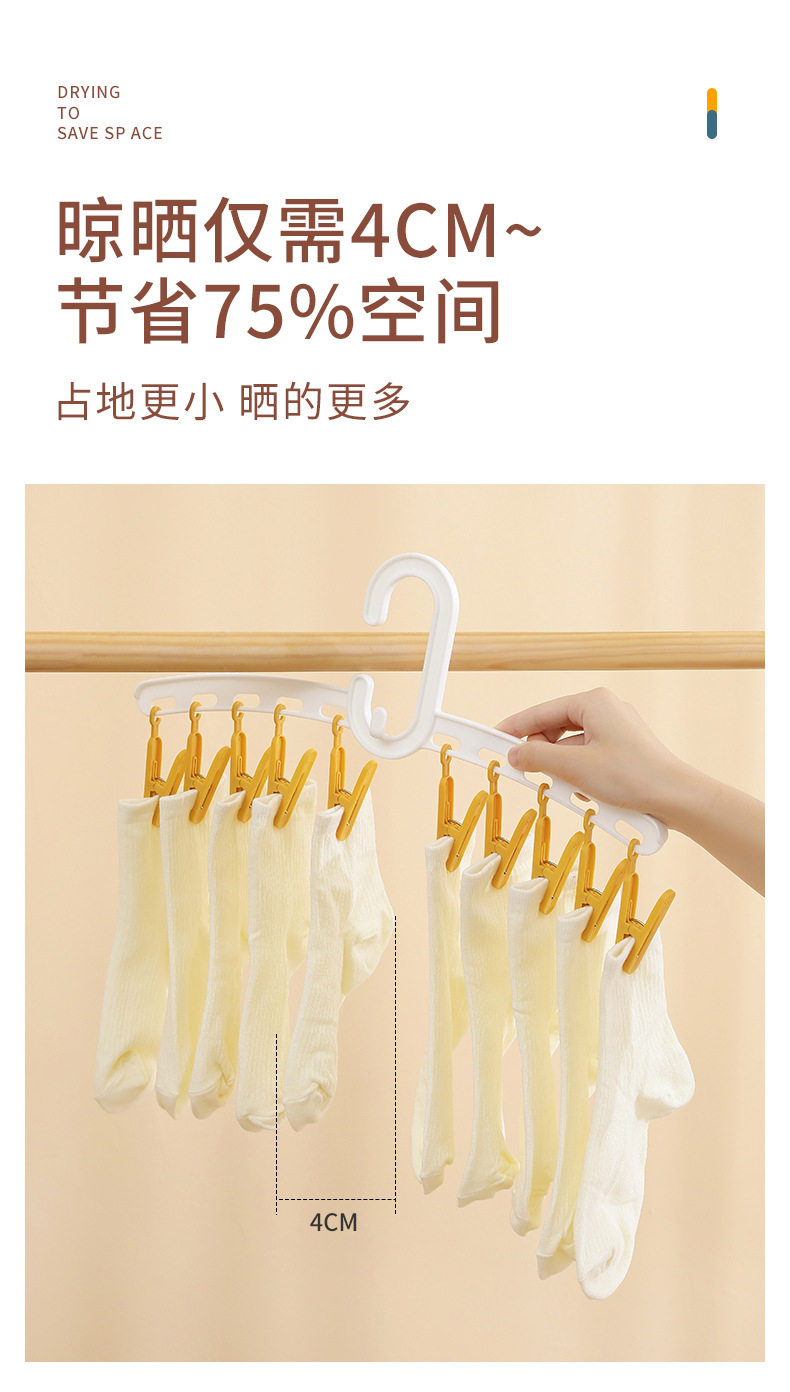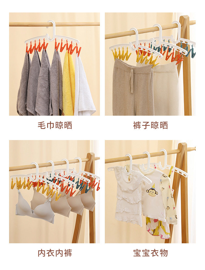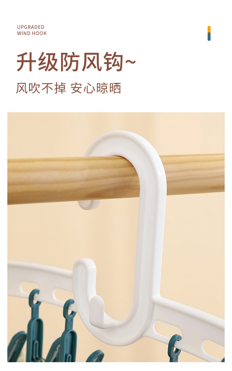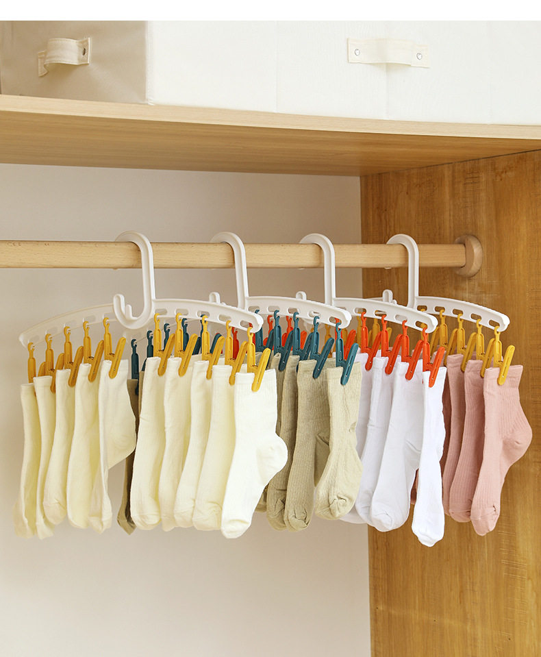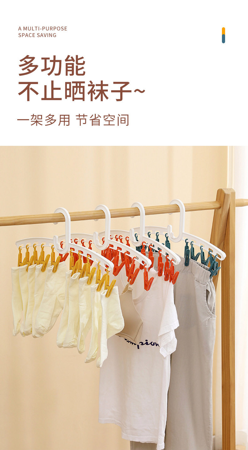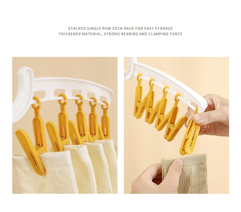 YZ1166 Straight Rod Hanging Multi-head Socks Clip Travel Portable 10-clip Drying Rack Candy Socks Rack Multi-clip Plastic Drying Rack