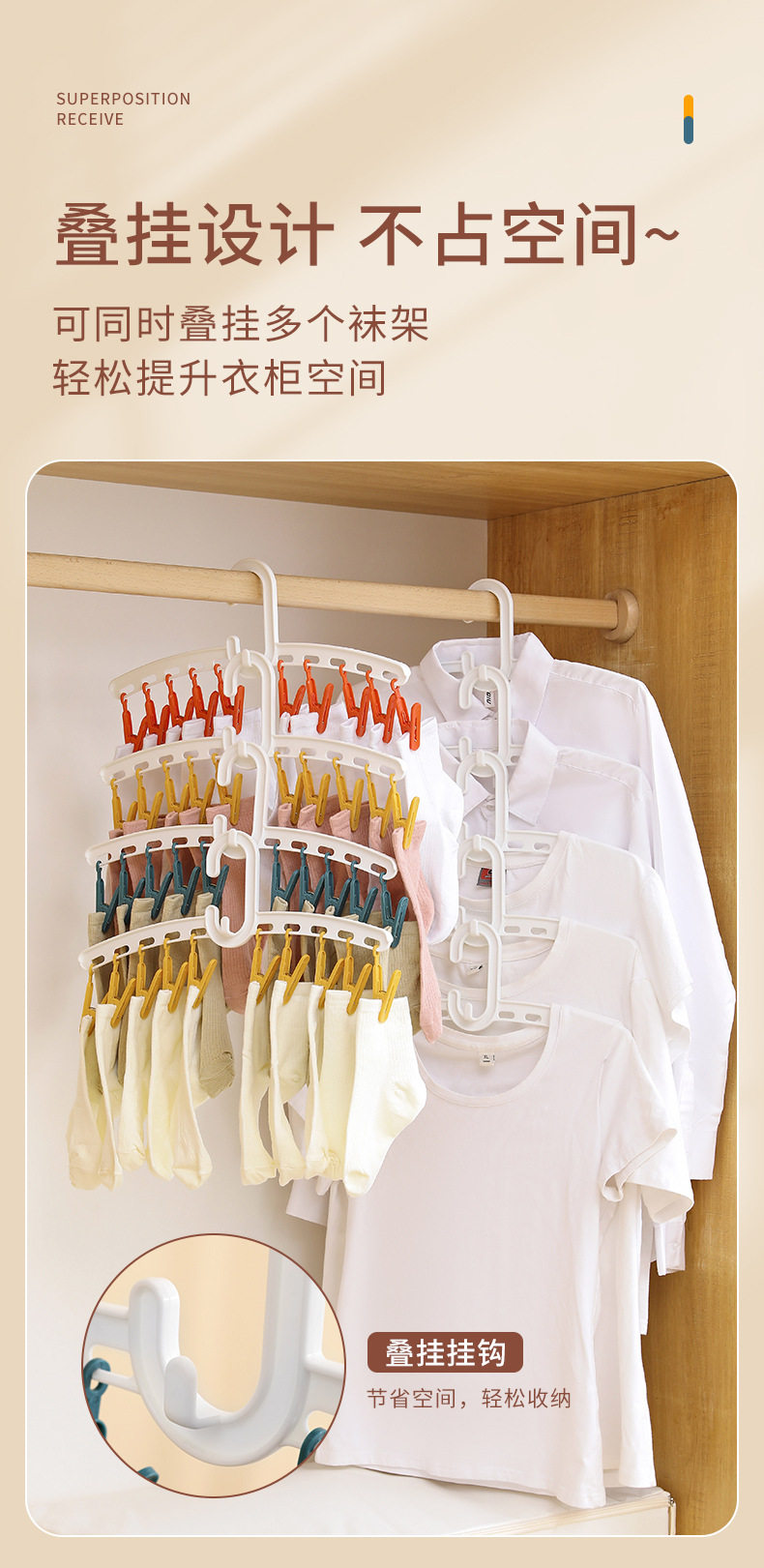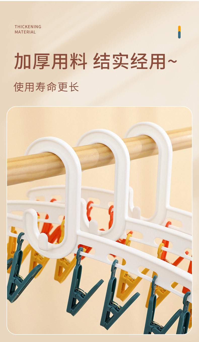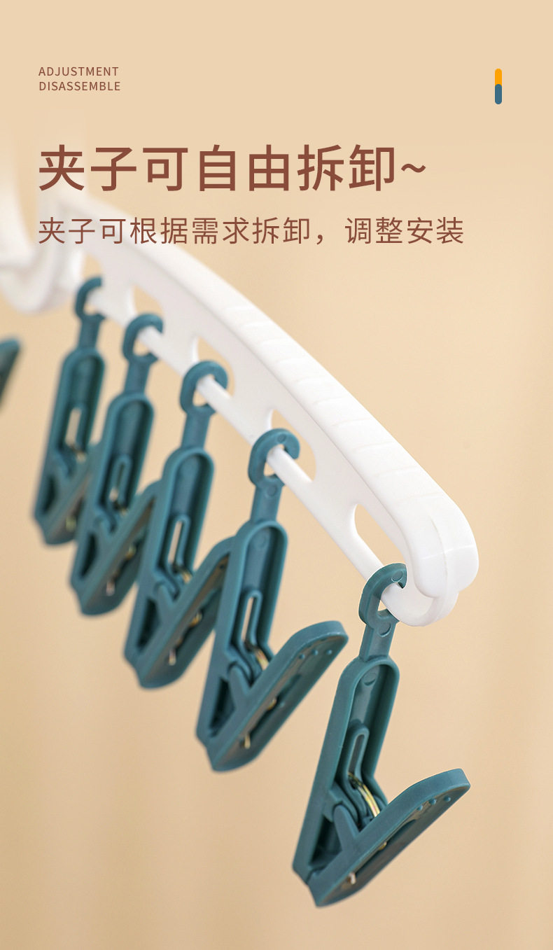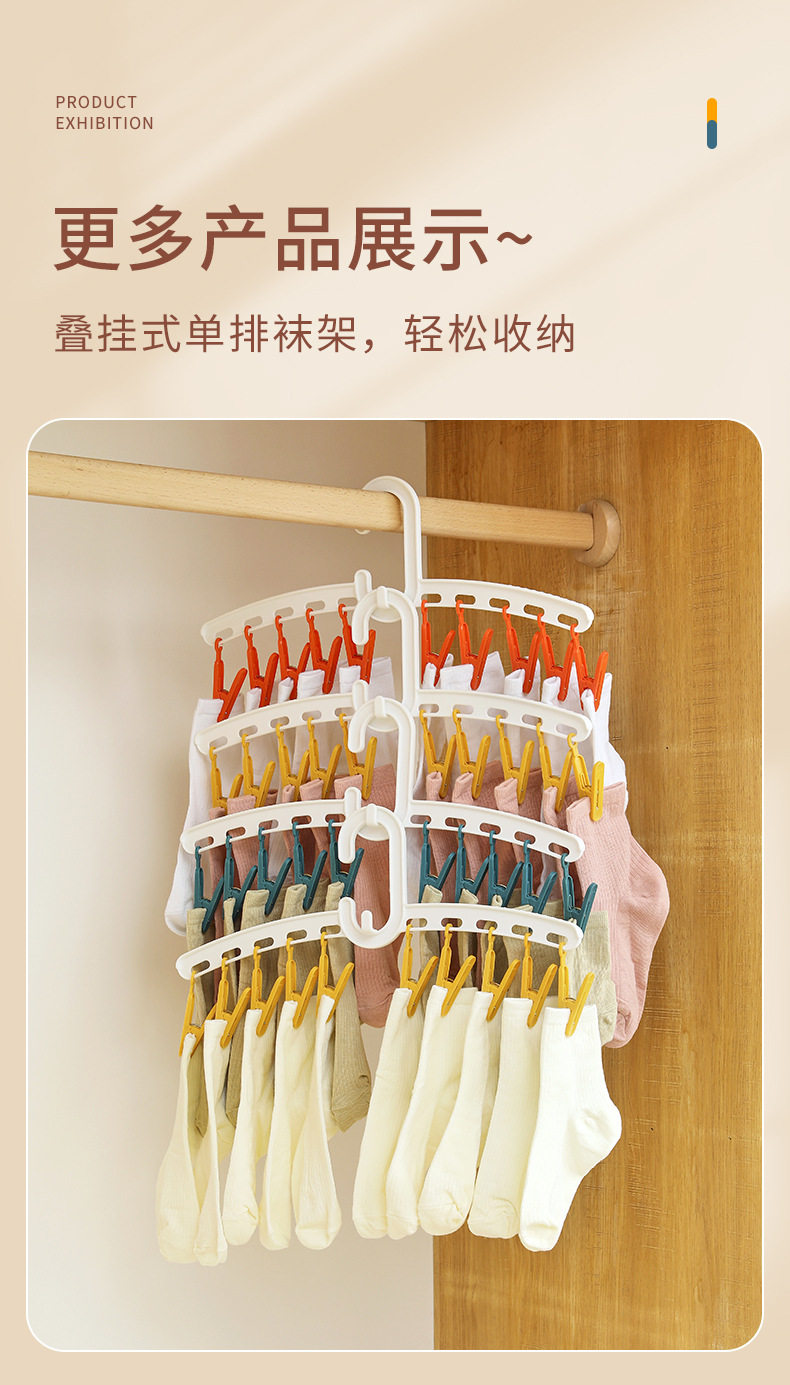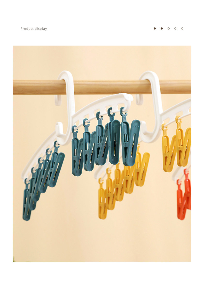 YZ1166 Straight Rod Hanging Multi-head Socks Clip Travel Portable 10-clip Drying Rack Candy Socks Rack Multi-clip Plastic Drying Rack
