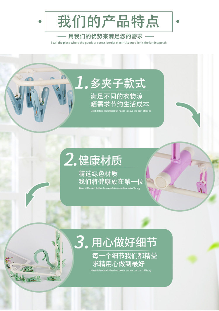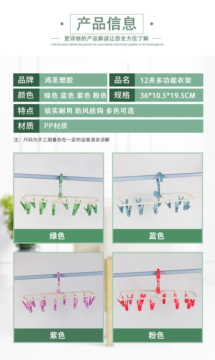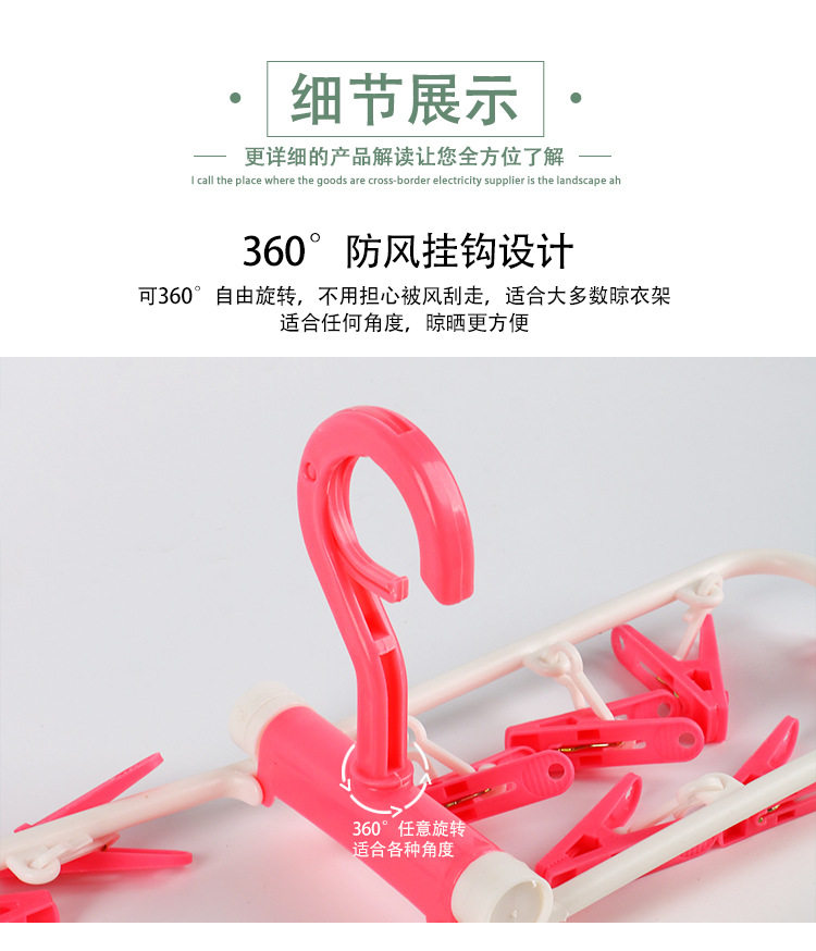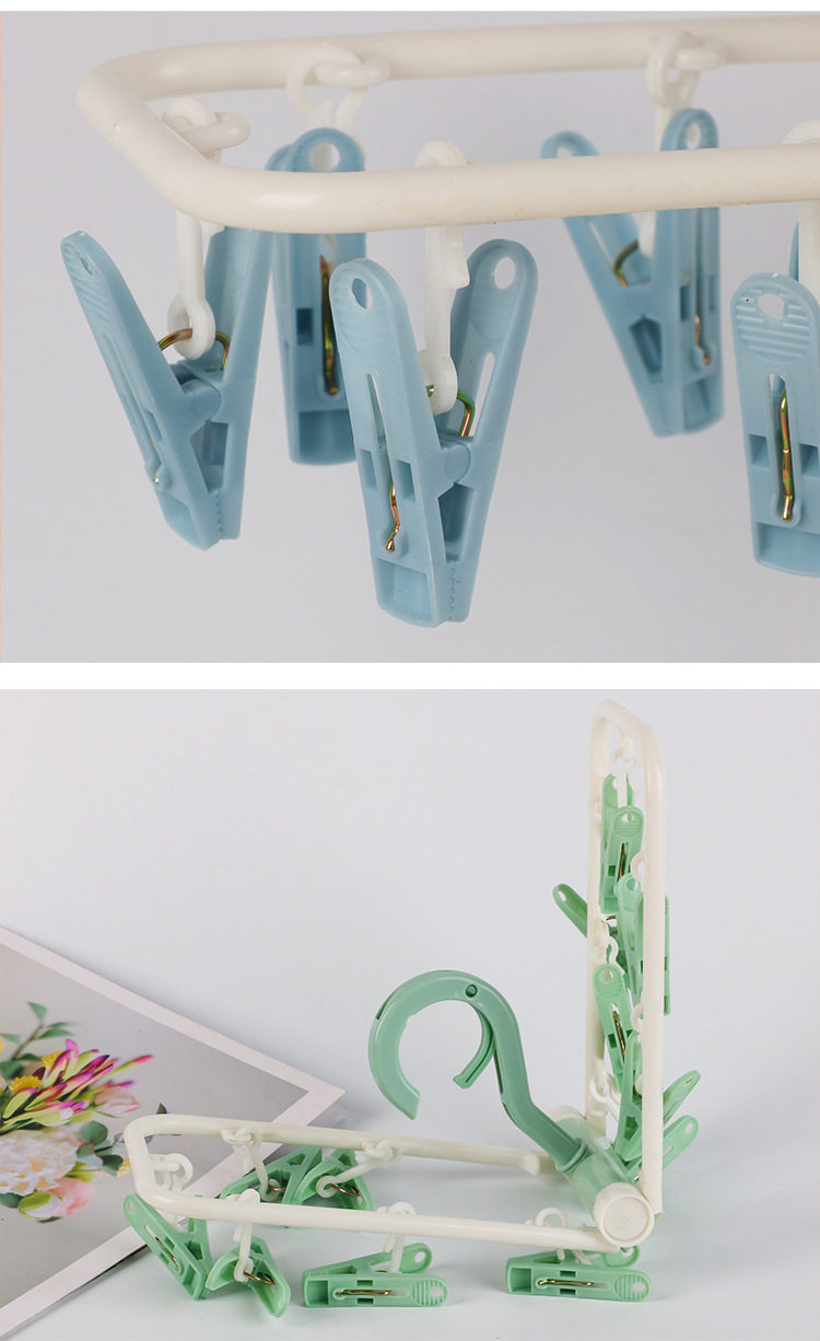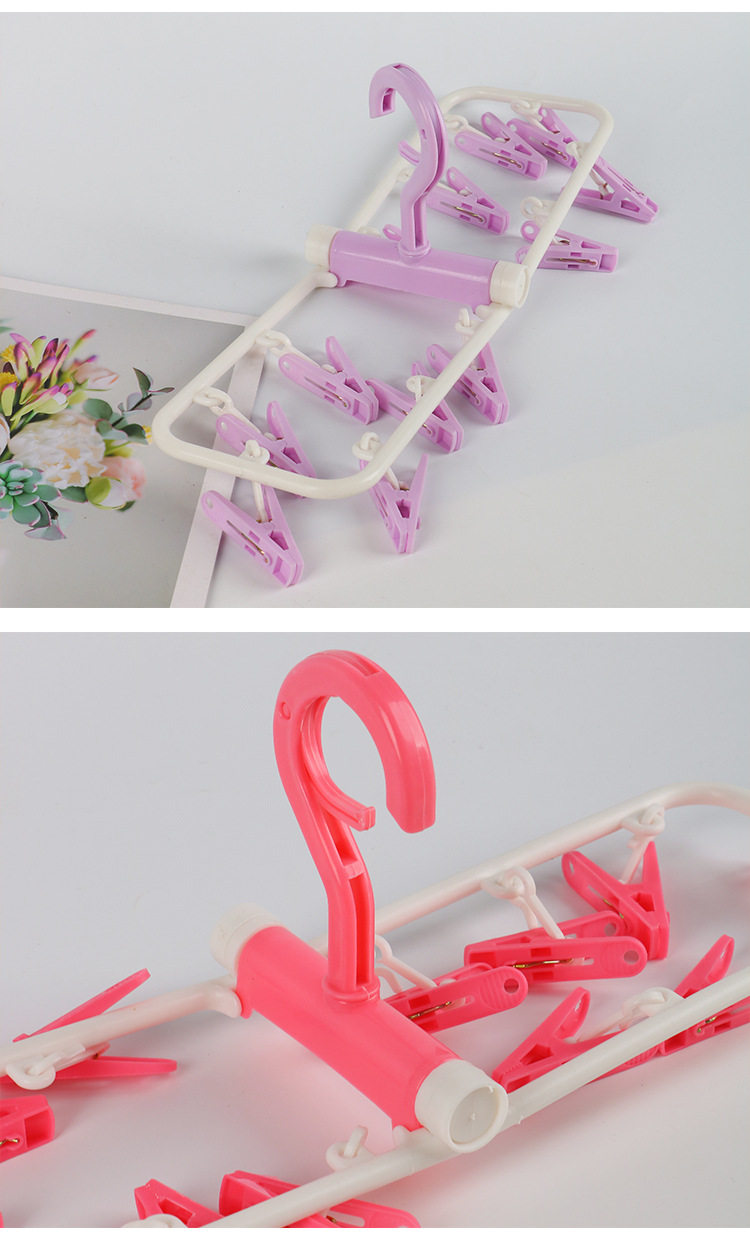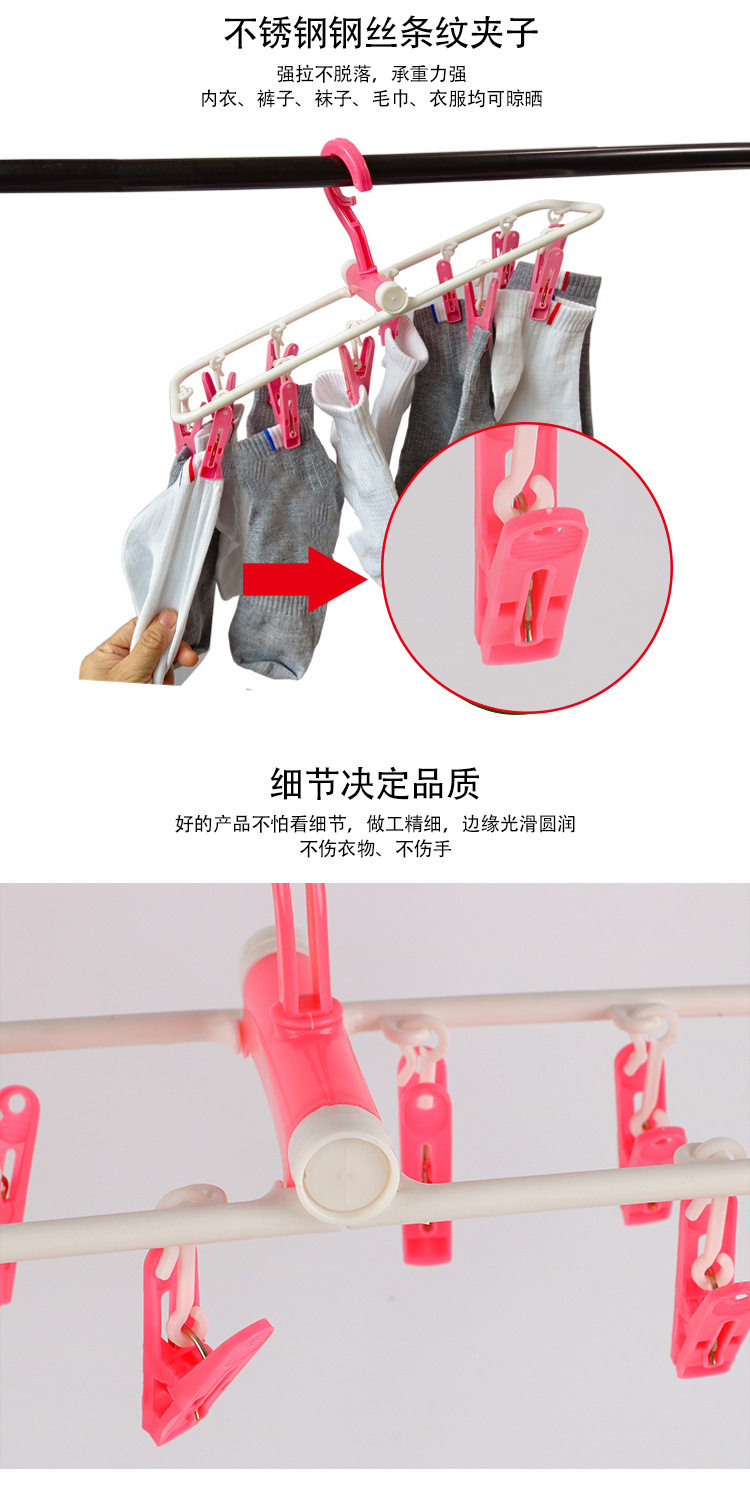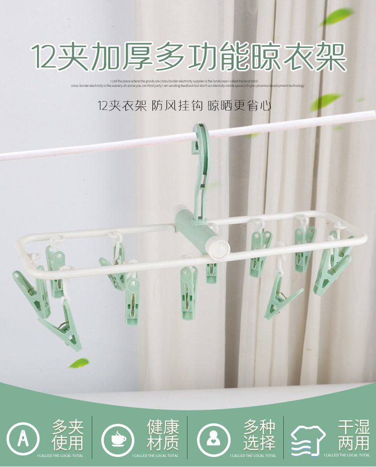 Underwear Clips, Household Sock Drying Rack, 12-Clip Clothes Hanger, Wholesale Multifunctional Clips, Clothes Drying Rack for Balcony