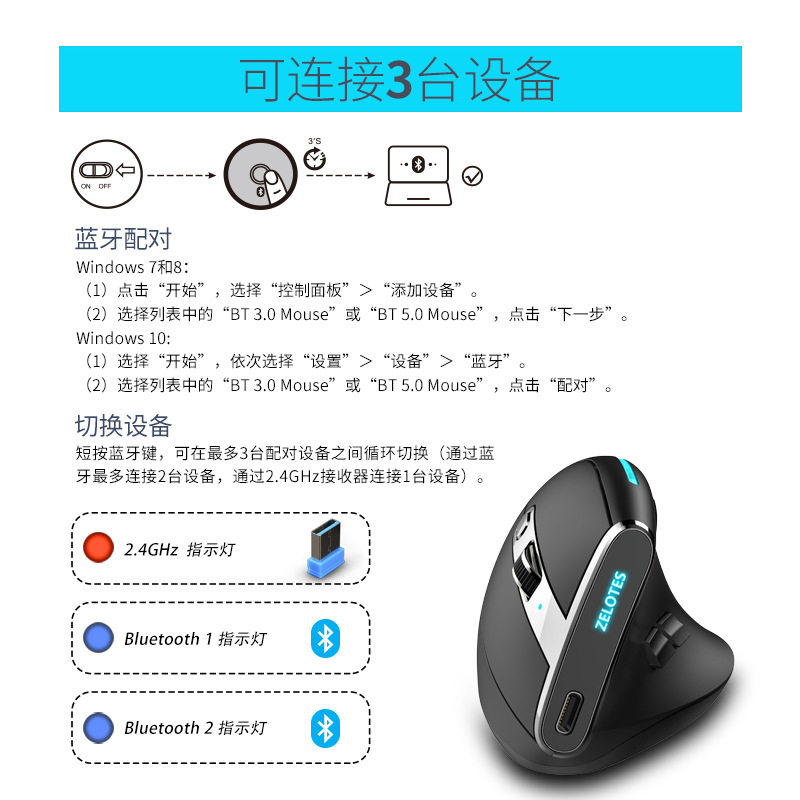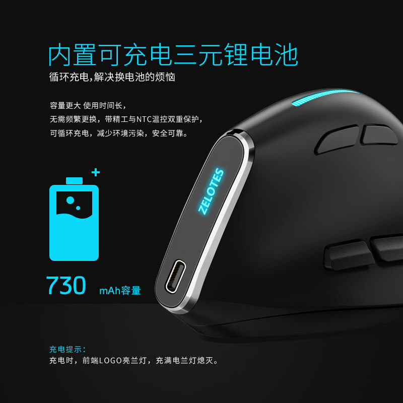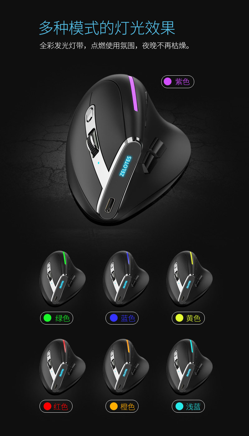 ZELOTES handheld F36 vertical grip ergonomic anti-mouse hand three-mode charging Bluetooth programmable