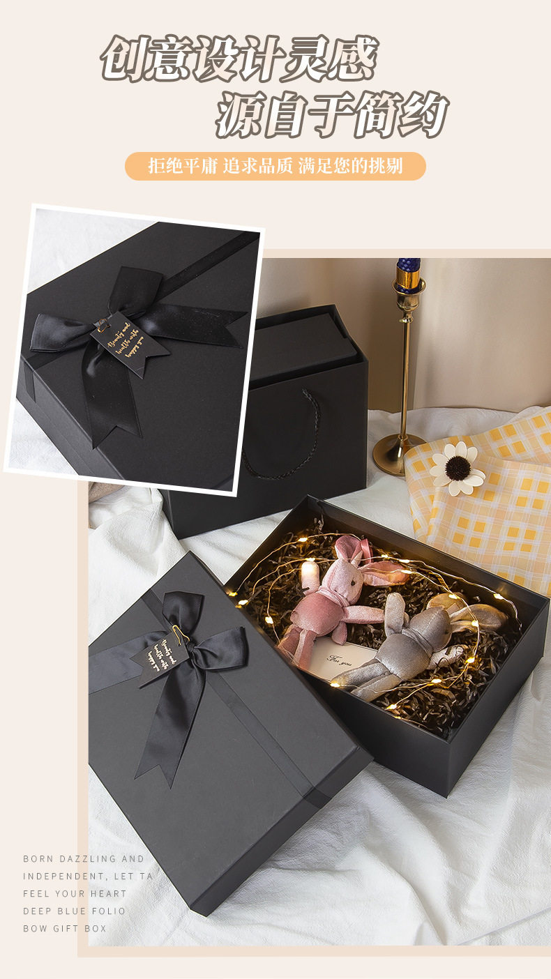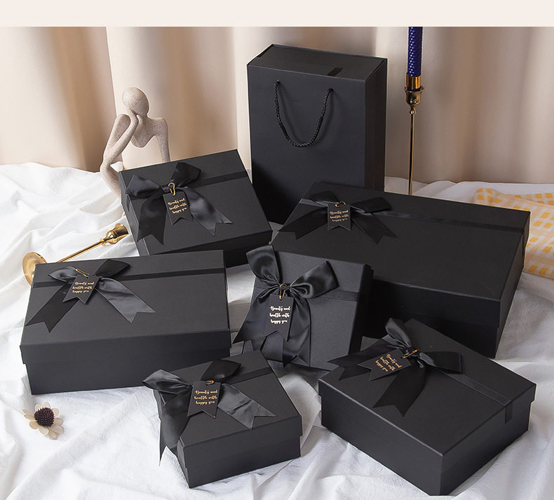 Spot Black Heaven and Earth Cover Gift Box Cosmetic Lipstick Valentine's Day Gift Packaging Box Bow Gift Box