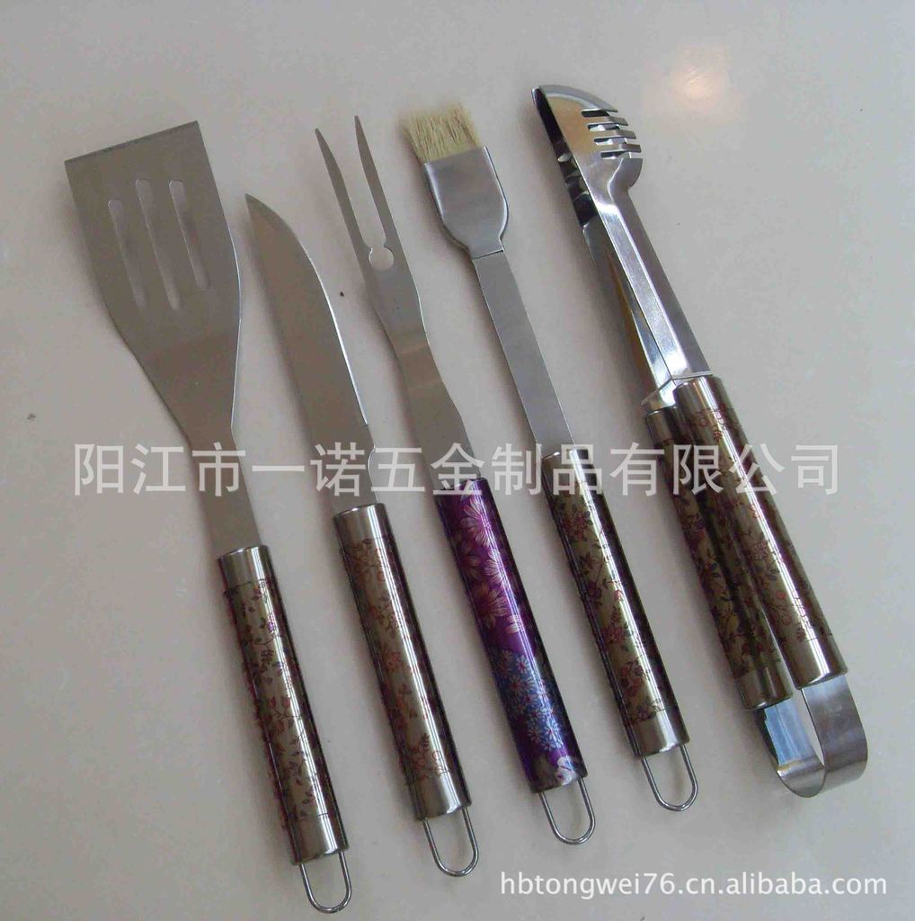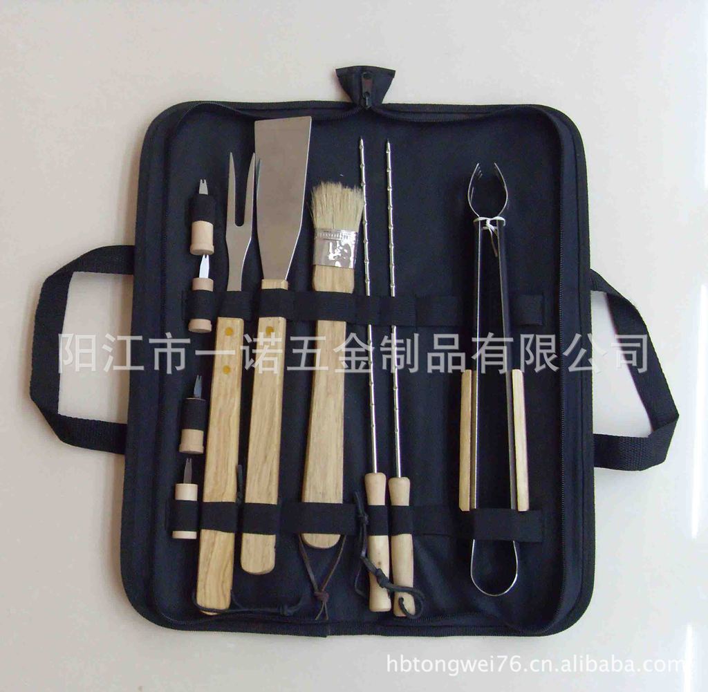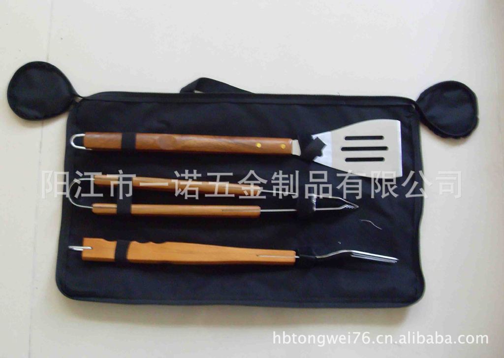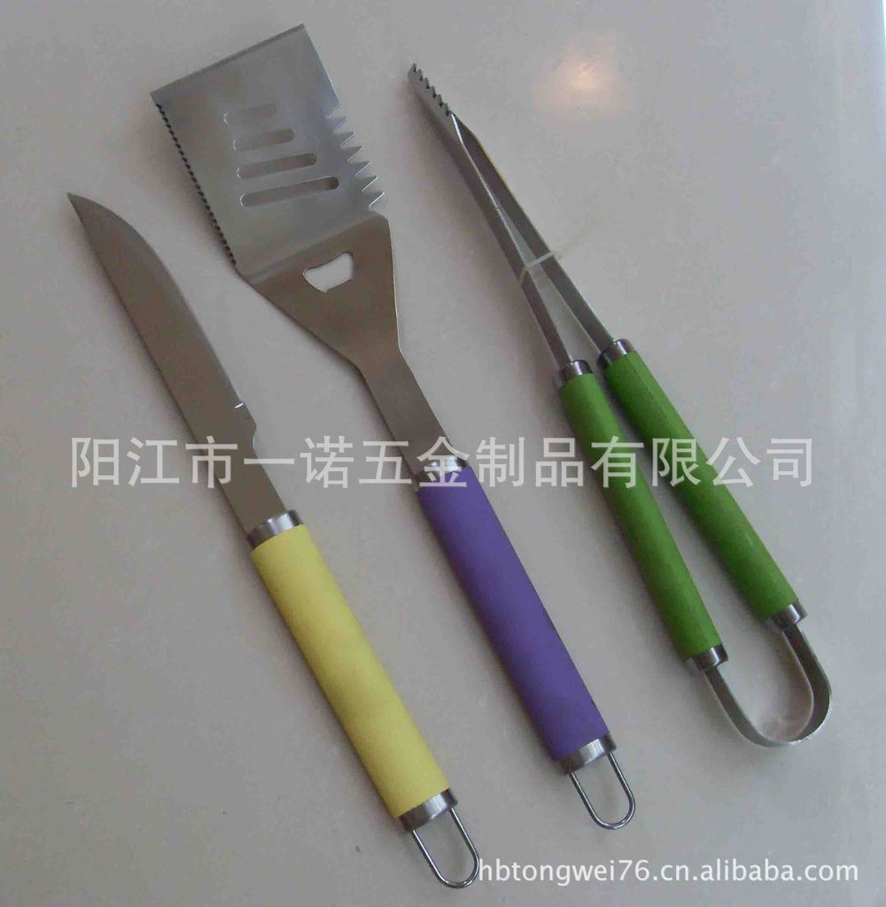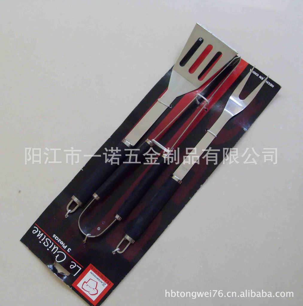 P-011Nk Bbq Tools Bbq Set, Bbq Fork Brush Clamp, Three-Piece Set Tube Handle Washing Card Combination Grill Tools