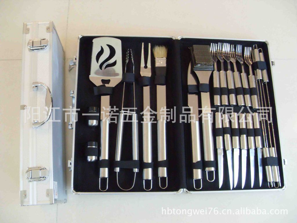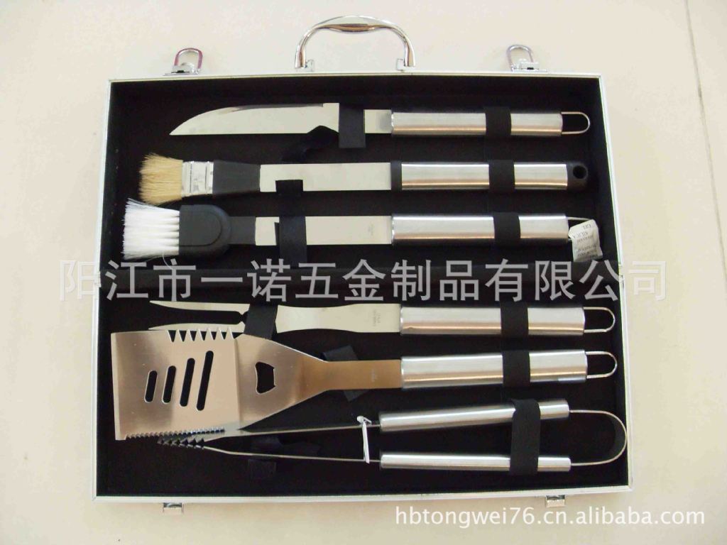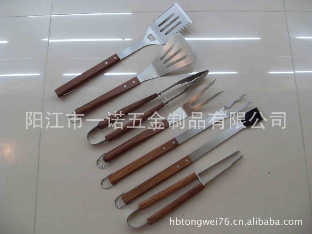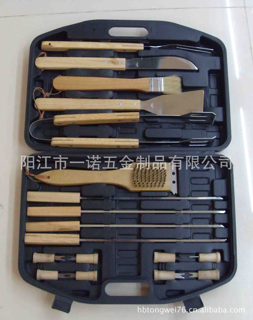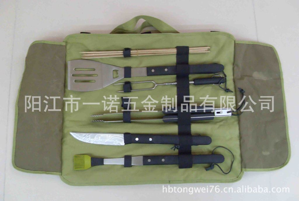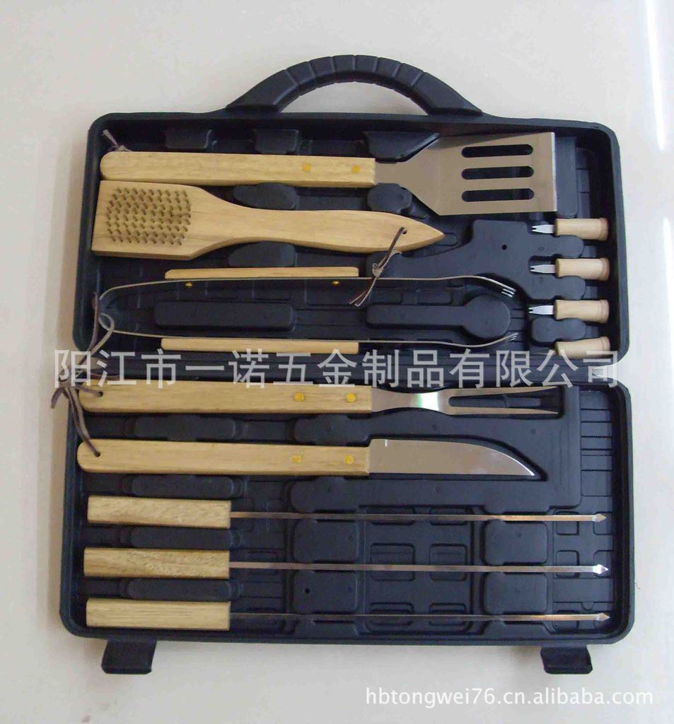 P-011Nk Bbq Tools Bbq Set, Bbq Fork Brush Clamp, Three-Piece Set Tube Handle Washing Card Combination Grill Tools