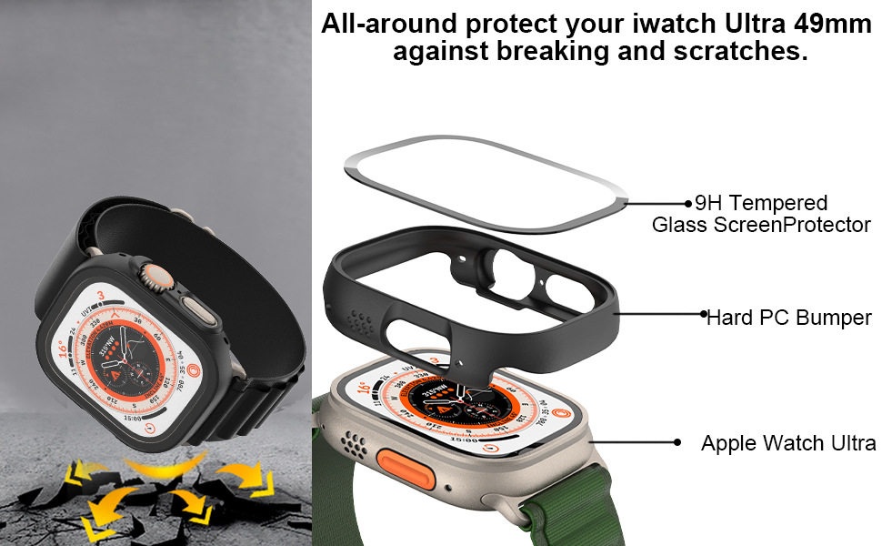 Suitable for Apple 11/10/9 Watch Case, Apple Watch Ultra Watch Protective Case, Pc Tempered Film Integrated