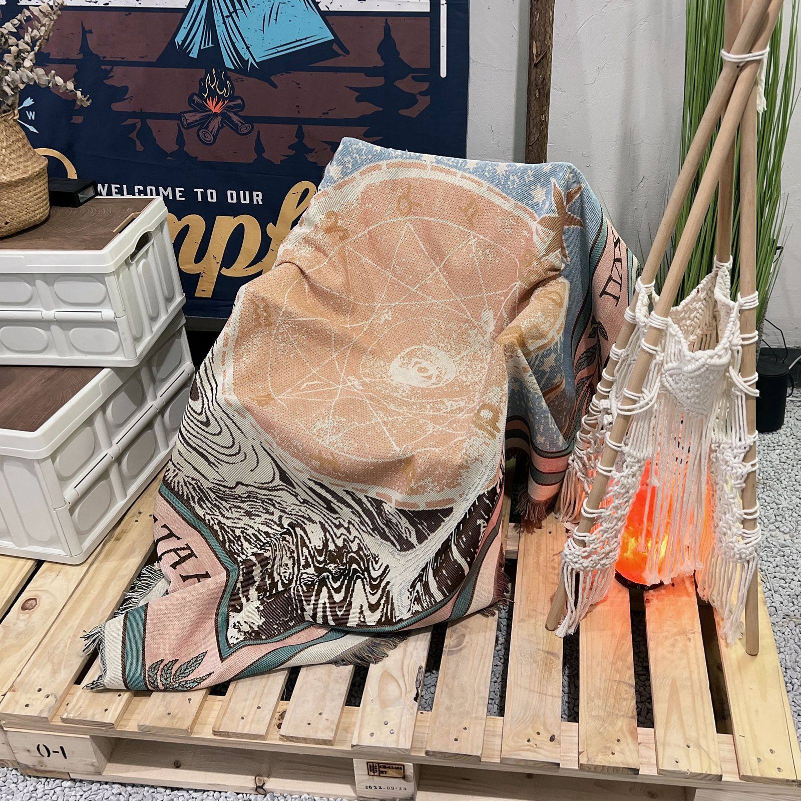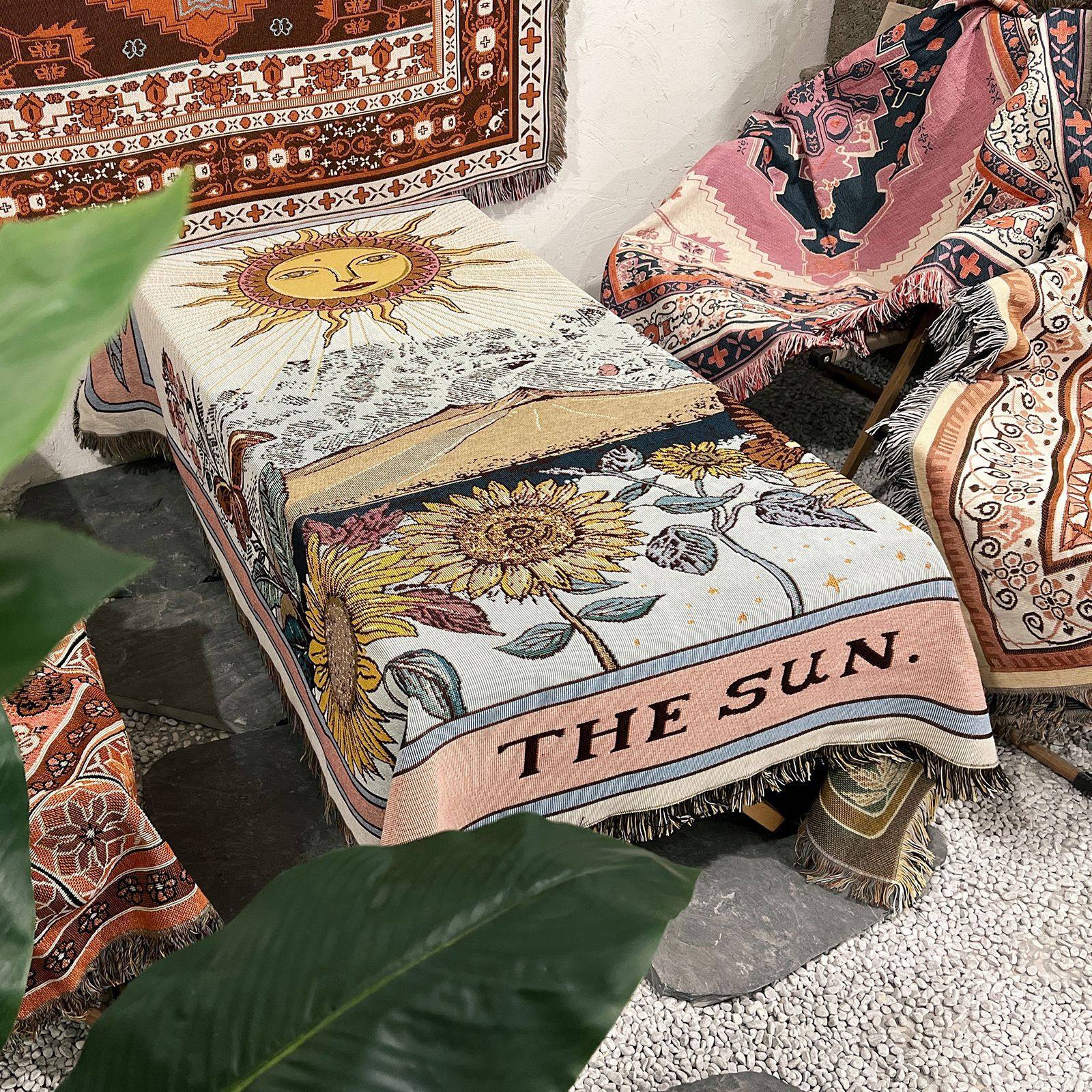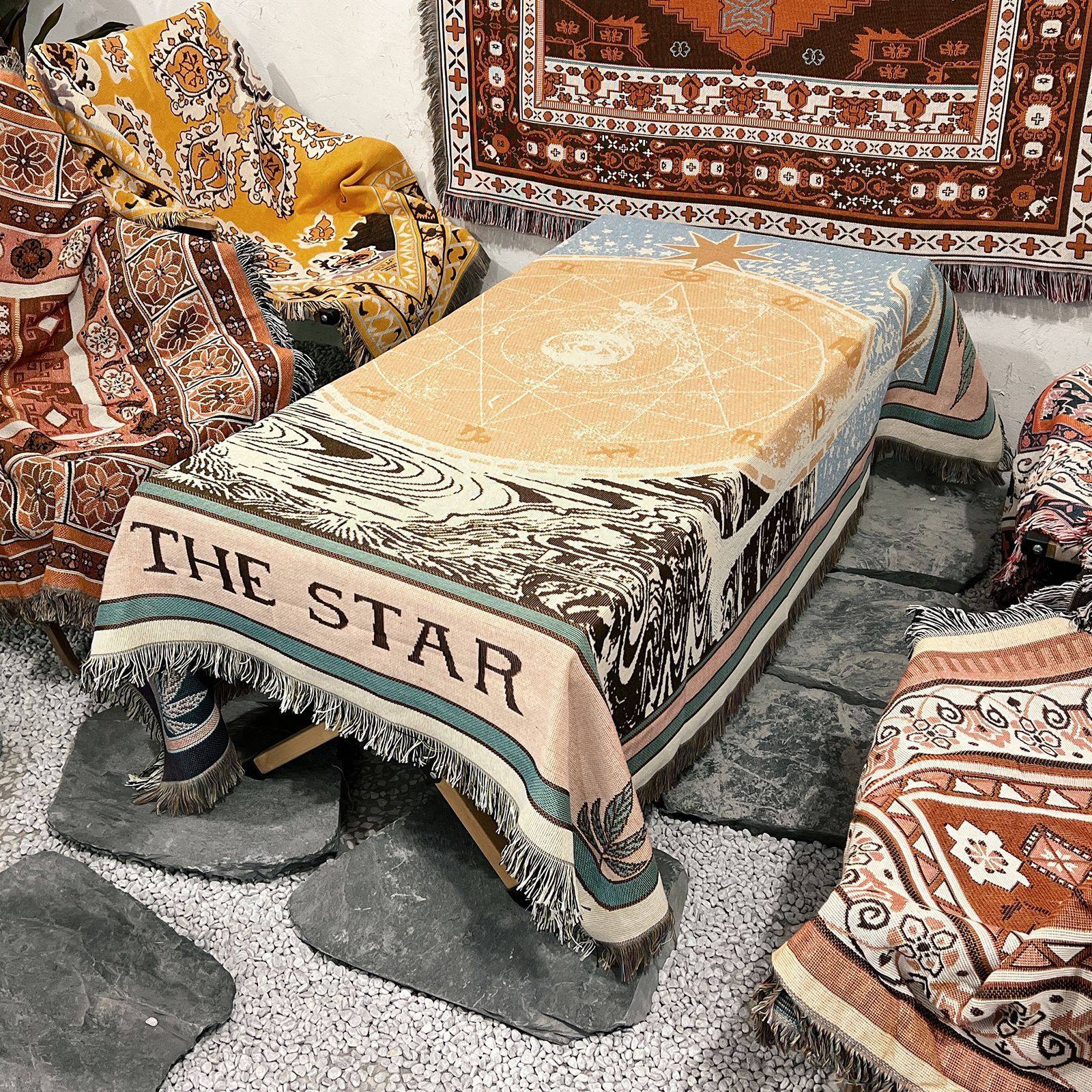 Camping Blanket Outdoor picnic Blanket Sofa Blanket Cover Blanket Ins Wind Multifunctional Line Blanket Bohemian Blanket Line Blanket