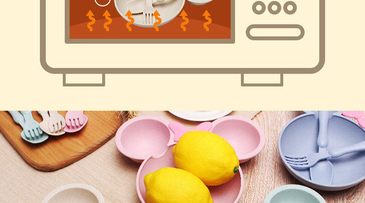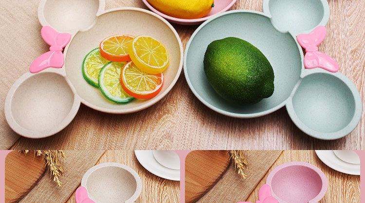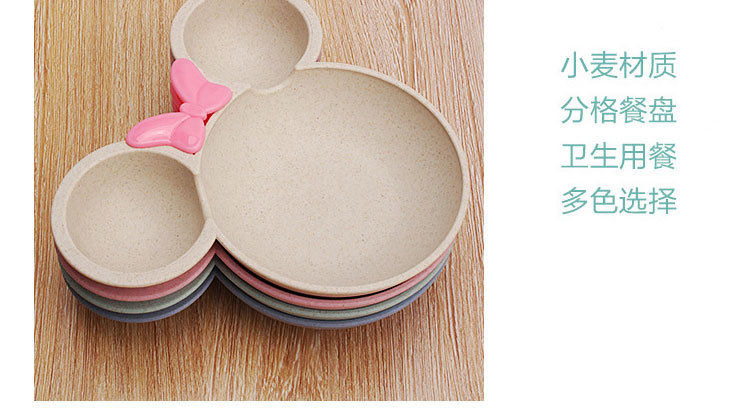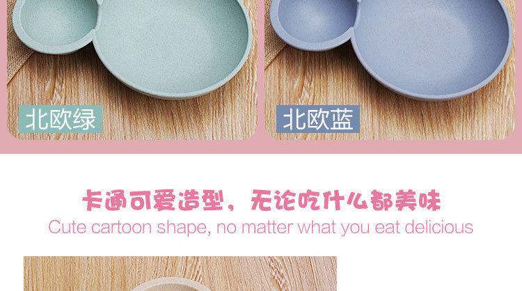 Children's wheat straw grid plate fast food plate Cartoon creative food supplement bowl kindergarten tableware gift printed logo