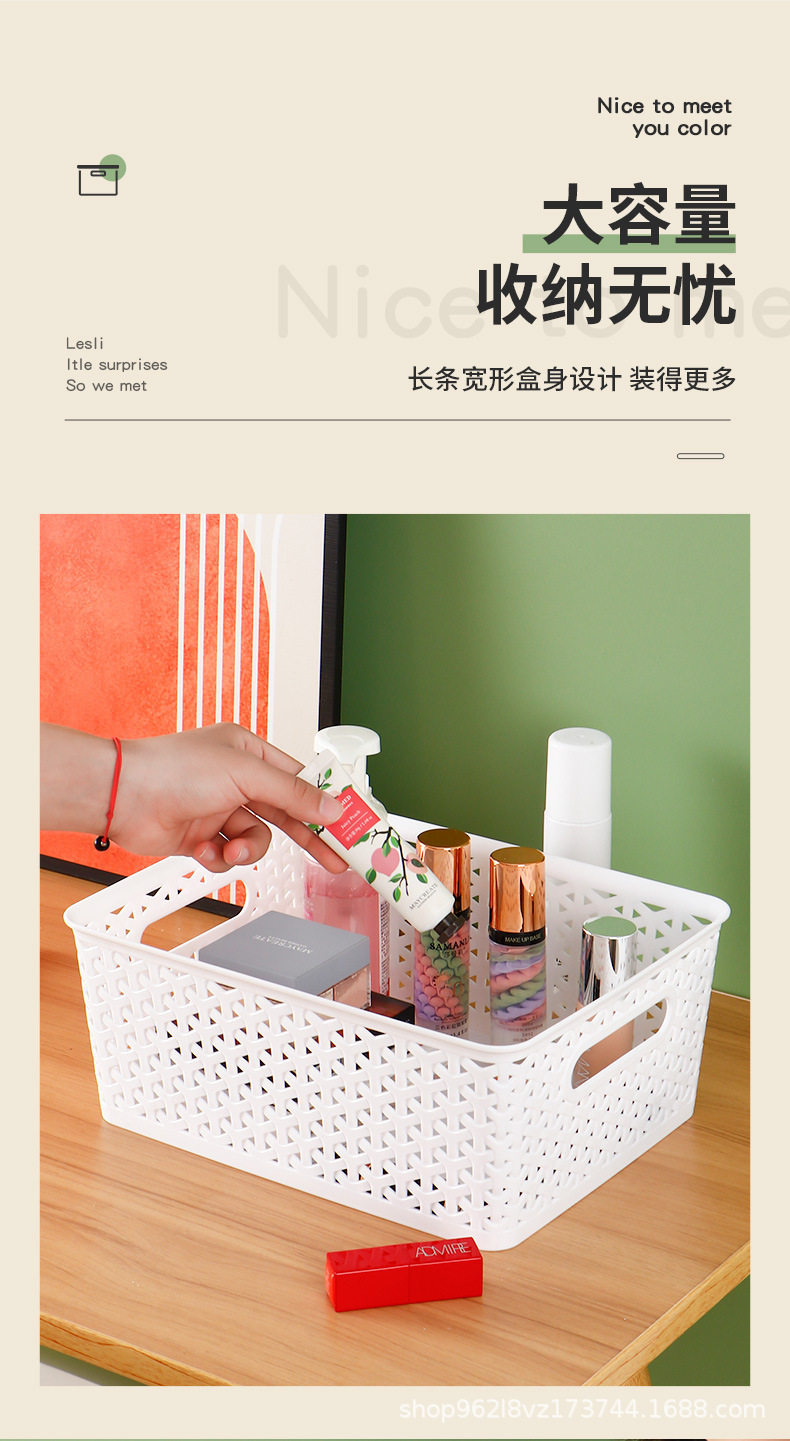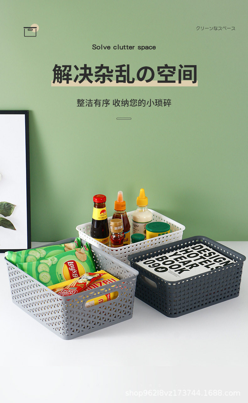 Cross-border Hot-sale Plastic Hollow-out Edge Woven Simple Storage Finishing Storage Basket Household Supplies Kitchen Groceries Box