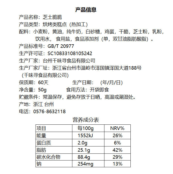 | Packing specification | Cheese crispy 1 can 50g,Bulk cheese crisps 0.5kg (fragile, no returns) |