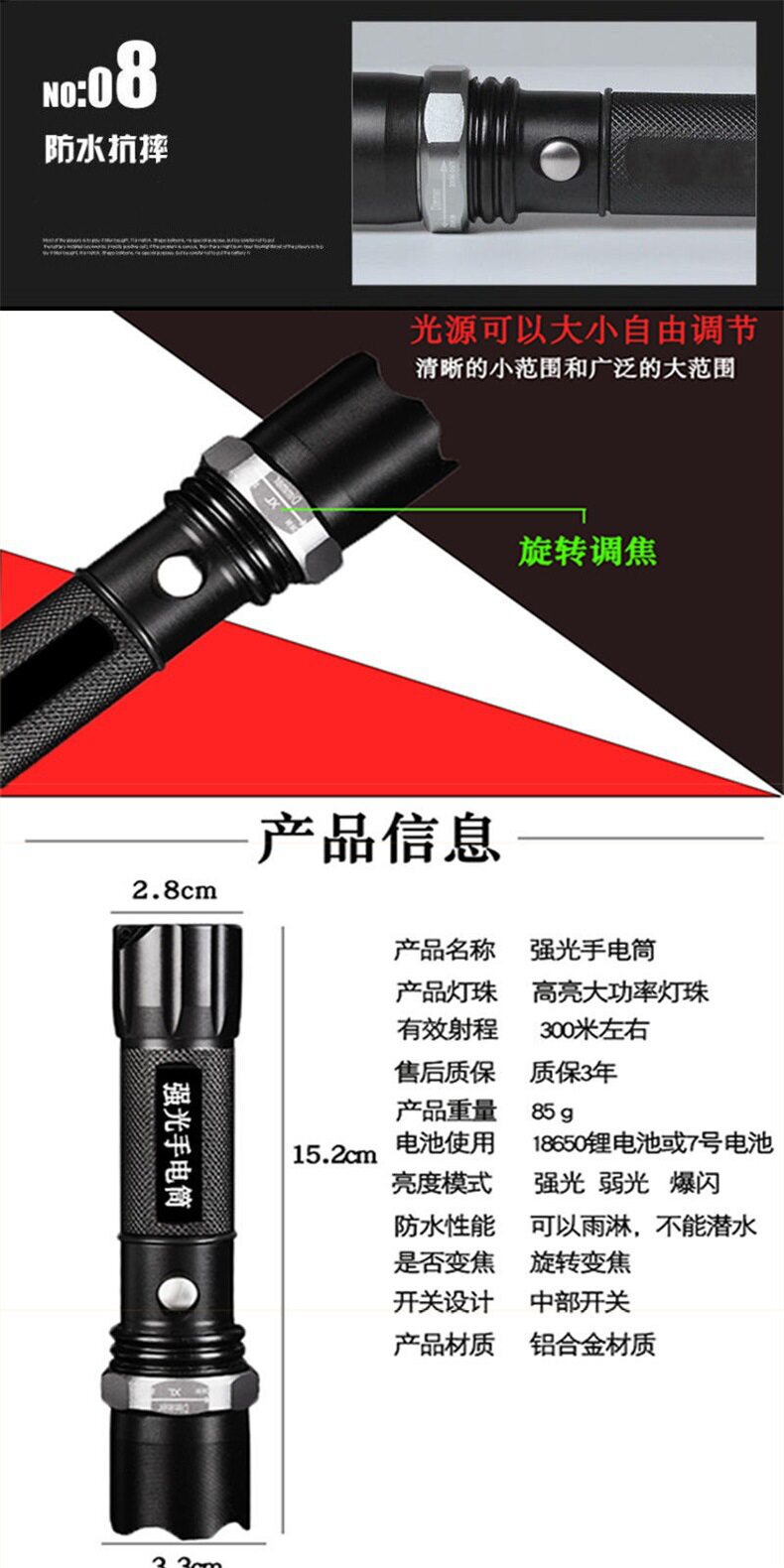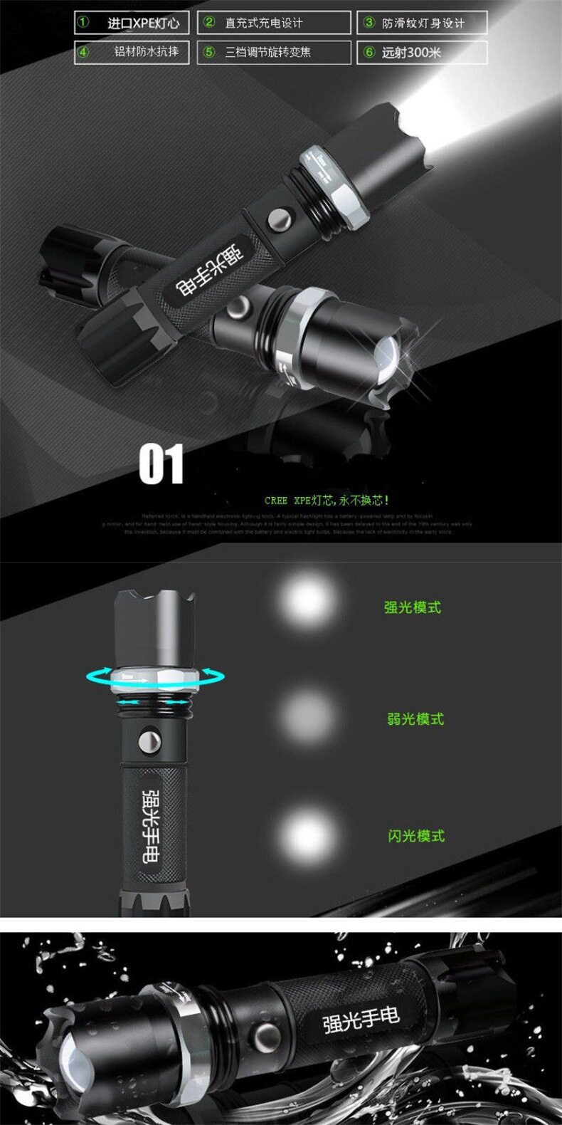 | Color | Single flashlight (without battery),Flashlight plus battery plus charger,Flashlight plus battery plus charger plus gift box,T6 green circle attack hammer flashlight single (without battery charger),XPE Green Ring Attack Hammer Flashlight Single (without battery charger),T6 Green Circle Attack Hammer Flashlight (Flashlight Battery Charger),XPE Green Circle Attack Hammer Flashlight (Flashlight Battery Charger),T6 green circle attack hammer flashlight (flashlight battery charger gift box),XPE Green Circle Attack Hammer Flashlight (Flashlight Battery Charger Gift Box),T6 green circle attack hammer flashlight (flashlight battery charger car charger gift box),XPE green circle attack hammer flashlight (flashlight battery charger car charger gift box) |