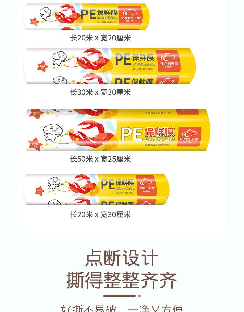 Yunlei cling film Knife-free tear-off disposable large roll kitchen household food microwave cling film wholesale
