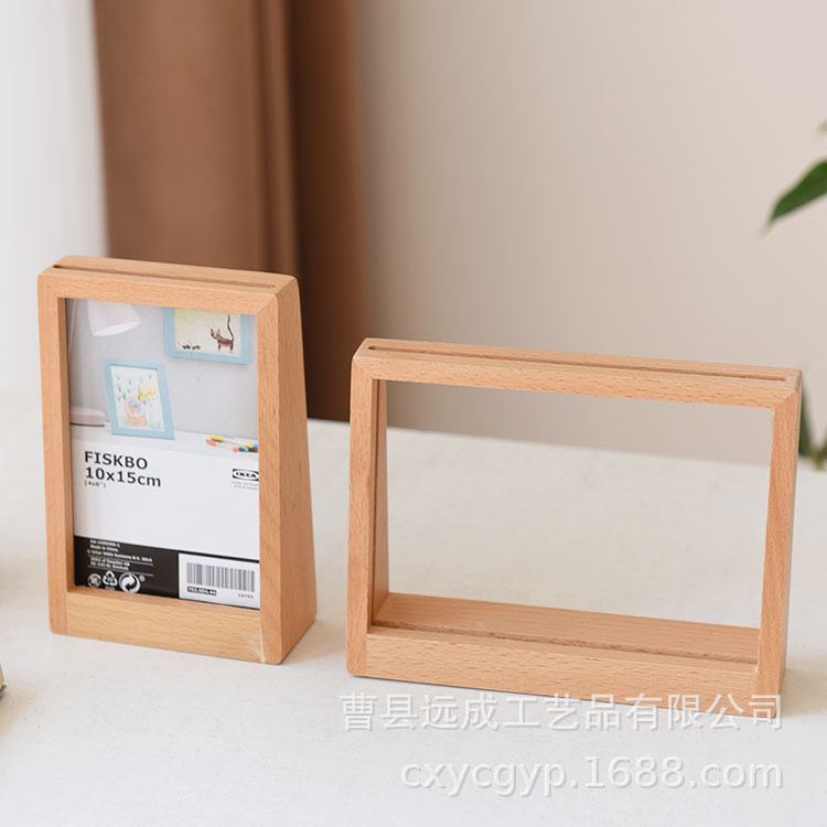 Beech Photo Frame Table for Living Room Hollow Acrylic Double-sided Photo Frame Horizontal Version Vertical Version Bedroom Desktop Photo Frame Ornaments