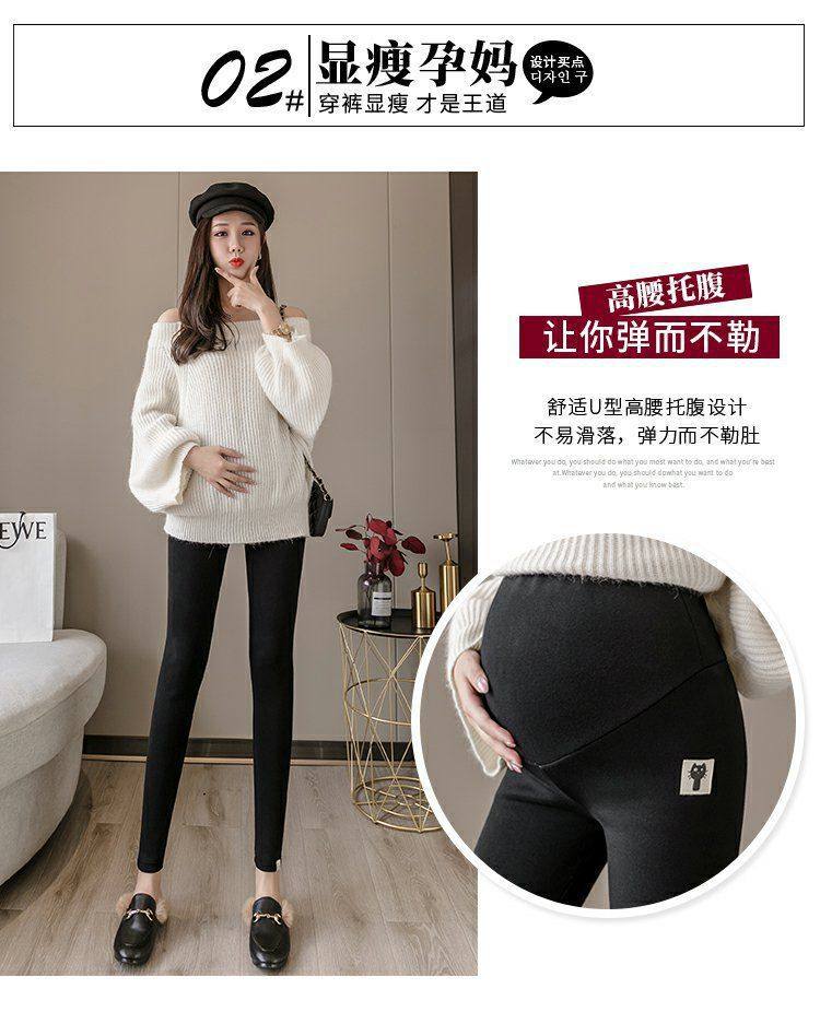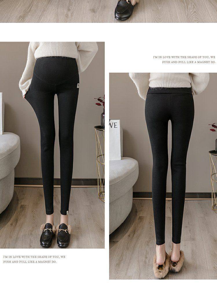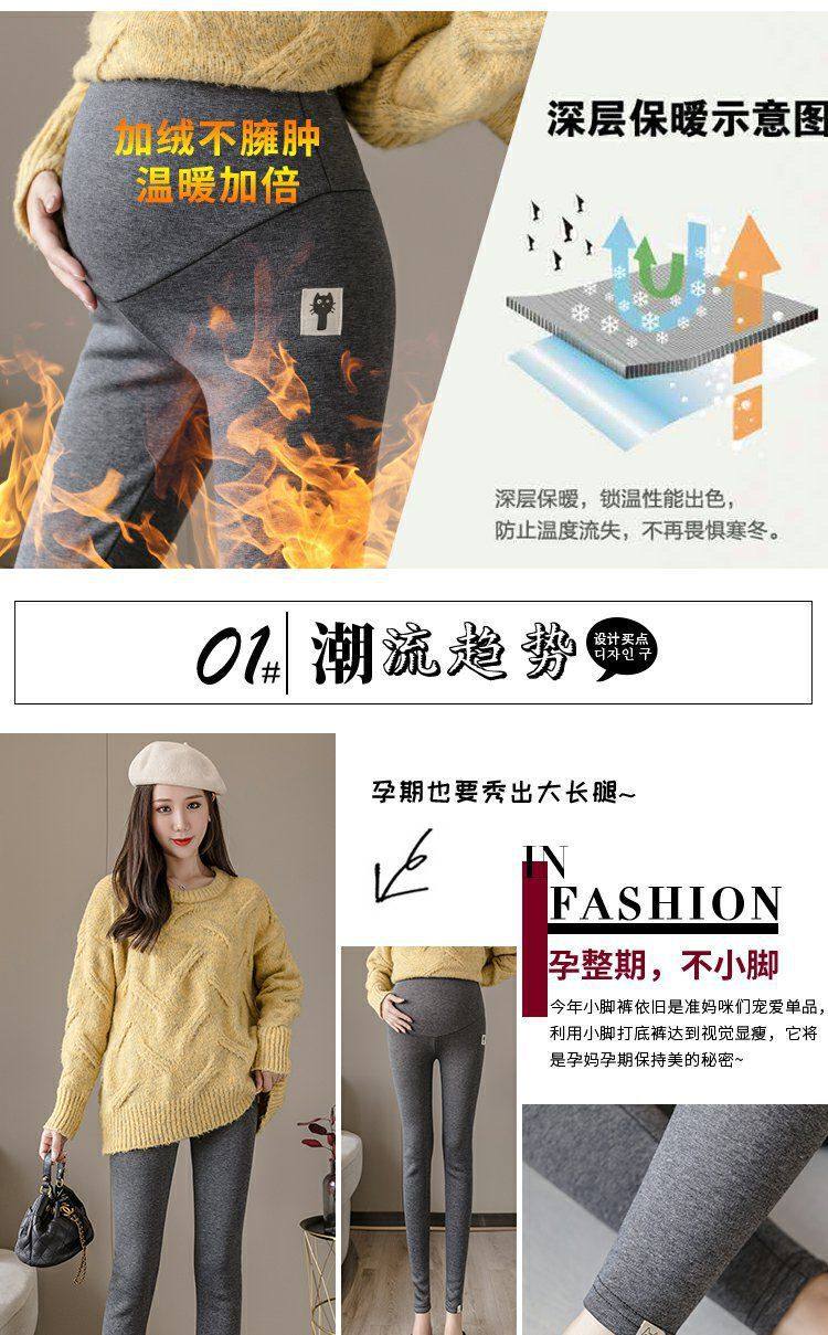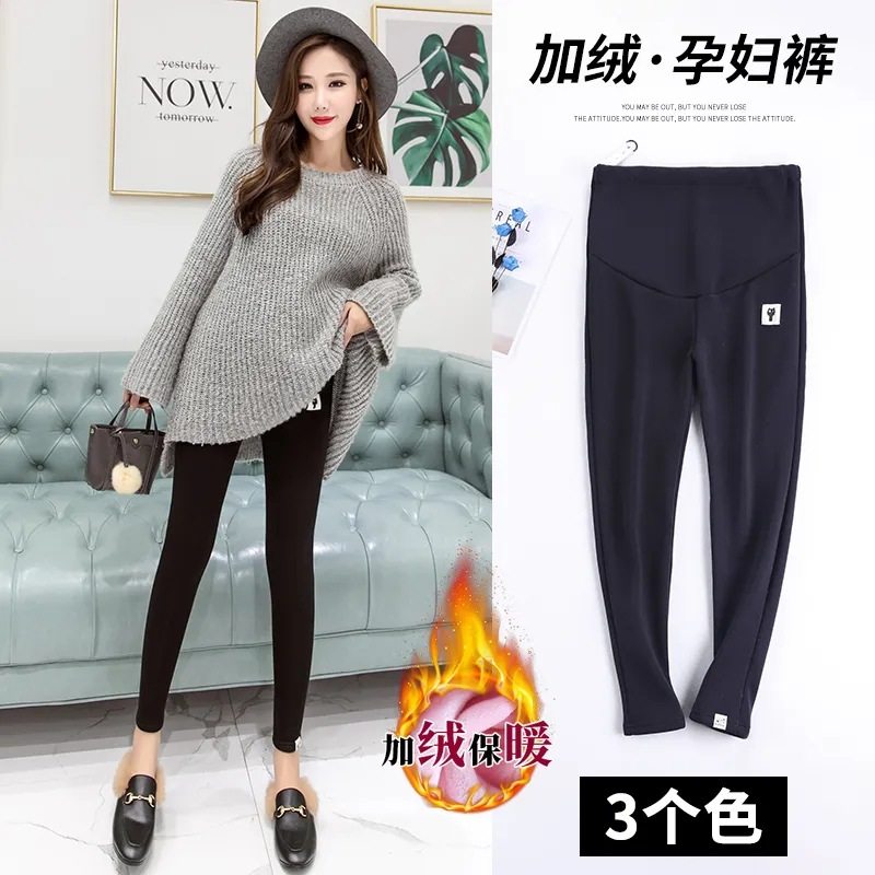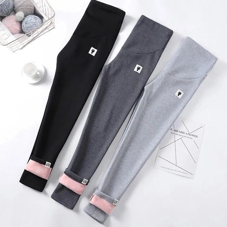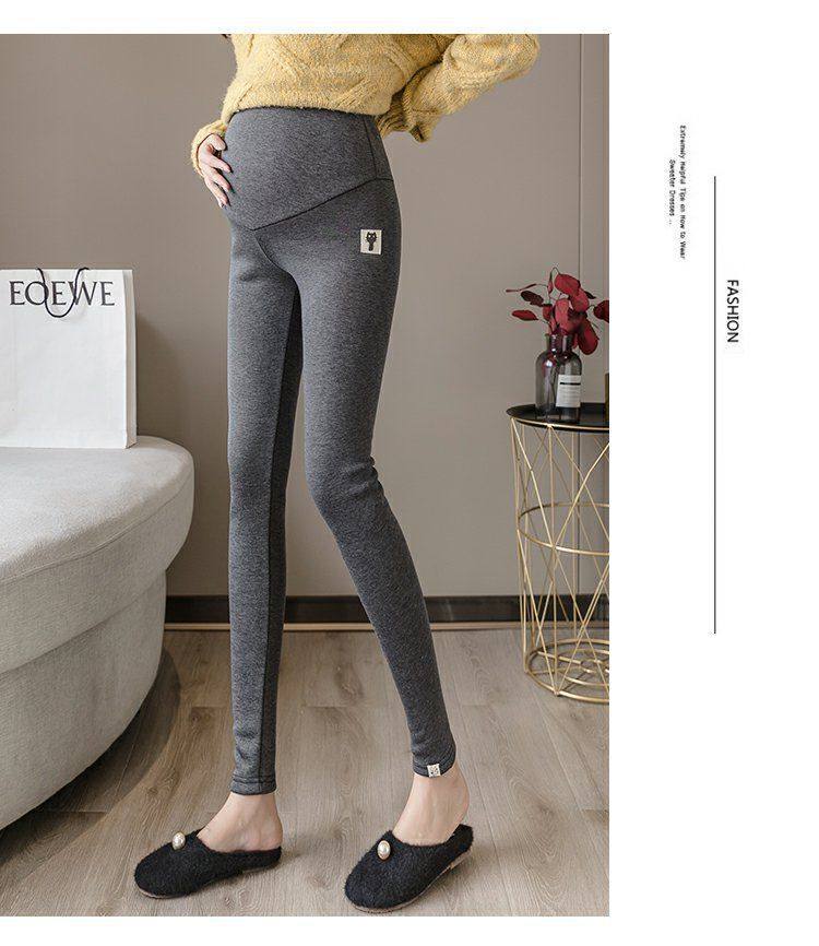 2024 autumn and winter maternity fleece-lined warm pants non-inverted velvet padded outside wear stretch abdominal pants spring and summer leggings