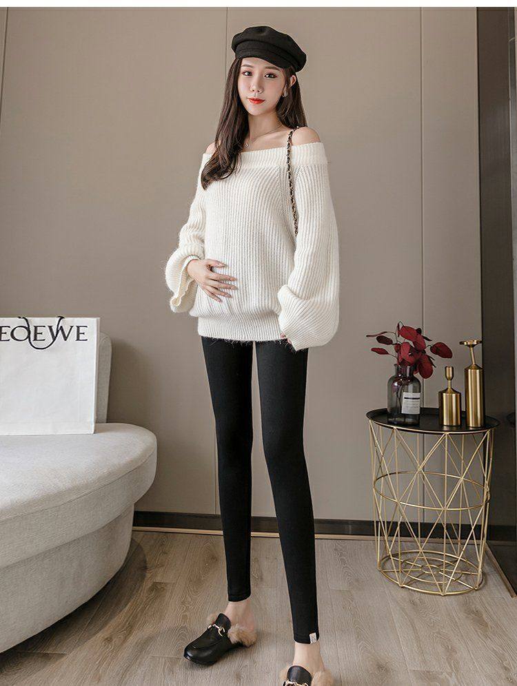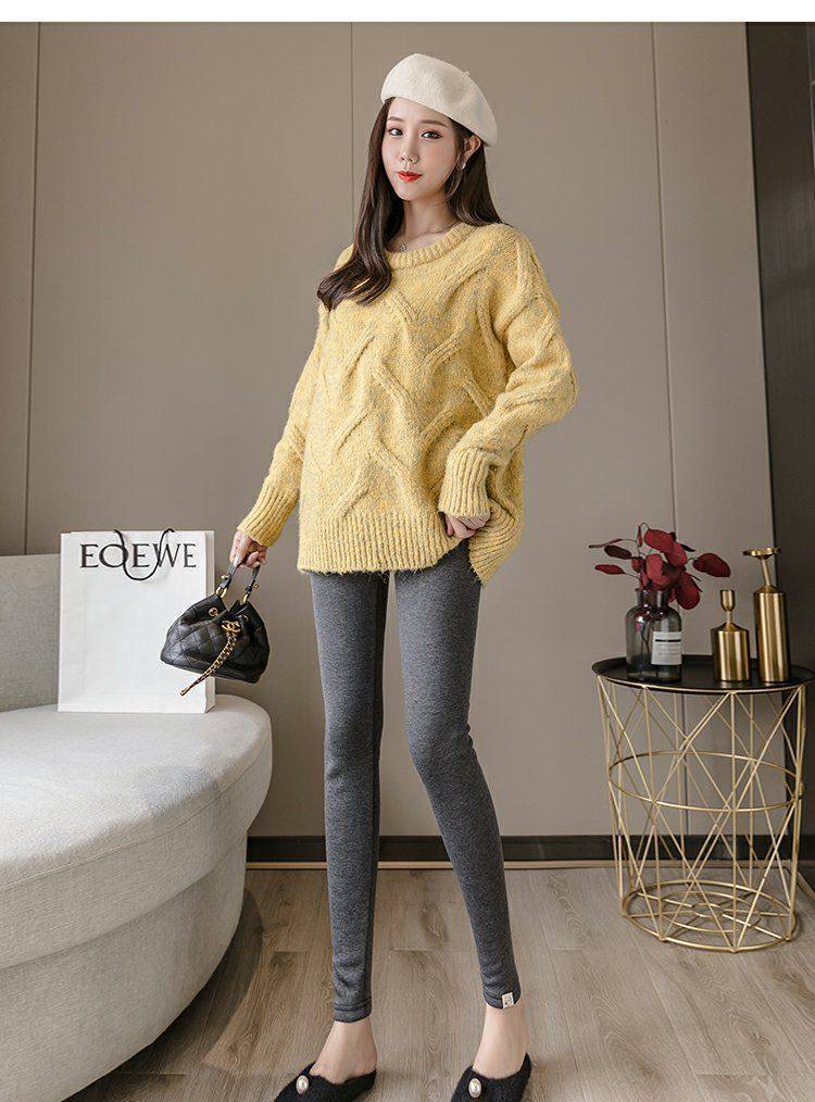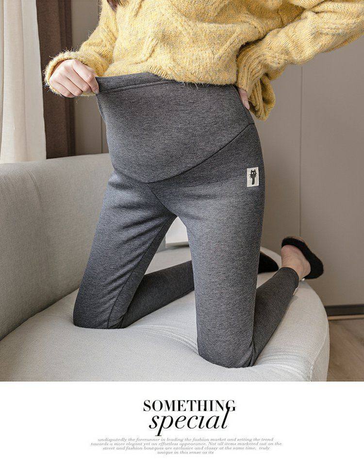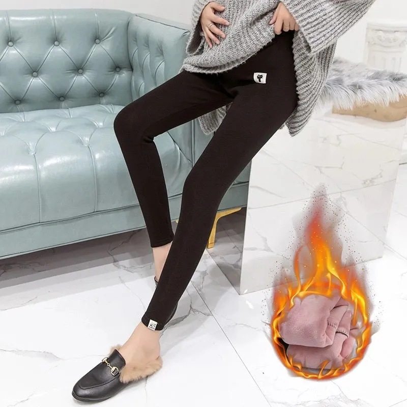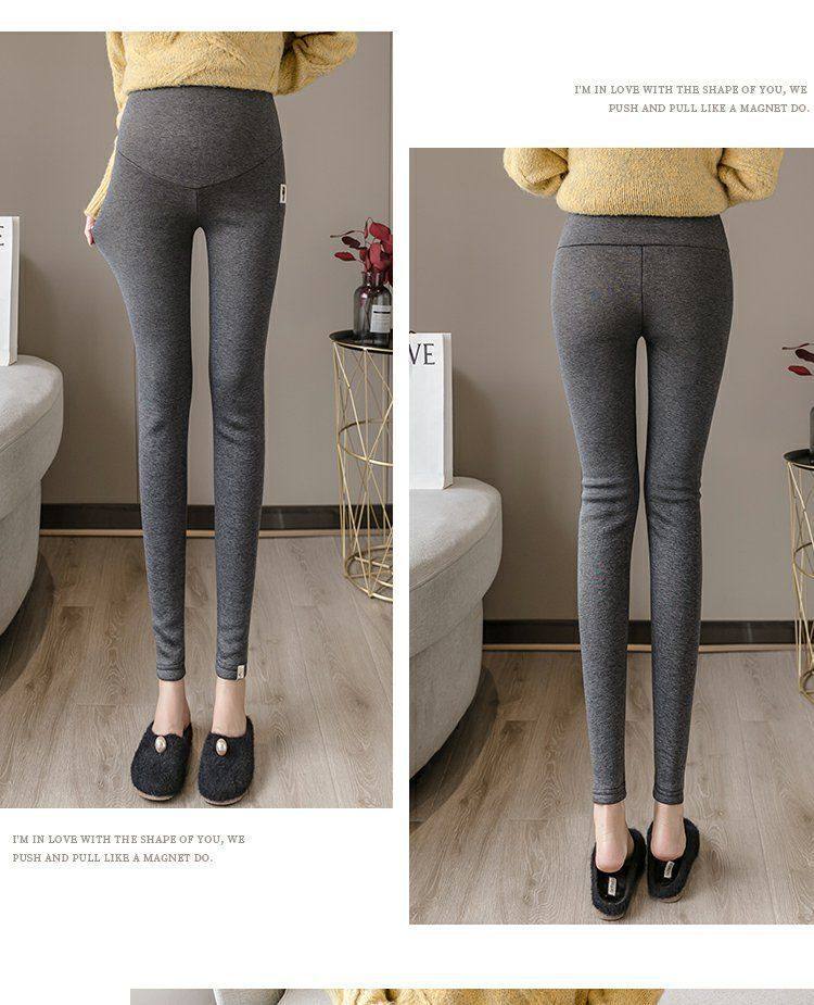 2024 autumn and winter maternity fleece-lined warm pants non-inverted velvet padded outside wear stretch abdominal pants spring and summer leggings