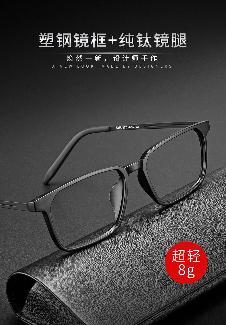 Factory Direct Sales 8878 Pure Titanium Glasses Frame Myopia Glasses Men's Full Frame Big Face Ultra-Light Glasses Frame Elastic Paint