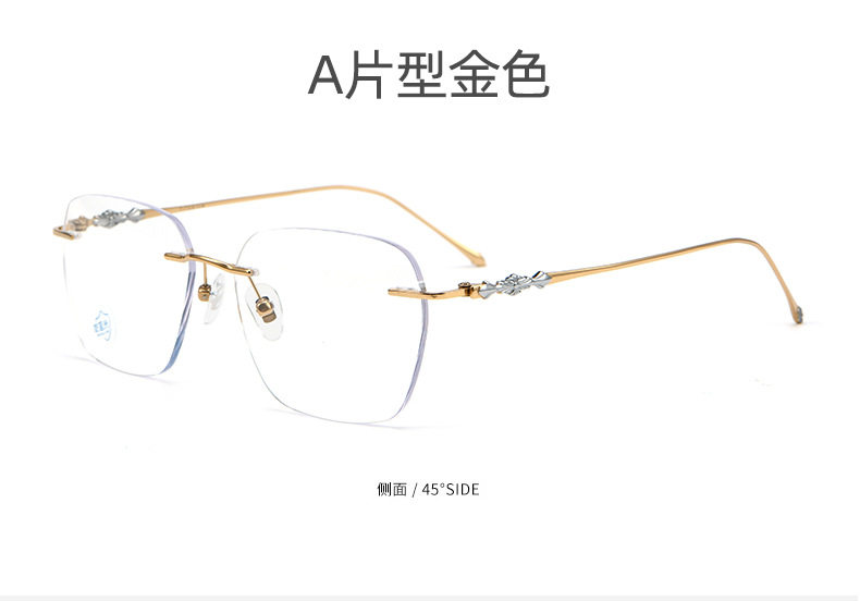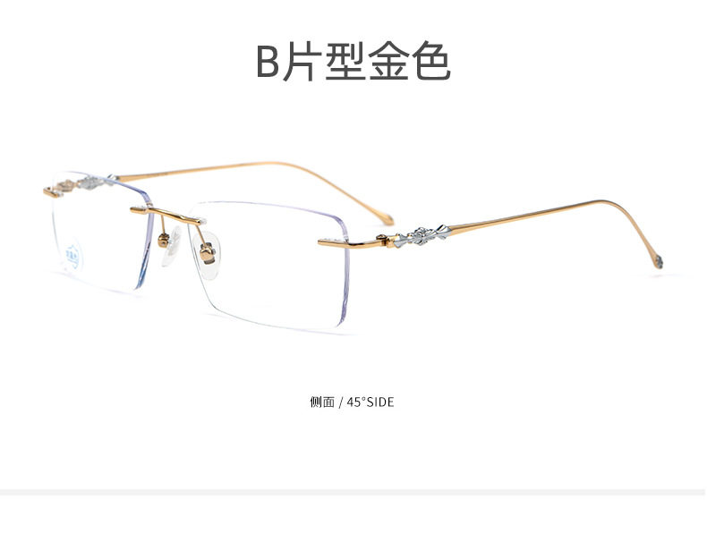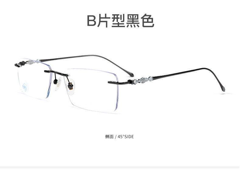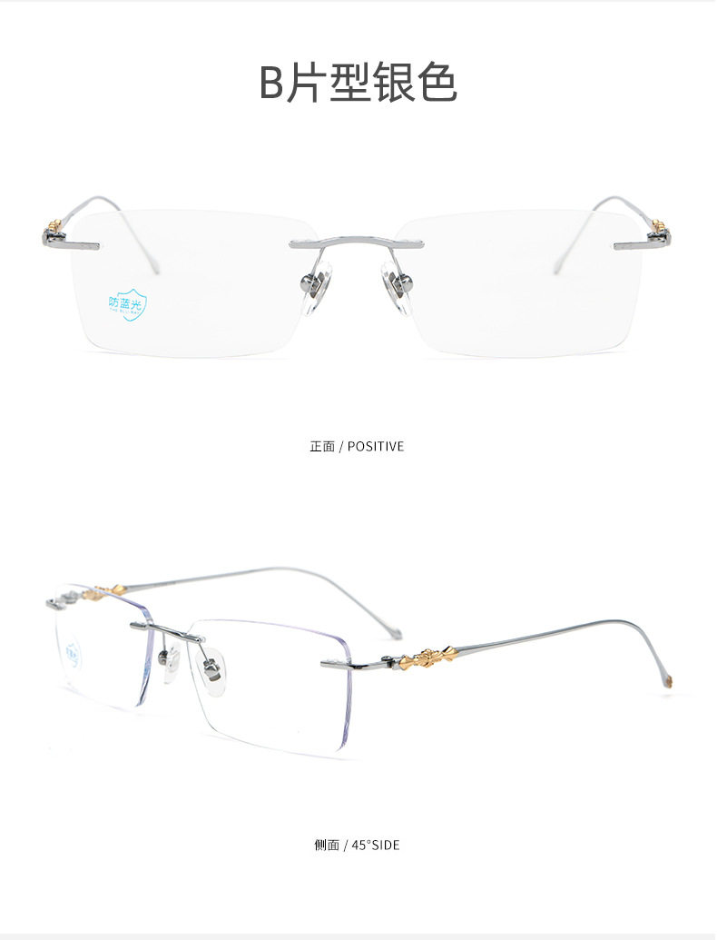 Baishifen 1910Ti Retro Pure Titanium Rimless Glasses Frame Anti-Blue Light Can Be Equipped with Prescription Myopia Glasses Men's Frames