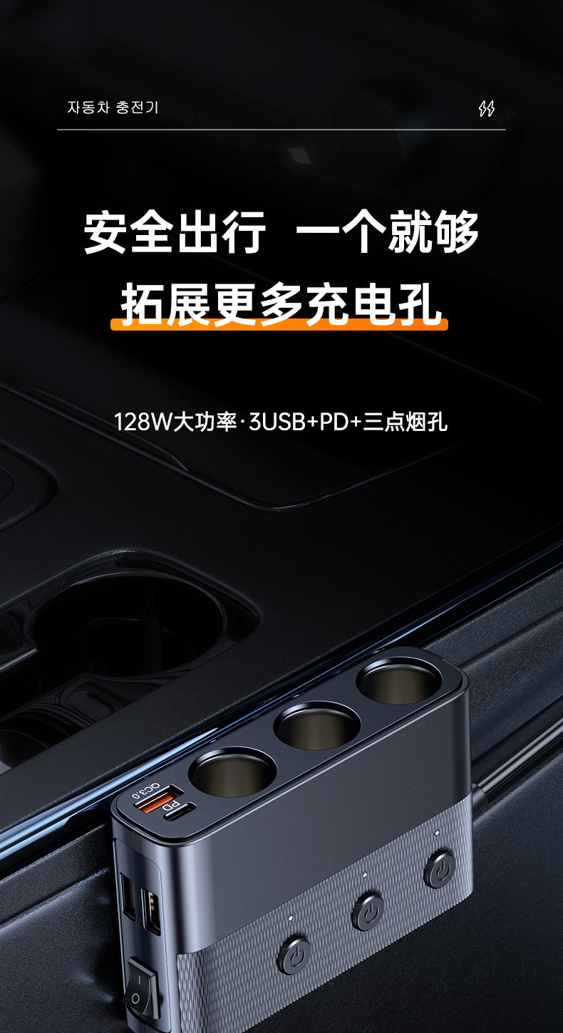 One-To-Three Conversion Plug Car Charger Pd Fast Charging Car Charger High-Power Flash Charging Multi-Function Car Charger