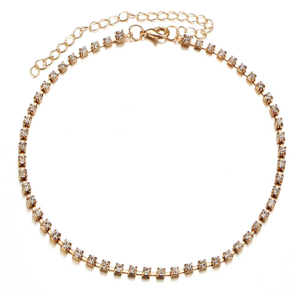 European and American Cross-Border Best-Selling Jewelry, Simple and Versatile Street Style Necklace for Women, Diamond-Encrusted Pendant, Elegant and Simple Clavicle Chain