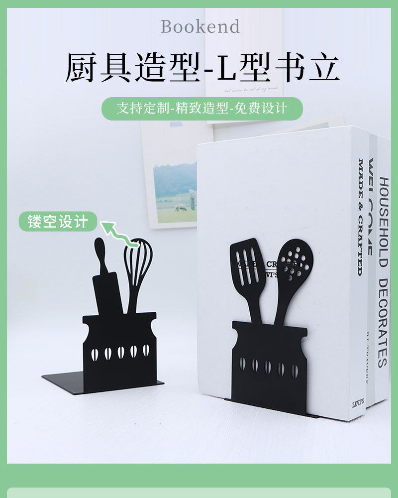 Factory direct supply cross-border iron metal book stand simple kitchen products modeling book by bookends spot wholesale