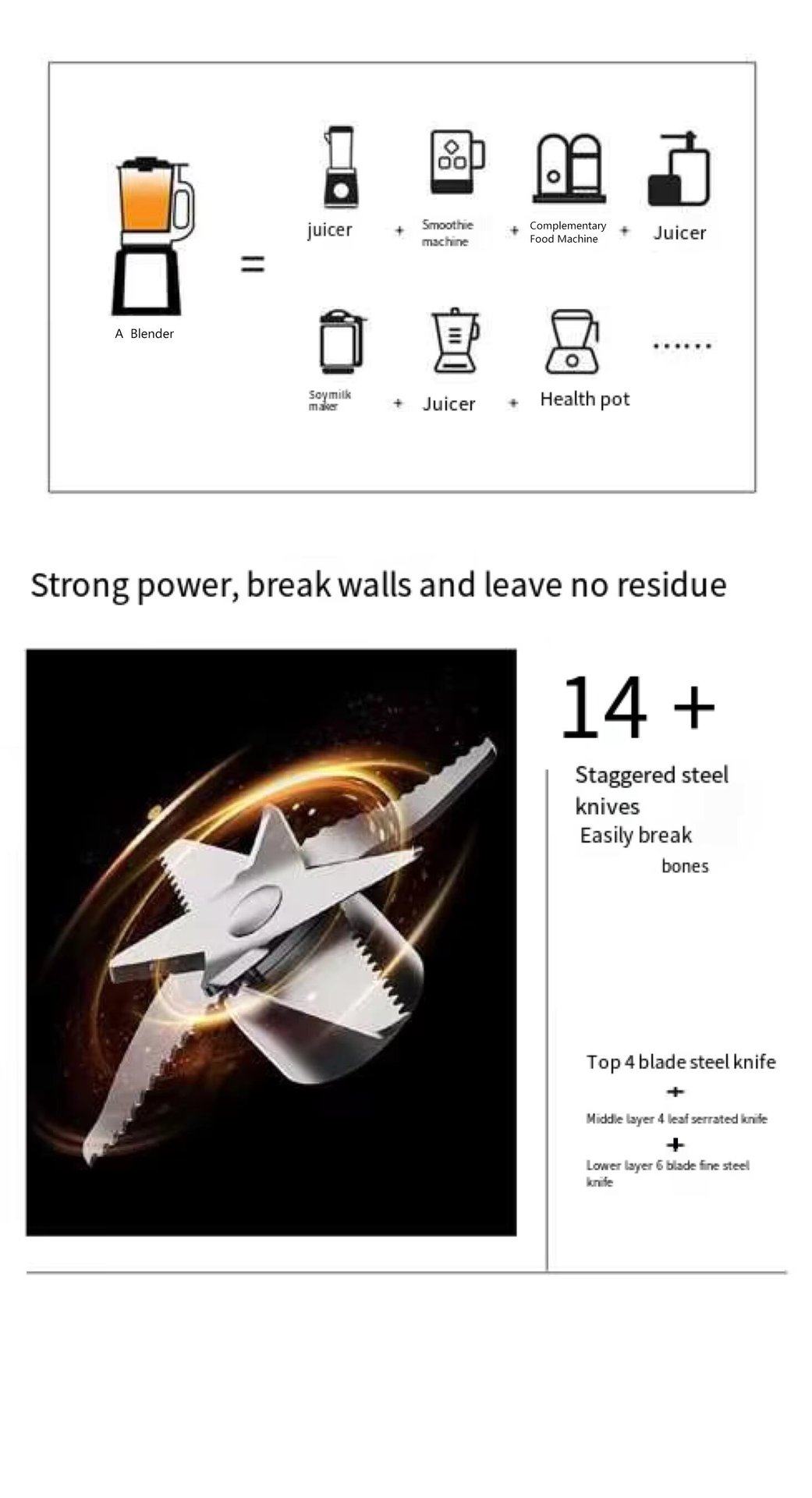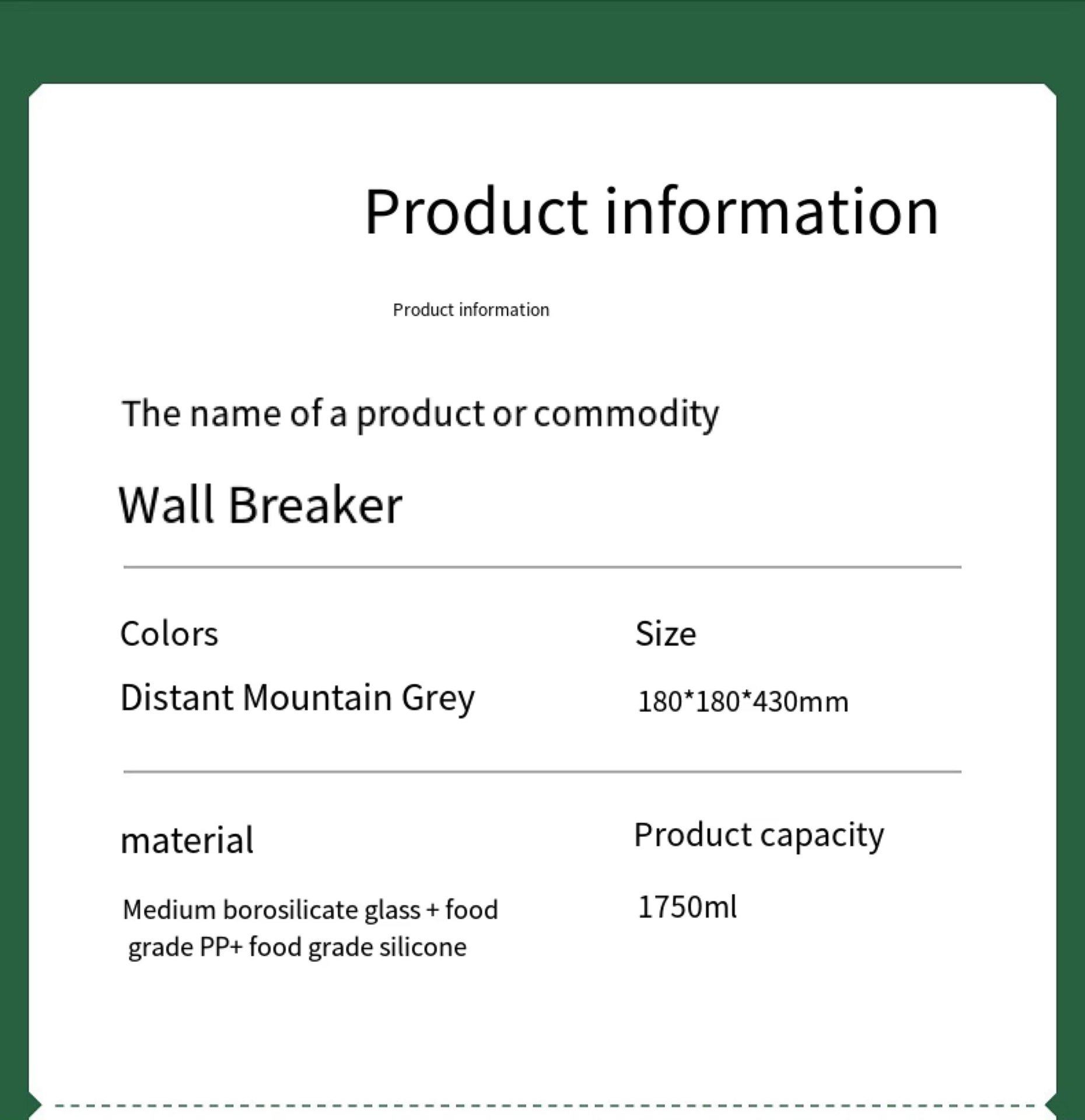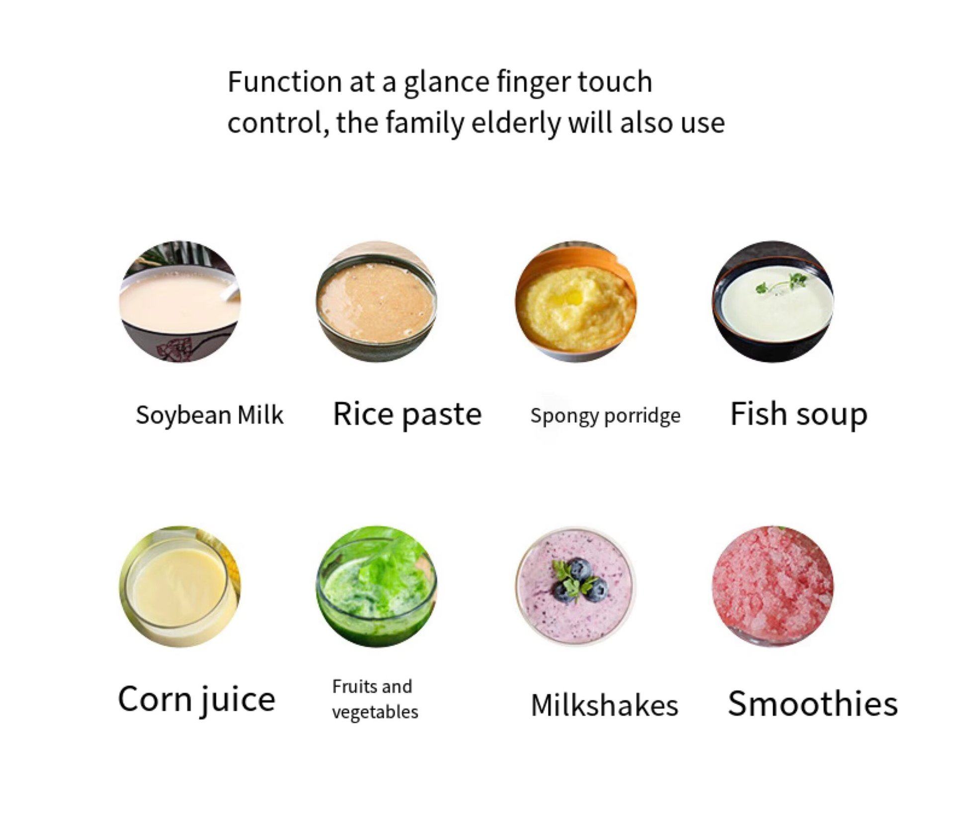 | Function | Insulation,Nutritional complementary food,Reservation timing,Appointment time,App intelligent control,Broken wall grinding powder,Hot drying and sterilizing,No need to wash by hand,Appointment temperature,Quick slurry |