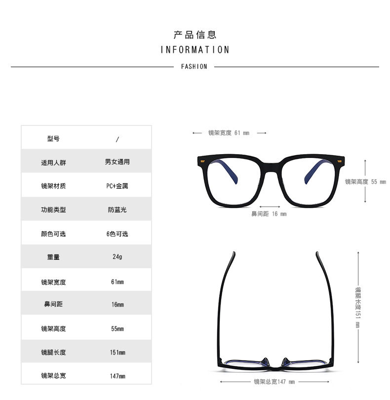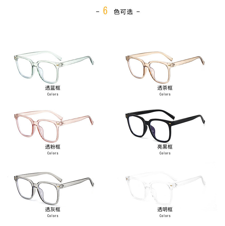 | Frame color | Black frame,Transparent white,Transparent blue,Transparent tea,Transparent gray,Transparent powder,Glasses frames without lenses,Tortoiseshell color |