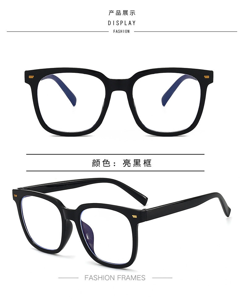 New Youth retro large frame anti-blue light flat mirror plain black fashion glasses frame can be equipped with proximity mirror wholesale