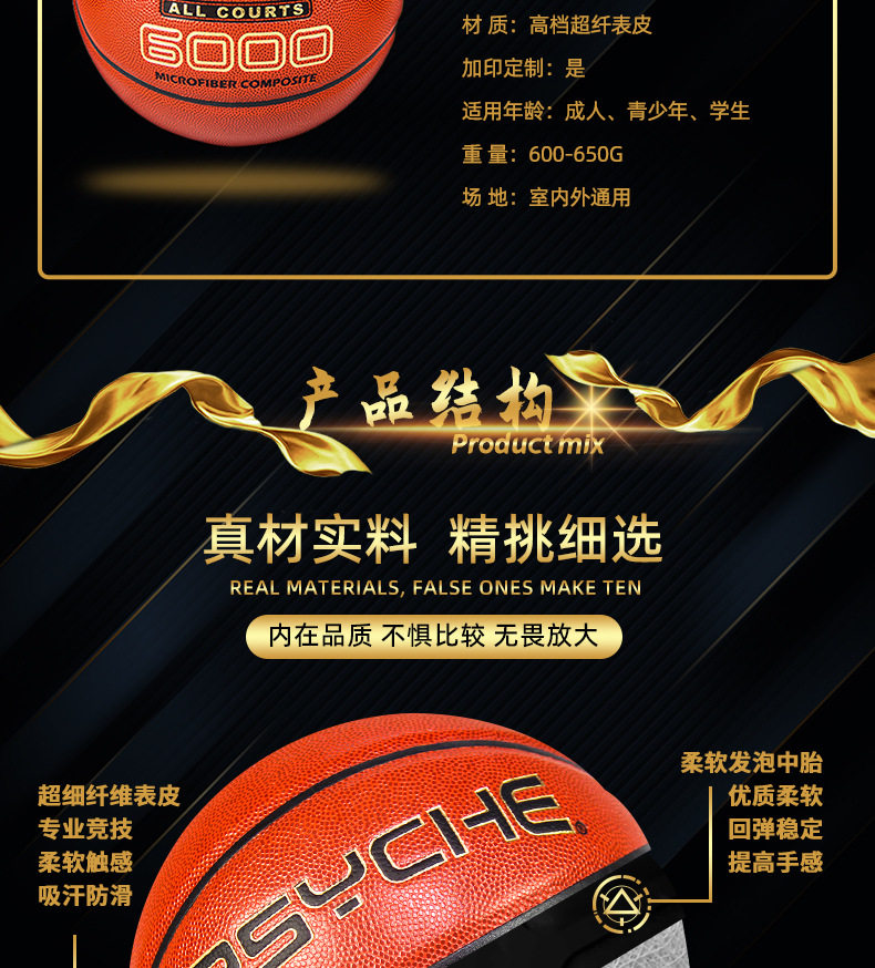 Psyche Microfiber Basketball Indoor and Outdoor Non-Slip Wear-Resistant No. 7 Adult Competition Basketball Game-Grade Basketball