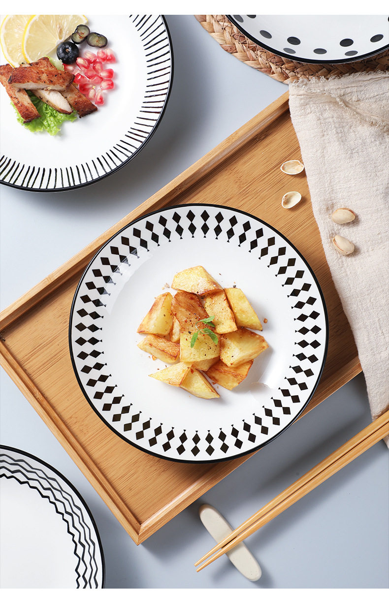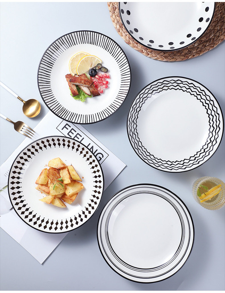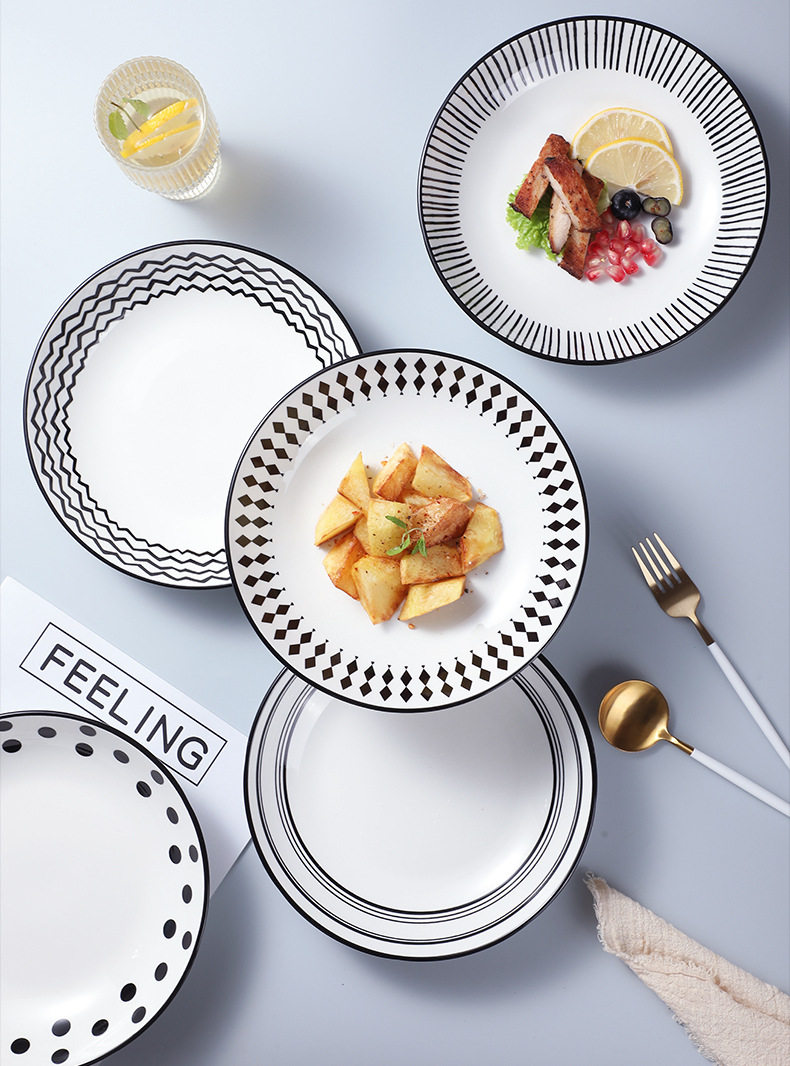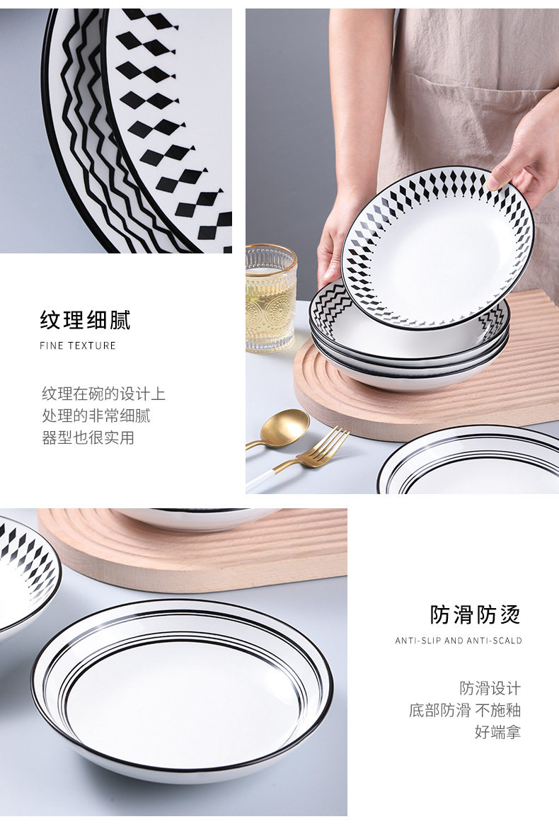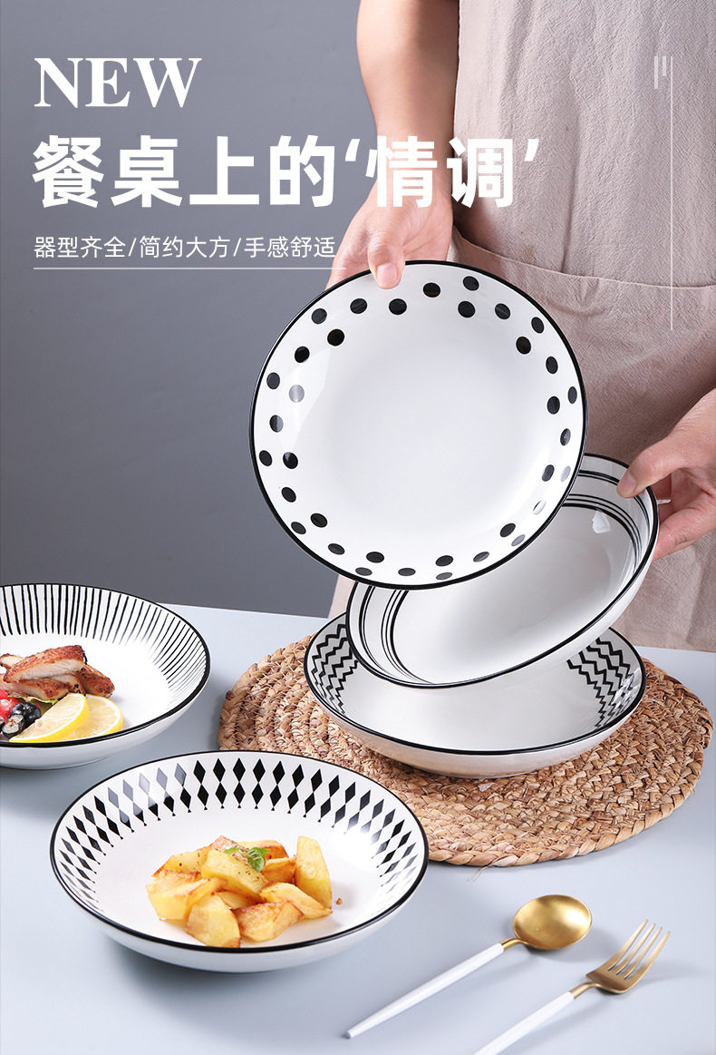 Hepburn style ceramic plate dish household net red creative Western plate ins style tableware high-grade dish deep plate