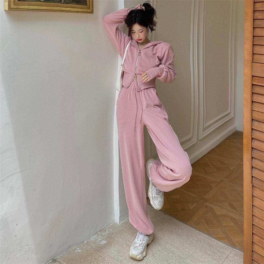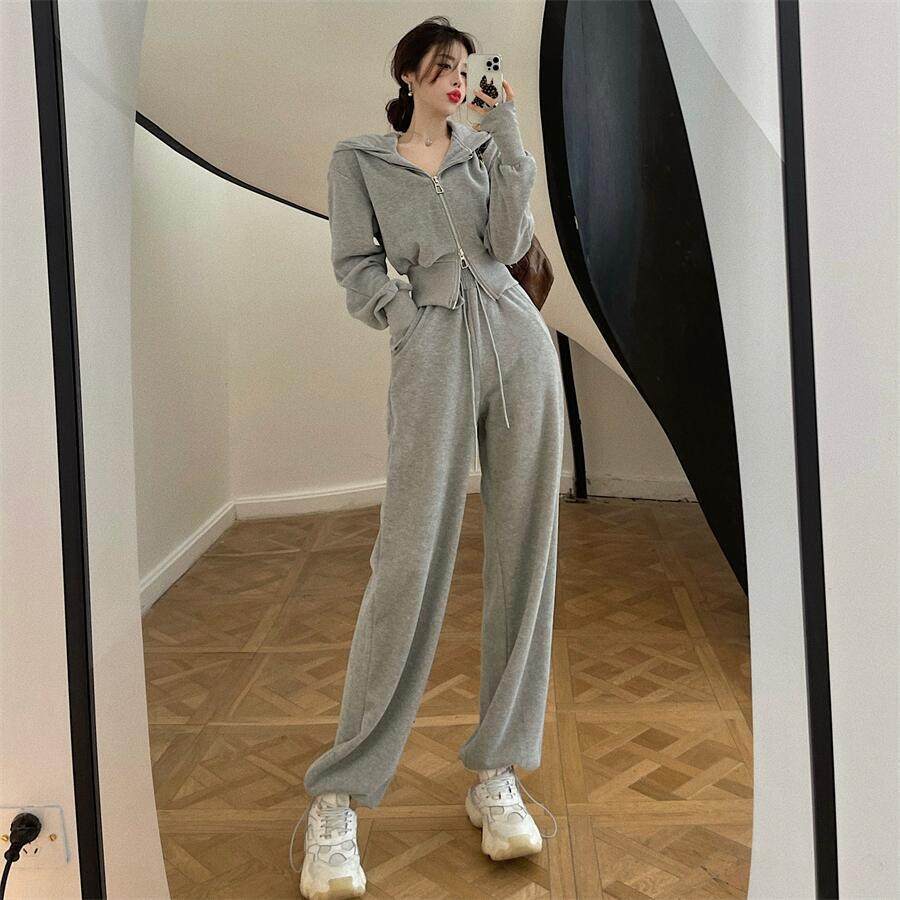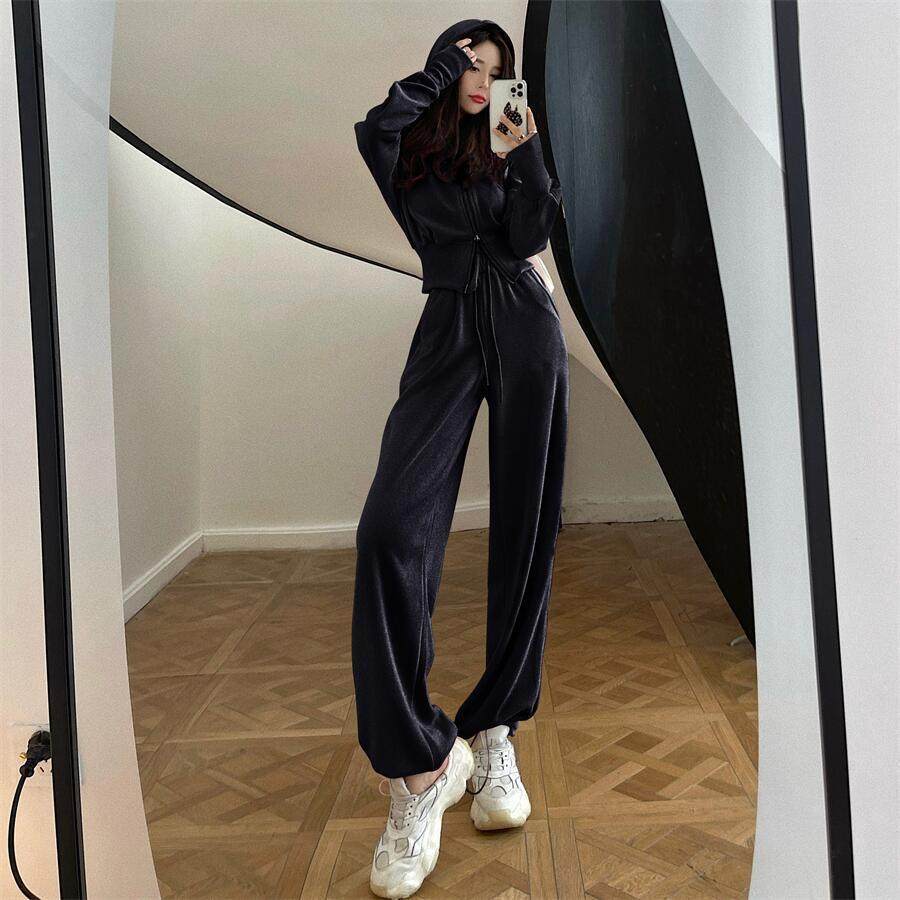 Internet Celebrity Sportswear Fashion Suit for Women 2025 Spring & Fall Korean New Hooded Sweatshirt Casual Pants Two-Piece Set Trendy