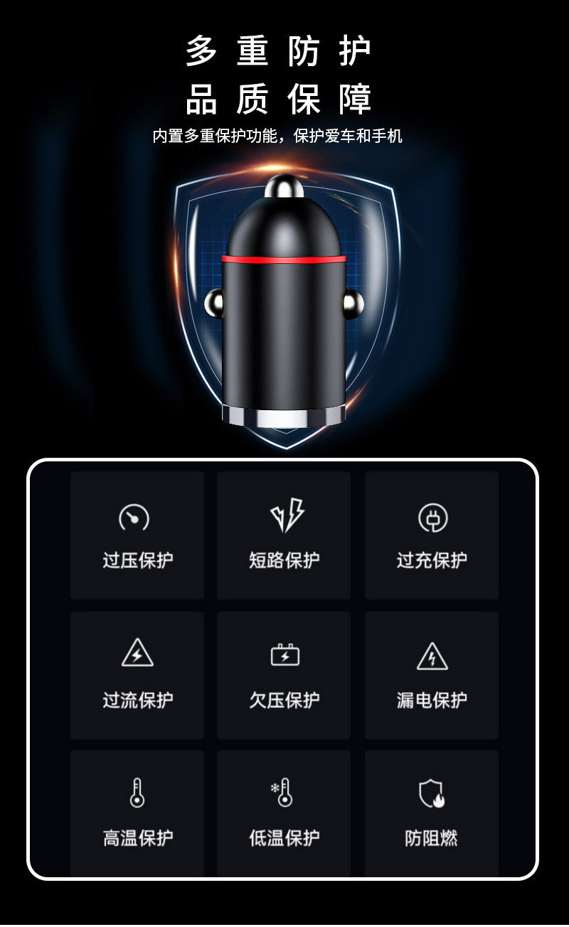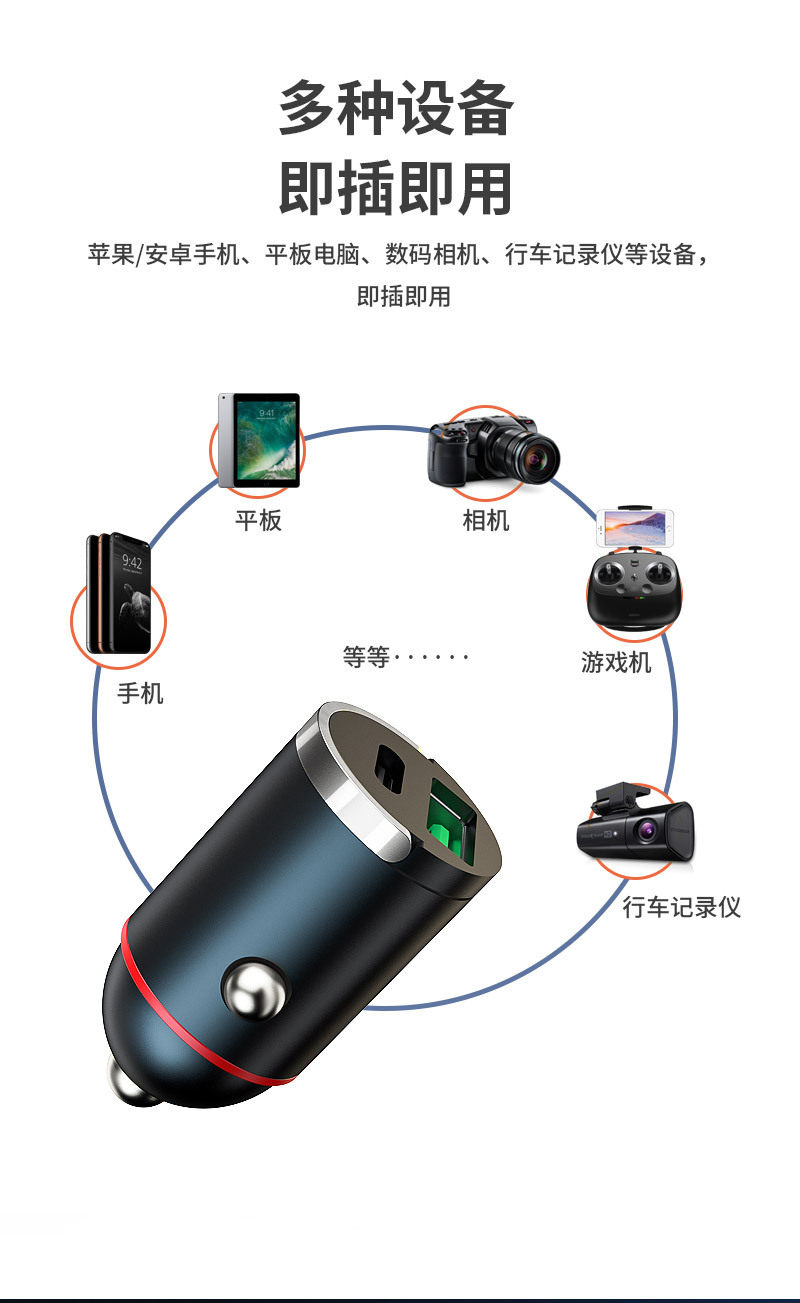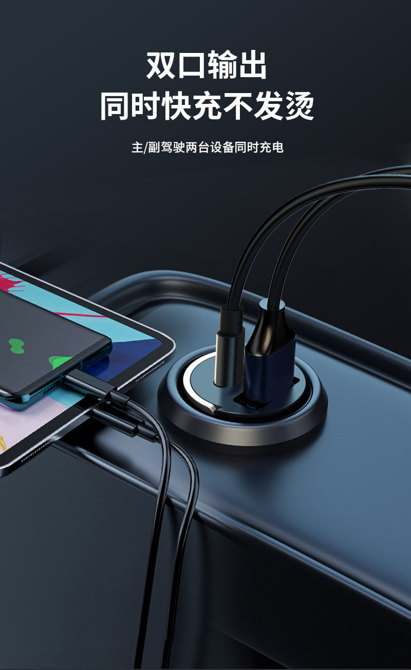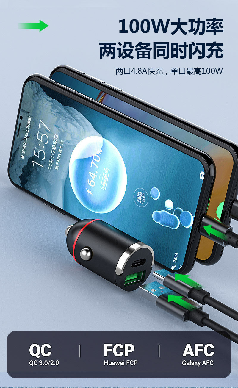 New car charger 100w super fast charge multi-function cigarette lighter mini hidden pull ring car charger