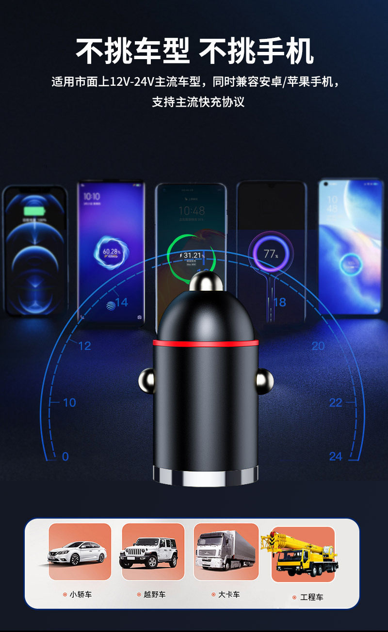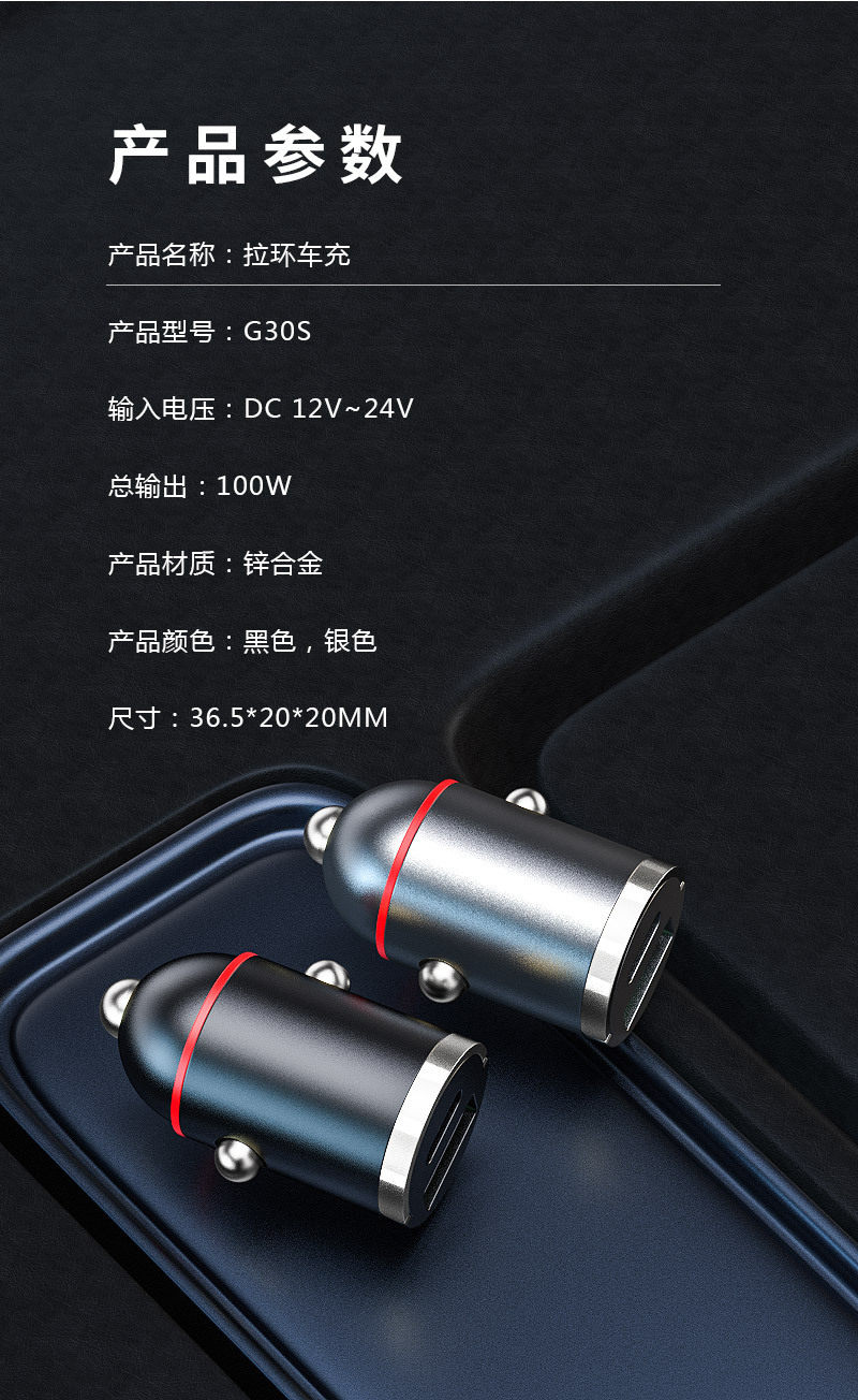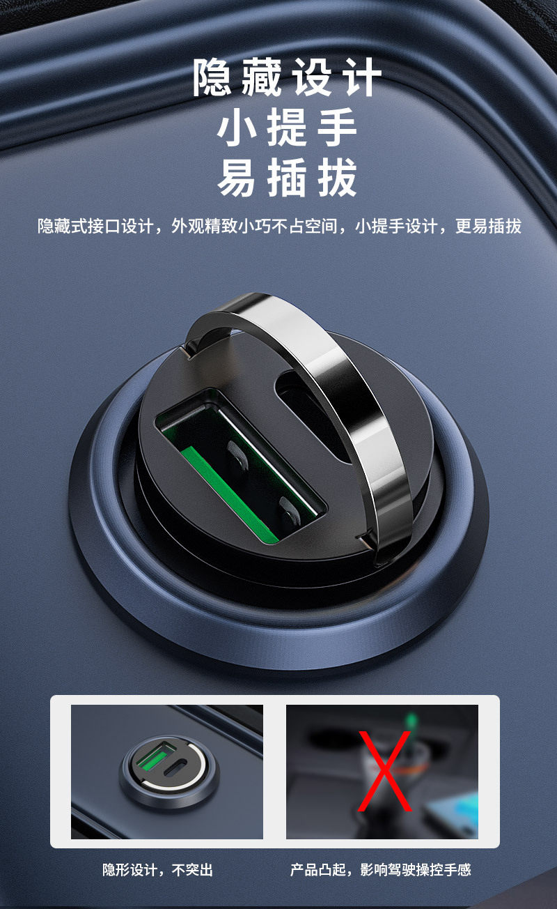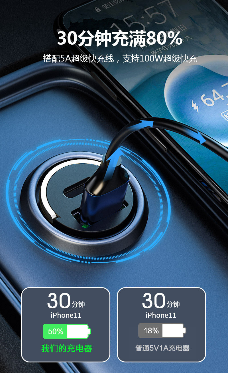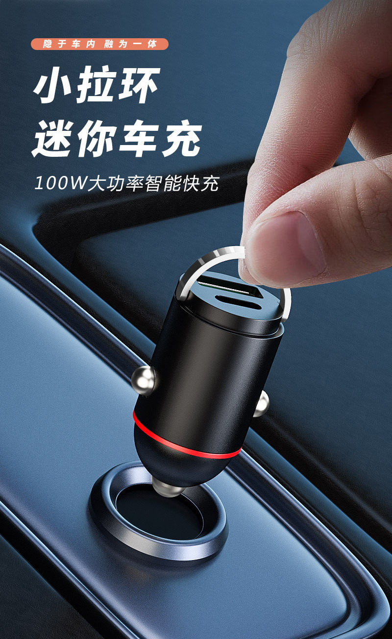New car charger 100w super fast charge multi-function cigarette lighter mini hidden pull ring car charger