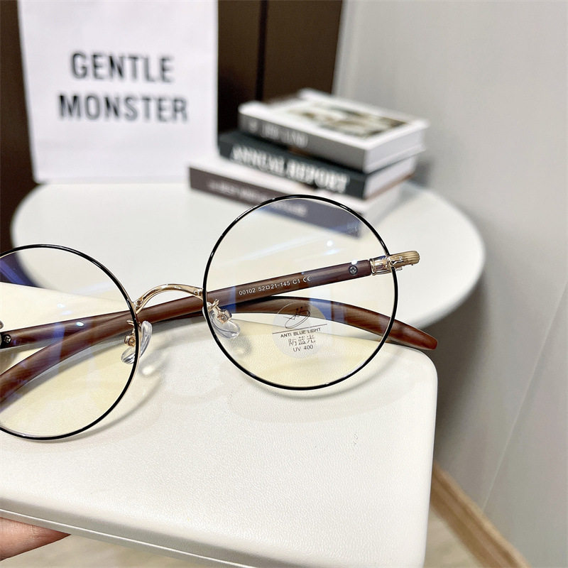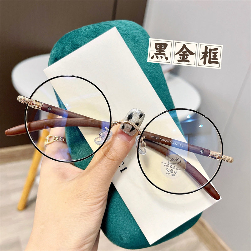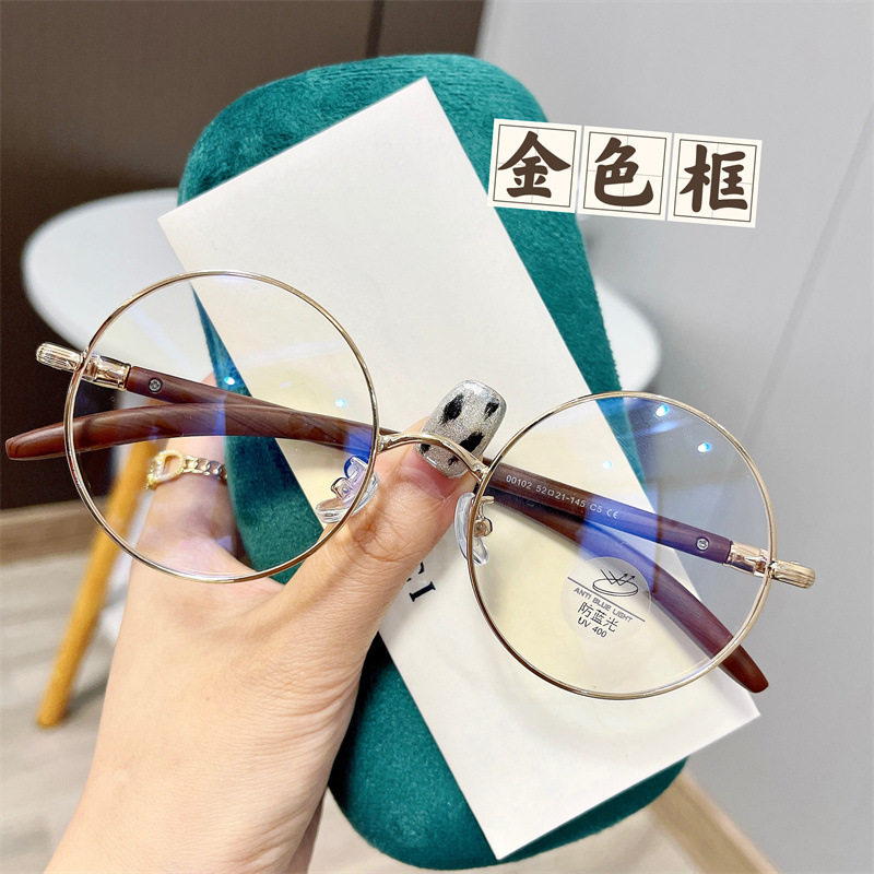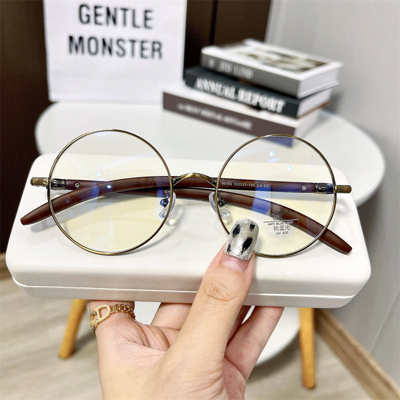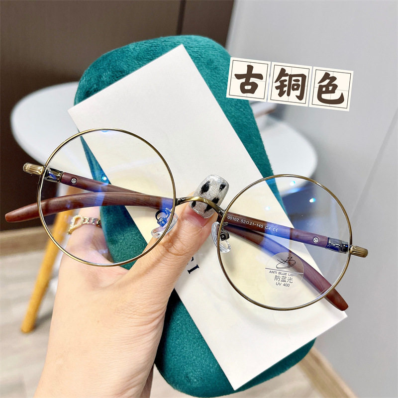 00102 New Anti-Blue Light Bronze Frame Flat Mirror for Men and Women, Korean Style Retro Square Frame Metal Frame