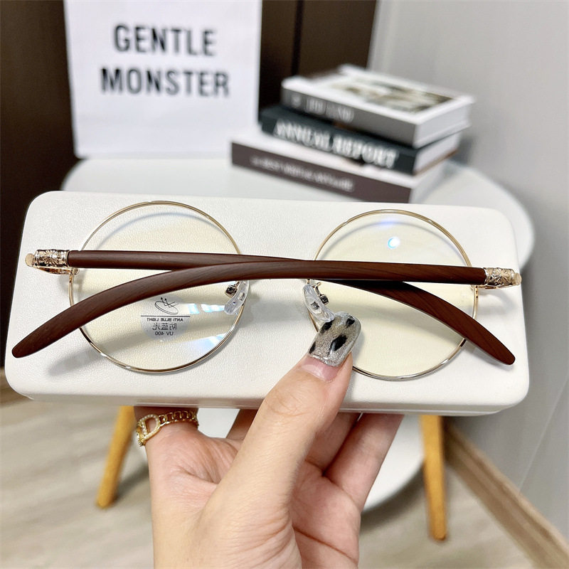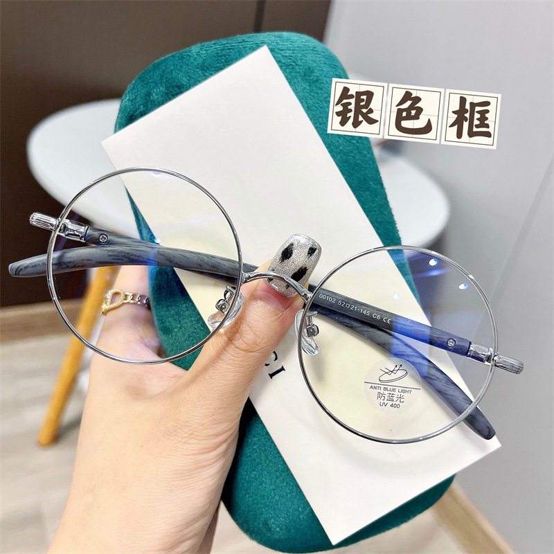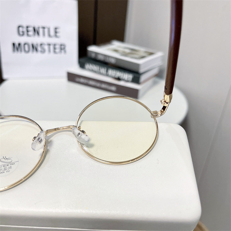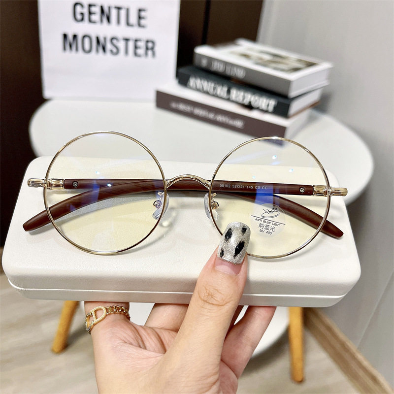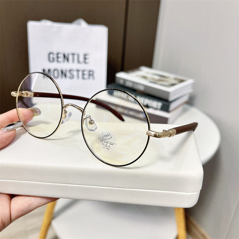 00102 New Anti-Blue Light Bronze Frame Flat Mirror for Men and Women, Korean Style Retro Square Frame Metal Frame