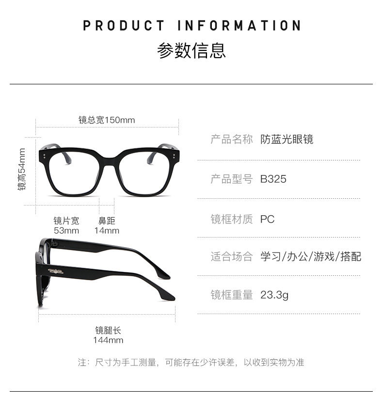 | Frame Color | Bright Black Frame White,Olive Green White,White film with gray frame,Transparent White Film,Leopard Frame White,Transparent white tea,Transparent pink white sheet,Black Framed Black,Black Frame Gradient Powder |