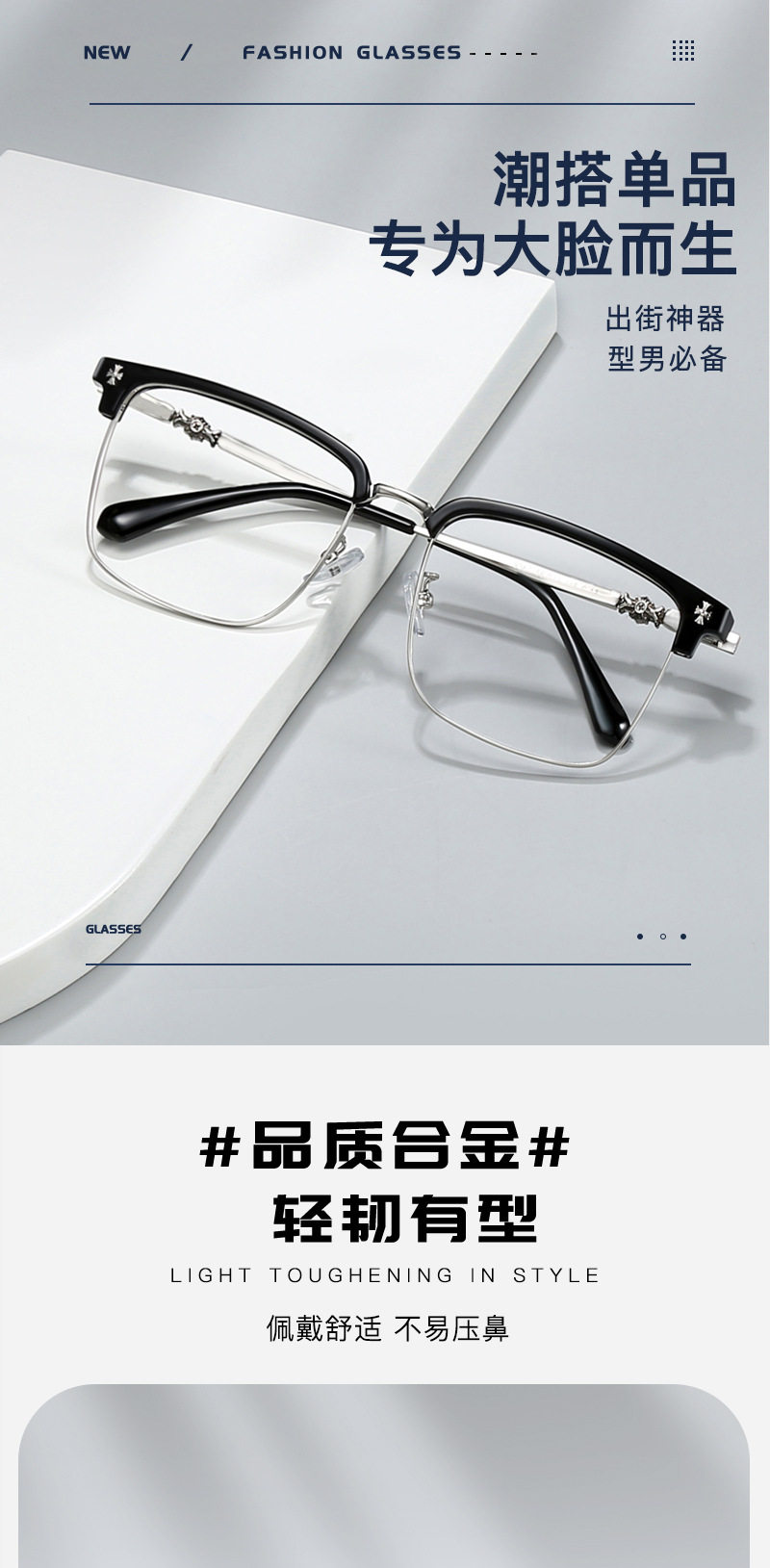 Trendy Male Influencer with Stylish Eyebrows, Highly Recommended by Xiaohongshu Influencers, Business Eyeglass Frames Suitable for Prescription Lenses