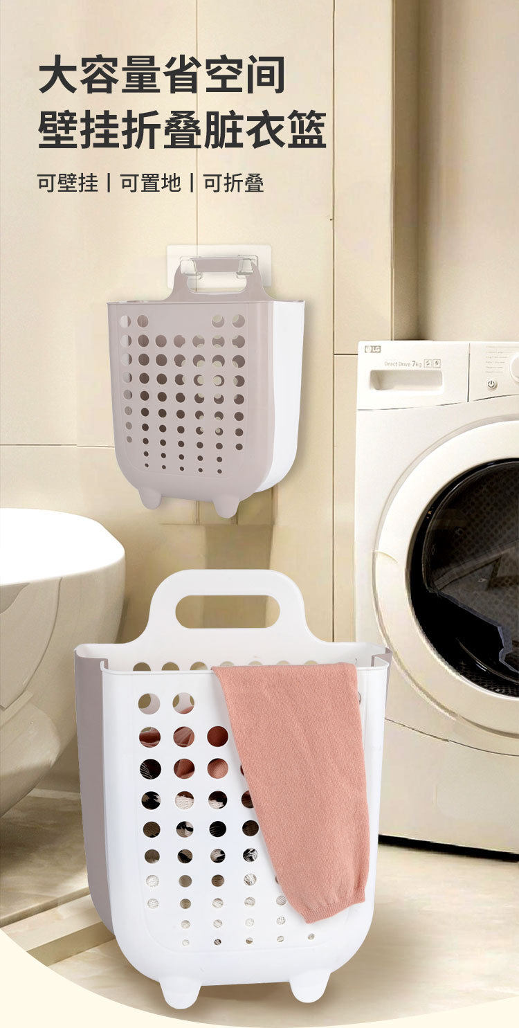 Large-Capacity Plastic Dirty Clothes Basket Plastic Bathroom Dirty Clothes Storage Basket Artifact Foldableable Wall-Mounted Dirty Clothes Basket