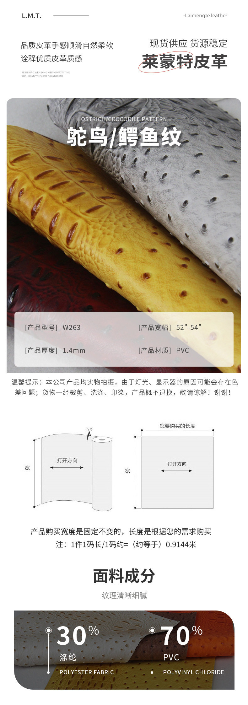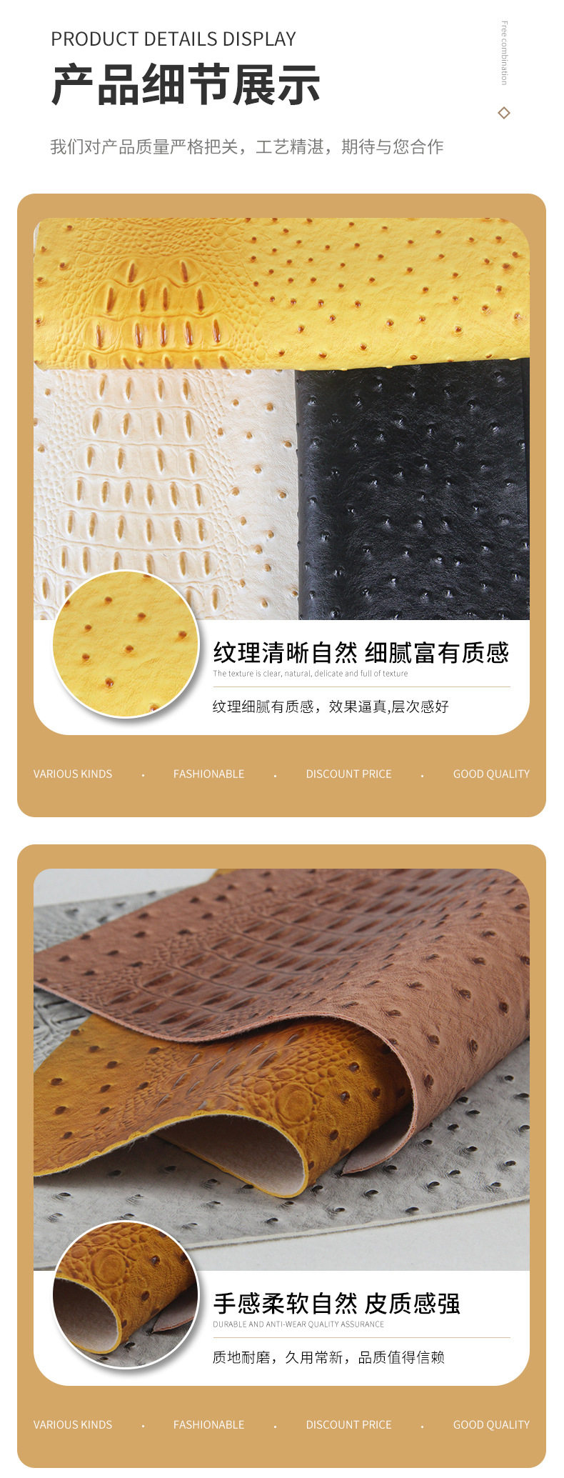 Lemont ostrich crocodile skin pvc Artificial Leather ostrich pattern plus crocodile skin feeling Q elastic realistic luggage material