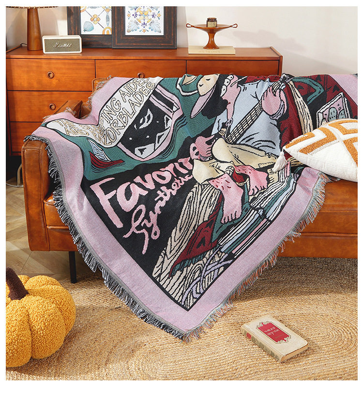 Customized Cotton Thread Sofa Blanket Jacquard Tapestry Anime Popular Blanket Office Nap Blanket Outdoor Picnic Mat
